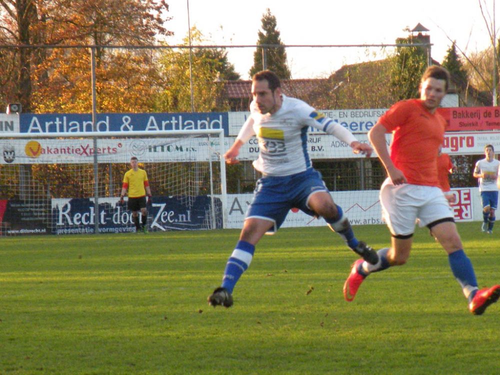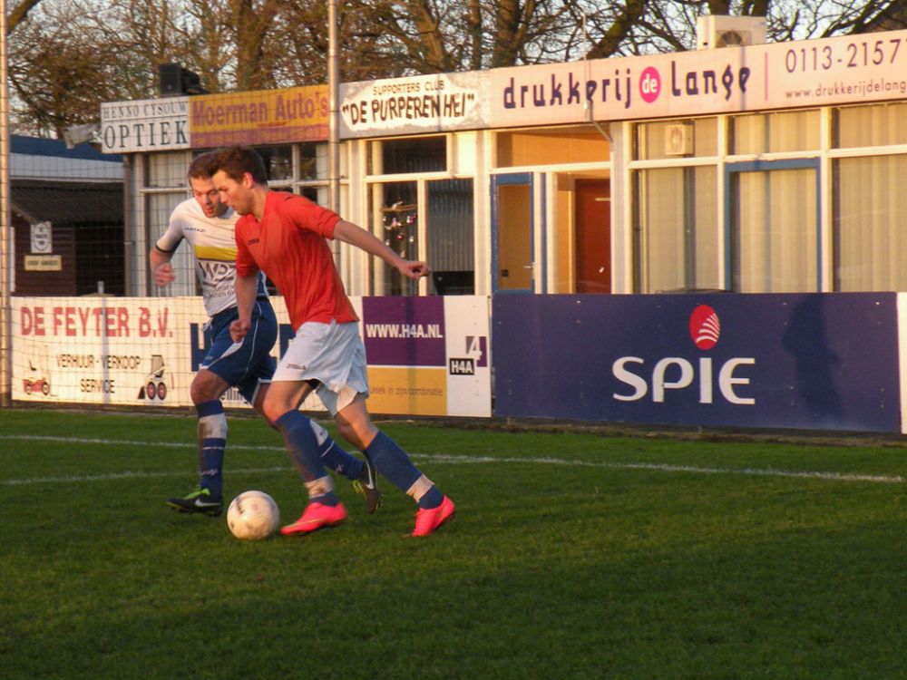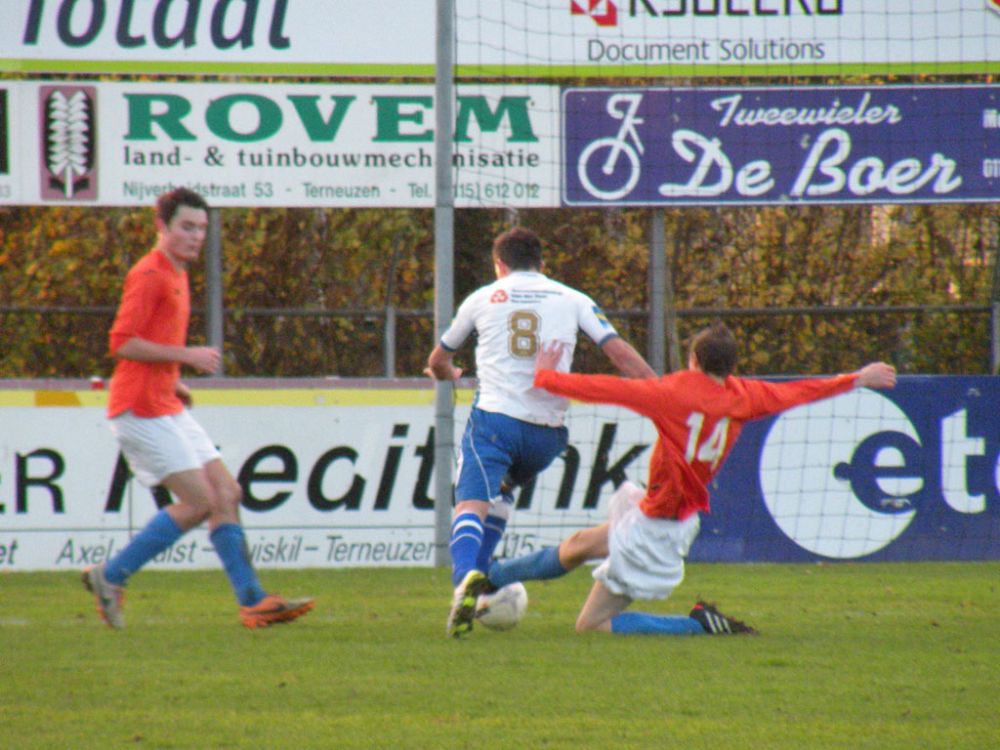 Tijn Tielemans eerder bij de bal dan speler GPC Vlissingen.