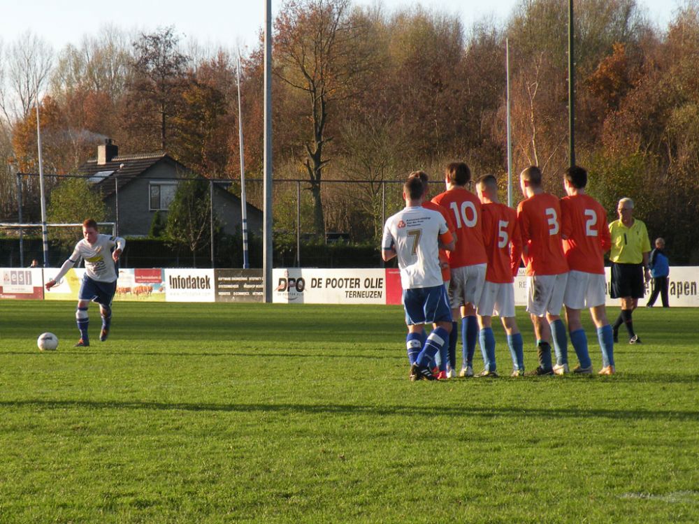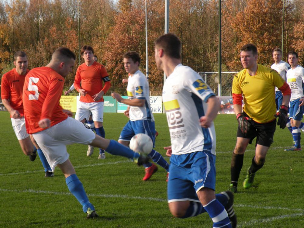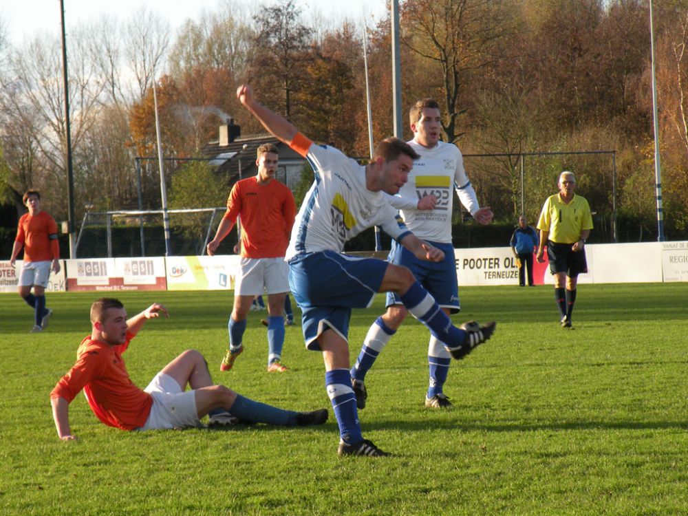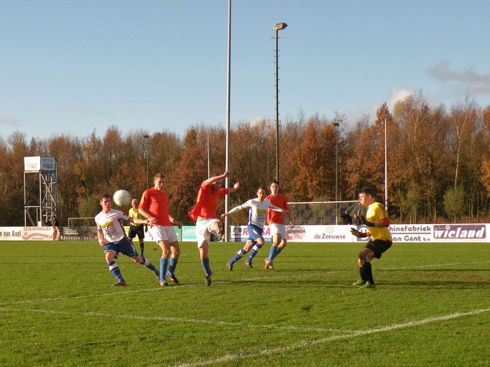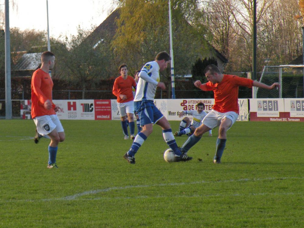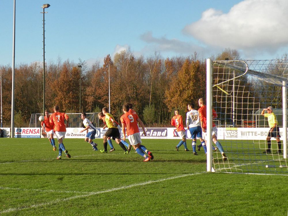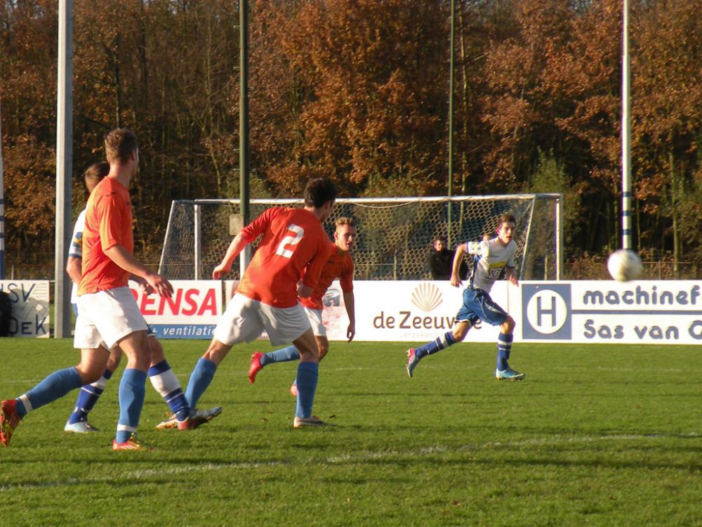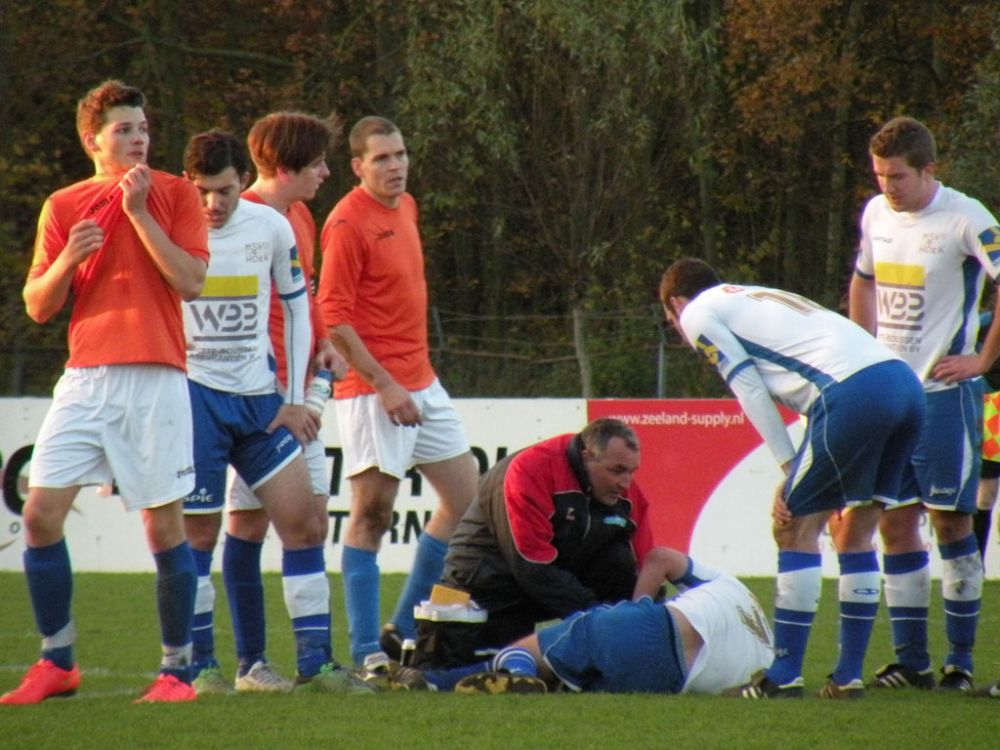 De donkere dagen voor kerst naderen en dat heeft meestal ook effect op de spelers, pijntjes worden in deze fase meestal nog net iets pijnlijker. Gelukkig kon Hoek 2 toch weer met een 14 koppige selectie toewerken naar het duel met het puntloze GPC Vlissingen 2. De ploeg die afgelopen seizoen uit de reserve Hoofdklas degradeerde zou volgens de bronnen helemaal niet zo'n slechte ploeg hebben. Dat zou in het verloop van de wedstrijd ook blijken want het bezorgde Hoek 2 een lastige middag. Hoek 2 begon wel fel aan de wedstrijd en leverde in de begin minuten gelijk wat corners op, ook de bezoekers speelden binnen 10 minuten al wat corners bij elkaar. De wedstrijd ging zijn gang maar plots was daar schrik als na een klein kwartiertje Pepijn van Gansbeke aangeeft niet meer verder te kunnen. De sympathieke blonde van Gansbeke heeft wederom last van de knie gekregen waar hij net van leek hersteld, en moet zwaar teleurgesteld het veld verlaten. Het lijkt of het zijn weerslag krijgt op Hoek 2 want waar de openingsfase fel was lukt daarna werkelijks niets meer. Hoek 2 moddert wat aan en het is zowaar GPC Vlissingen 2 dat na een minuut of 20 zelf de beste kans krijgt. Met nog een minuut of 10 op de klok ontworsteld Hoek 2 zich toch wat uit de malaise en zet de bezoekers onder druk. Uit een corner lijkt Brian van Hoorn aan de 2e paal de openingstreffer te kunnen binnen schieten maar zijn inzet gaat hoog over, een paar minuten later is van Hoorn weer gevaarlijk maar als zijn voorzet of schot rakelings overzeilt. Het lijkt vanaf de zijkant zelfs of de bal in het doel ploft gezien het opspringen van het publiek op de tribune maar de bal ging toch echt over. Ook Tijn Tielemans is dicht bij een treffer maar zijn lobje gaat wel over de keeper, maar ook naast het doel.Hoek 2 verdiend in deze fase een doelpunt en zal er ook komen. Het is Marco Doens die zich door de defensie heen worstelt en met een puntertje de bal binnen schiet, 1-0. In de laatste minuut nog een vrije trap op een gevaarlijke plaats recht voor het doel. Het is Arjen Schieman die via de muur de keeper dwingt tot een puike redding. De laatste tien minuten geven Hoek 2 houvast voor de 2e helft. Ook in de 2e helft gaat Hoek 2 op het zelfde elan als de laatste 10 minuten van de 1e helft. In de beginfase schiet tot 2x Ibrahim Eyruyk rakelings naast en staat bij Tijn Tielemans ook het vizier net niet scherp en ook zijn schot gaat rakelings naast. Na een klein kwartier een uitbraak van Hoek 2 met 3 tegen 1 is Hoek 2 in een overtal situatie. Maar hoe dit word uitgespeeld geeft aan dat Hoek 2 deze zaterdag niet in zijn beste vorm verkeerd. En dat is vragen om problemen die dan ook komen. Uit een corner van GPC Vlissingen 2 kan aan de 2e paal een speler simpel binnen koppen en staat het plots gewoon 1-1. Het publiek begint te morren want wat Hoek 2 nu voorschotelt is niet best. Toch proberen de mannen van trainer de Smet het tij te keren en dat ging zowaar nog lukken ook. Het is Arjen Schieman die over de linkerkant opkomt en een harde hoge voorzet geeft. De voorzet lijkt op niets uit te lopen maar daar is Brian van Hoorn die er wel brood in ziet en met een rake kopbal de bal snoeihard in het kruis kopt, 2-1. Hoek 2 moet nog een dik kwartier tegen houden om de 3 punten binnenboord te houden. Maar dan slaat wederom het angst om de Hoek 2 harten als Marco Doens kermend van de pijn op de grond ligt. In een onschuldig duel lijkt Doens zwaar geblesseerd aan de knie te zijn geraakt en is hij de 2e speler van de middag die van het veld moet worden gedragen. De blessuretijd tikt maar door en kijkt iedereen naar scheidsrechter Bruinooghe die een prima partij floot hoe lang het nog duurt. Hoek 2 is er immers niet gerust op, maar daar lijkt dan de bevrijdende 3-1 te komen als de voor Marco Doens Joel Mieras vrij voor doel word gezet. Waar het makkelijker lijkt om de bal binnen te krijgen tikt tot ontzetting van hemzelf Mieras de bal op de paal. Niet veel later volgt dan het bevrijdende eindsignaal en kan Hoek 2 opgelucht ademhalen en gewoon 3 punten bijschrijven. Hoek 2 beleefde vorig seizoen ook zo'n fase en verloor toen 2 punten aan het destijds laag geklasseerde LRC 3 waar het nu dus gewoon de punten heeft. Volgende week wacht Kapelle 2 dan aan een sterke reeks bezig is dus zal Hoek 2 waakzaam en scherp moeten zijn om hier geen averij op te lopen.