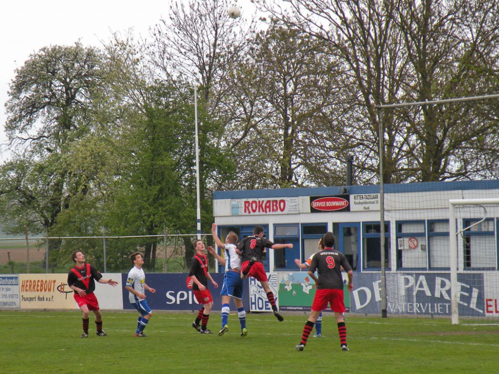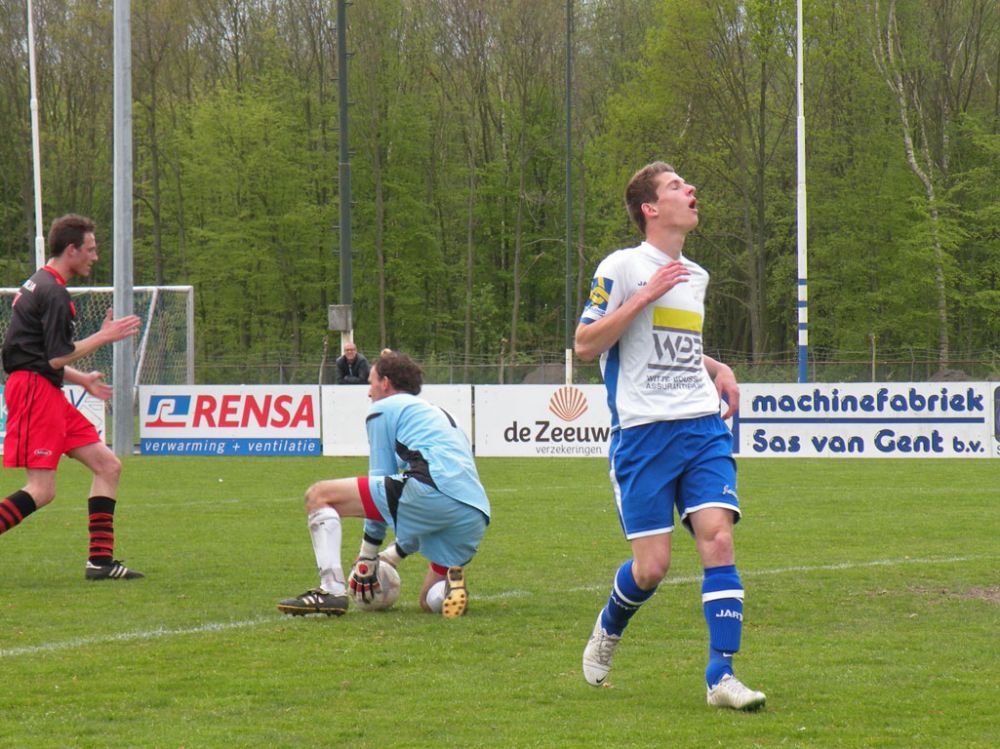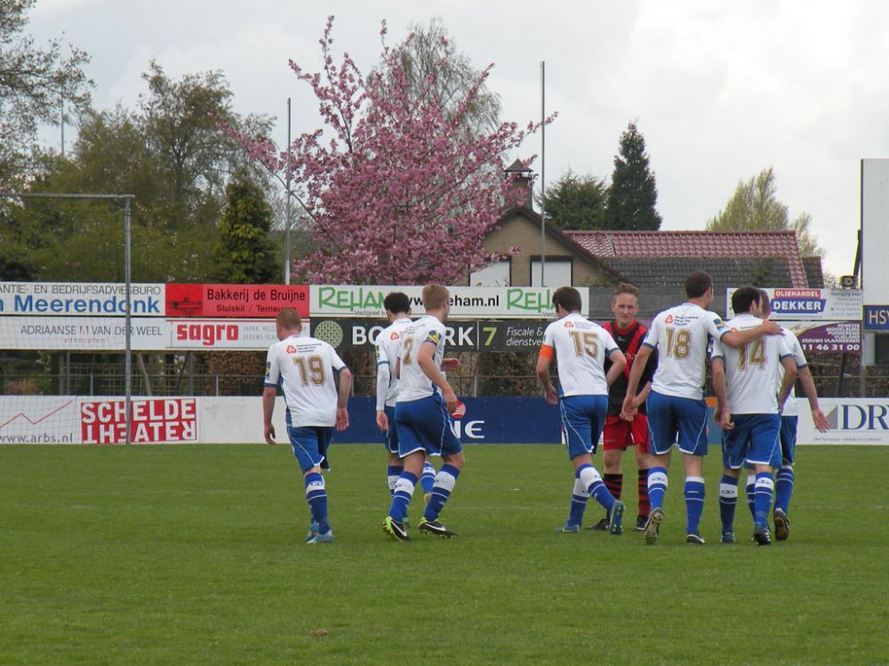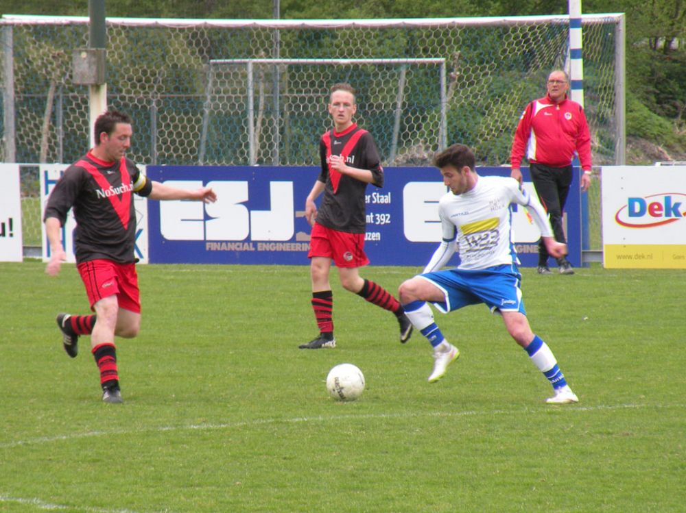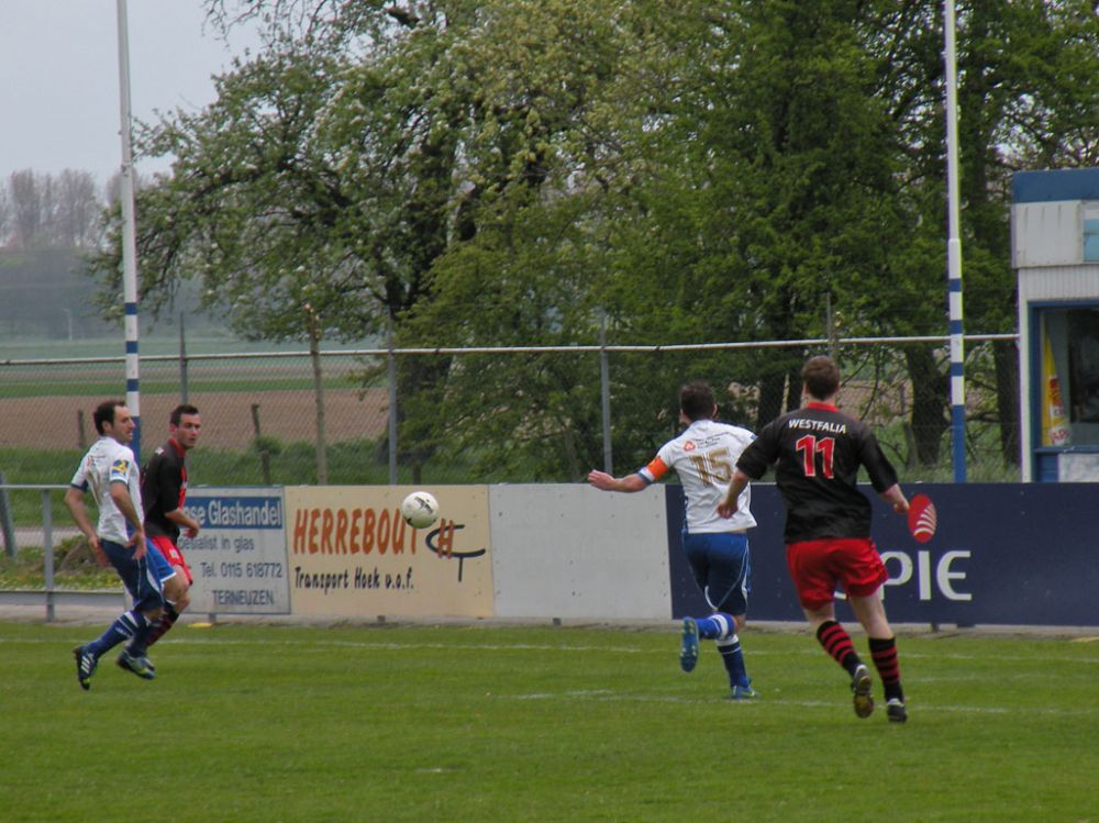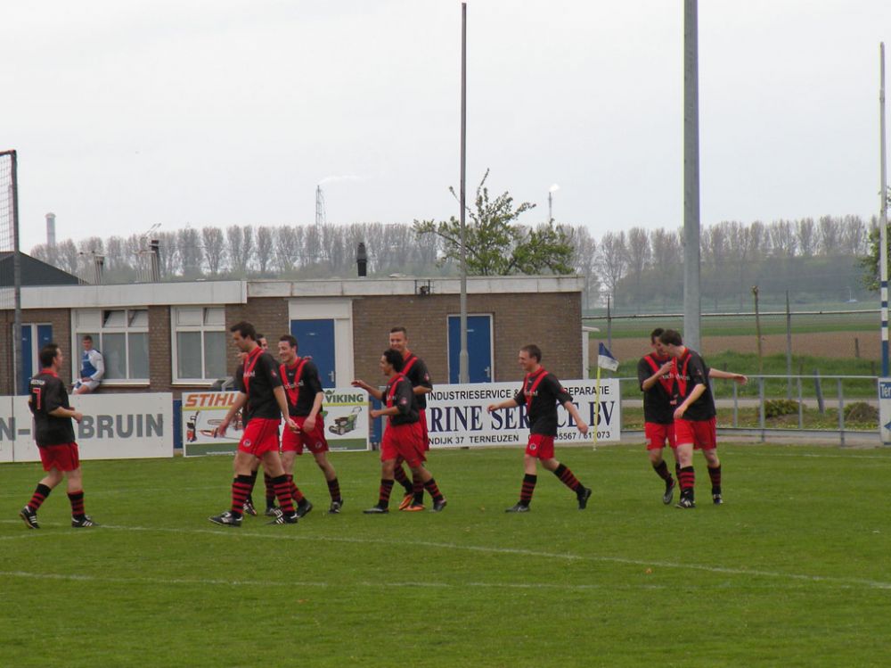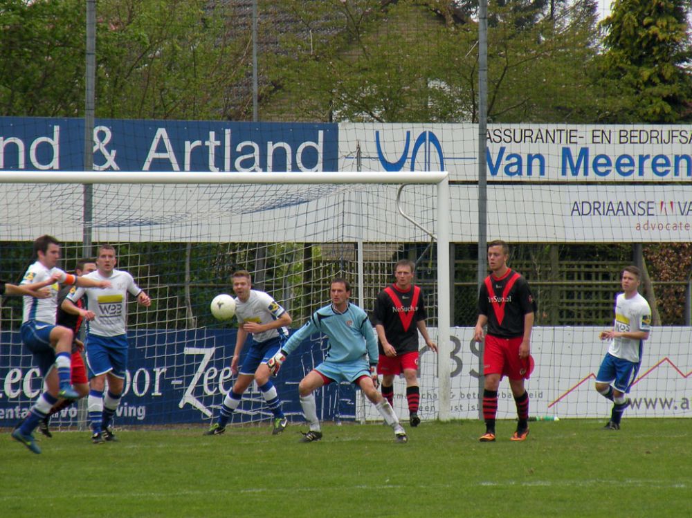Hoek 2 en Papendrecht 2 maakten er in de openingswedstrijd van het seizoen destijds een onvergetelijk treffen van. Een uitslag van 4-4 waar het met rust minstens 0-5 had moeten staan, maar waar Hoek 2 ook met lege handen had kunnen staan als men in de slotfase niet een 4-2 achterstand had omgebogen. Kortom een heerlijk spektakelstuk wat 2 bevriende trainers zou opleveren. Je zou dus zaterdag handjeklap verwachten want waar voor Hoek 2 uit kampioenschap uit zicht lijkt stond er voor de bezoekers nog een ticket voor de nacompetitie op het spel. In de 1e minuut leek het toch verdacht veel op een weggegeven wedstrijd als Tiago Barros en Marco Hamelink allebei vrij voor doel staan. Wie haalt de trekker over wie schiet de bal binnen.....niemand en zo komen de bezoekers wel erg goed weg. Niet veel later weer een kans voor de Portugees in Hoekse dienst maar ook nu houd de doelman zijn doel schoon. De bezoekers zijn van de schrik bekomen en komen ook gevaarlijk voor het Hoek 2 doel wat na een kleine 10 minuten een treffer op levert als Rhoudy Diamant een voorzet binnenkopt, 0-1. Nog geen minuut later ontkomt Hoek 2 aan een volgende treffer als de lat redding brengt. Het Hoek 2 doel lijkt wel een schiettent, 5x schieten voor een euro. Gelukkig is doelman Kevin Wissel wel wakker en doet waar hij voor staat de ballen tegenhouden. De scheidsrechter wil dan Hoek 2 een handje helpen als voor een lichte overtreding voor strafschop word gefloten. De ijverige Thomas Vanderhaegen zet zich achter de bal maar zijn vizier staat dan nog niet scherp en schiet de strafschop naast. Toch geeft het Hoek 2 wat frisse moed en word het weer wat gevaarlijker. Zo lijkt Ibrahim Eryruk op weg naar de gelijkmaker als hij vanaf de middenlijn alleen op doel af mag gaan. Maar de vlag gaat naar boven voor buitenspel wat hoogst twijfelachtig was, weg kans. Het houd de moed erin bij Papendrecht 2 en mogen zich beklagen als de paal vlak voor rust een 2e treffer in de weg staat. Ruim in blessuretijd nog een aanval van Hoek 2 met een voorzet van Thomas Vanderhaegen die over alles en iedereen heen gaat maar via de binnenkant van de paal wel binnen caramboleert, 1-1. Dat is toch wel een gevoelig tikkie voor de bezoekers en neem daar de messcherpe 2e helft van Hoek 2 bij dan heb je een mooi eind resultaat. Hoek 2 begint de 2e helft met 6 corners op rij en volle druk op het Papendrecht 2 doel. Na een minuut of 8 in de 2e helft komt dan de beloning met een 2e treffer. Een voorzet van Mathieu Voet kan door de goed storende Bart Corstanje niet worden gepakt door de doelman en zo kan de alerte Sander de Haas de bal binnen schieten, 2-1. Een paar minuten later is het weer raak, nu is het Tiago Barros die met een geplaatst schot de doelman verschalkt, 3-1. Hoek 2 is los, voetbalt lekker en laat af en toe aardige dingen zien. Zo verdient de puntgave voorzet van Thomas Vanderhaegen een doelpunt maar Brian van Hoorn kan de bal net niet genoeg snelheid meegeven om ook zijn doelpuntje mee te pikken en ziet de doelman redding brengen. Het eindsignaal nadert en lijkt Hoek 2 het wel goed te vinden. Het levert Papendrecht 2 zowaar nog een kansje op in de 2e helft, gelukkig is doelman Wissel attent en tikt de bal corner. Dat lijkt het deze middag wel allemaal te zijn maar de scheidsrechter van dienst geniet blijkbaar van deze middag en laat nog vrolijk door spelen als de klok al ruim op 90 minuten staat. Hoek 2 zal er niet om malen want het levert zowaar nog een treffer op. Thomas Vanderhaegen en Bart Corstanje verschijnen beiden vrij voor het doel maar zoals een echte spits beaamd gaat Vanderhaegen voor eigen succes als hij de doelman heeft omspeelt. De bal kan dan worden breed gespeeld maar Vanderhaegen schiet zelf binnen, 4-1. Een dik verdiende treffer voor de sympathieke Belg die in het Hoek 2 shirt niet verzaakt. Hoek 2 wint op basis van de 2e helft verdiend met 4-1 en heeft met nog 2 wedstrijden voor de boeg de kans om het puntentotaal van vorig seizoen te overtreffen. Dan zal wel de horde GPC Vlissingen 2 met succes moeten worden genomen. De nummer laatst lijkt eindelijk zijn adem de hebben gevonden want met 4 punten uit de laatste 2 duels vechten de Vlissingers tot de laatste snik dus is het voor Hoek 2 nog geen uit gemaakte zaak.