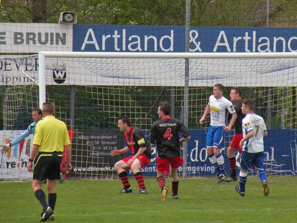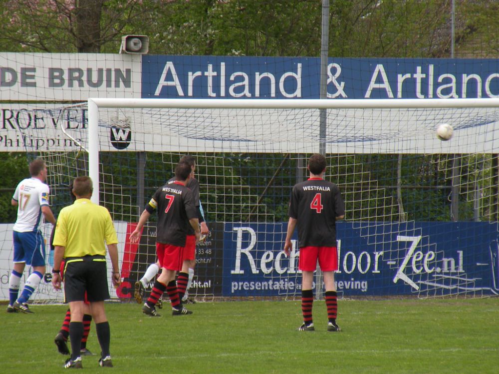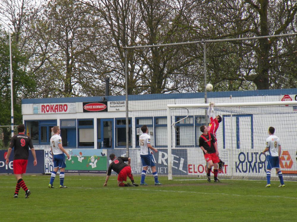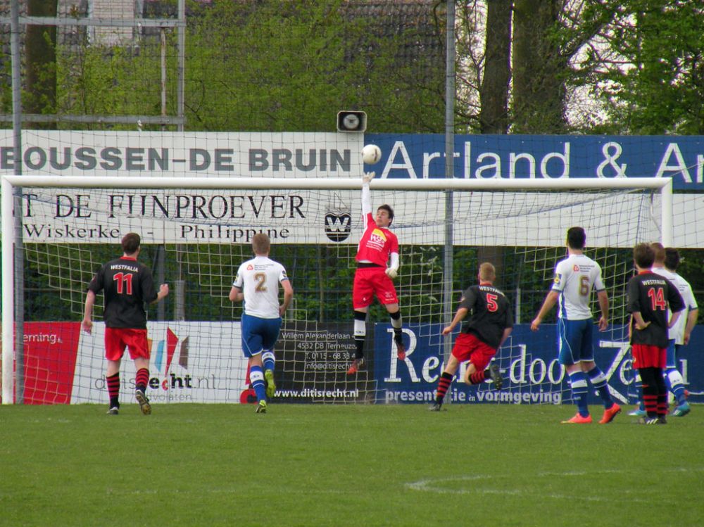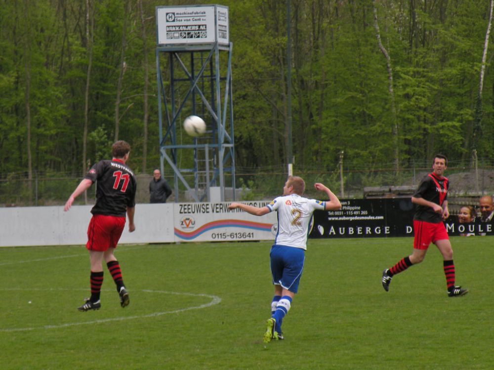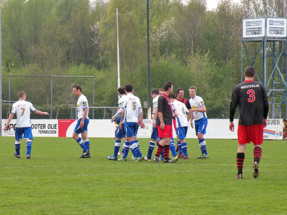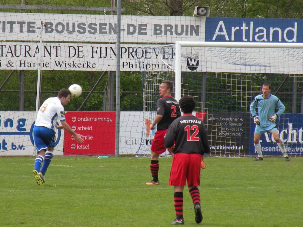 Hoek 2 en Papendrecht 2 maakten er in de openingswedstrijd van het seizoen destijds een onvergetelijk treffen van. Een uitslag van 4-4 waar het met rust minstens 0-5 had moeten staan, maar waar Hoek 2 ook met lege handen had kunnen staan als men in de slotfase niet een 4-2 achterstand had omgebogen. Kortom een heerlijk spektakelstuk wat 2 bevriende trainers zou opleveren. Je zou dus zaterdag handjeklap verwachten want waar voor Hoek 2 uit kampioenschap uit zicht lijkt stond er voor de bezoekers nog een ticket voor de nacompetitie op het spel. In de 1e minuut leek het toch verdacht veel op een weggegeven wedstrijd als Tiago Barros en Marco Hamelink allebei vrij voor doel staan. Wie haalt de trekker over wie schiet de bal binnen.....niemand en zo komen de bezoekers wel erg goed weg. Niet veel later weer een kans voor de Portugees in Hoekse dienst maar ook nu houd de doelman zijn doel schoon. De bezoekers zijn van de schrik bekomen en komen ook gevaarlijk voor het Hoek 2 doel wat na een kleine 10 minuten een treffer op levert als Rhoudy Diamant een voorzet binnenkopt, 0-1. Nog geen minuut later ontkomt Hoek 2 aan een volgende treffer als de lat redding brengt. Het Hoek 2 doel lijkt wel een schiettent, 5x schieten voor een euro. Gelukkig is doelman Kevin Wissel wel wakker en doet waar hij voor staat de ballen tegenhouden. De scheidsrechter wil dan Hoek 2 een handje helpen als voor een lichte overtreding voor strafschop word gefloten. De ijverige Thomas Vanderhaegen zet zich achter de bal maar zijn vizier staat dan nog niet scherp en schiet de strafschop naast. Toch geeft het Hoek 2 wat frisse moed en word het weer wat gevaarlijker. Zo lijkt Ibrahim Eryruk op weg naar de gelijkmaker als hij vanaf de middenlijn alleen op doel af mag gaan. Maar de vlag gaat naar boven voor buitenspel wat hoogst twijfelachtig was, weg kans. Het houd de moed erin bij Papendrecht 2 en mogen zich beklagen als de paal vlak voor rust een 2e treffer in de weg staat. Ruim in blessuretijd nog een aanval van Hoek 2 met een voorzet van Thomas Vanderhaegen die over alles en iedereen heen gaat maar via de binnenkant van de paal wel binnen caramboleert, 1-1. Dat is toch wel een gevoelig tikkie voor de bezoekers en neem daar de messcherpe 2e helft van Hoek 2 bij dan heb je een mooi eind resultaat. Hoek 2 begint de 2e helft met 6 corners op rij en volle druk op het Papendrecht 2 doel. Na een minuut of 8 in de 2e helft komt dan de beloning met een 2e treffer. Een voorzet van Mathieu Voet kan door de goed storende Bart Corstanje niet worden gepakt door de doelman en zo kan de alerte Sander de Haas de bal binnen schieten, 2-1. Een paar minuten later is het weer raak, nu is het Tiago Barros die met een geplaatst schot de doelman verschalkt, 3-1. Hoek 2 is los, voetbalt lekker en laat af en toe aardige dingen zien. Zo verdient de puntgave voorzet van Thomas Vanderhaegen een doelpunt maar Brian van Hoorn kan de bal net niet genoeg snelheid meegeven om ook zijn doelpuntje mee te pikken en ziet de doelman redding brengen. Het eindsignaal nadert en lijkt Hoek 2 het wel goed te vinden. Het levert Papendrecht 2 zowaar nog een kansje op in de 2e helft, gelukkig is doelman Wissel attent en tikt de bal corner. Dat lijkt het deze middag wel allemaal te zijn maar de scheidsrechter van dienst geniet blijkbaar van deze middag en laat nog vrolijk door spelen als de klok al ruim op 90 minuten staat. Hoek 2 zal er niet om malen want het levert zowaar nog een treffer op. Thomas Vanderhaegen en Bart Corstanje verschijnen beiden vrij voor het doel maar zoals een echte spits beaamd gaat Vanderhaegen voor eigen succes als hij de doelman heeft omspeelt. De bal kan dan worden breed gespeeld maar Vanderhaegen schiet zelf binnen, 4-1. Een dik verdiende treffer voor de sympathieke Belg die in het Hoek 2 shirt niet verzaakt. Hoek 2 wint op basis van de 2e helft verdiend met 4-1 en heeft met nog 2 wedstrijden voor de boeg de kans om het puntentotaal van vorig seizoen te overtreffen. Dan zal wel de horde GPC Vlissingen 2 met succes moeten worden genomen. De nummer laatst lijkt eindelijk zijn adem de hebben gevonden want met 4 punten uit de laatste 2 duels vechten de Vlissingers tot de laatste snik dus is het voor Hoek 2 nog geen uit gemaakte zaak.