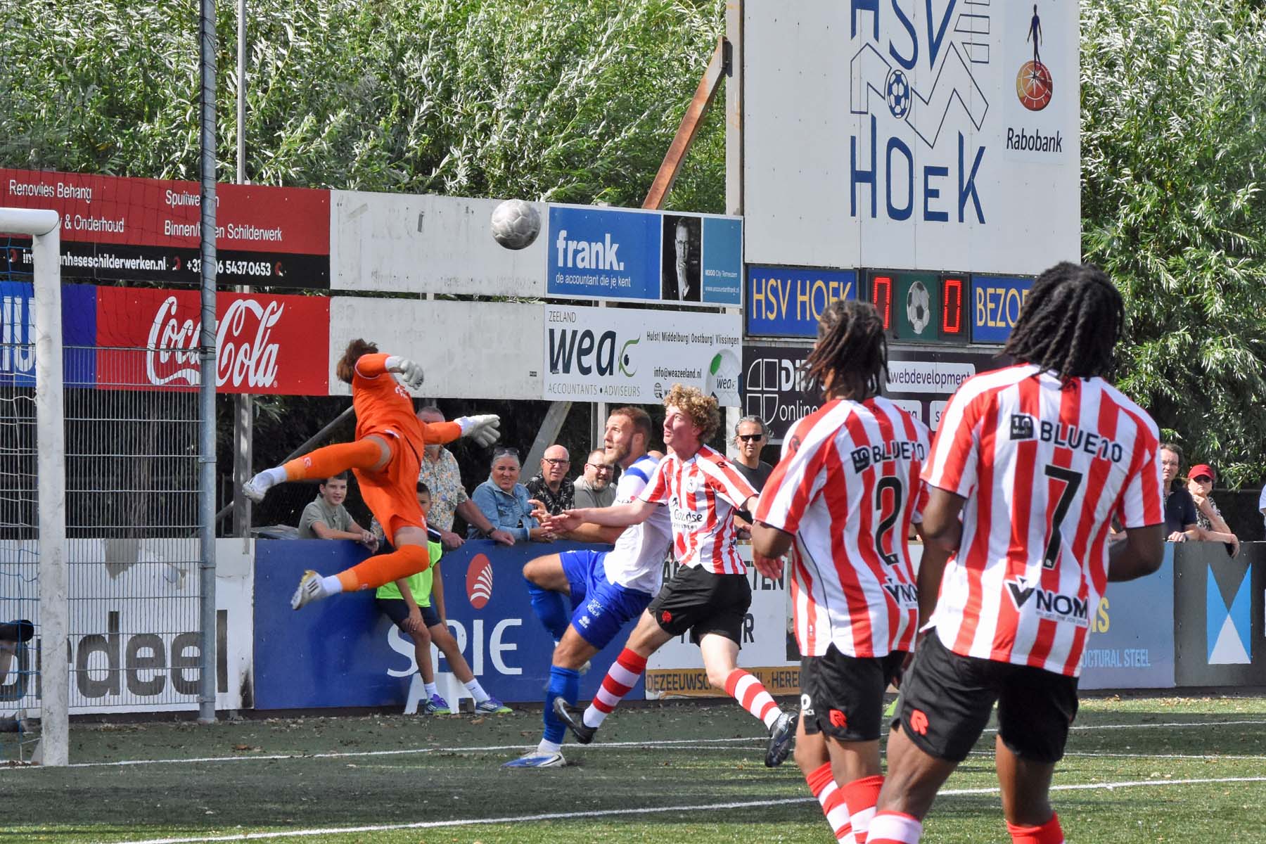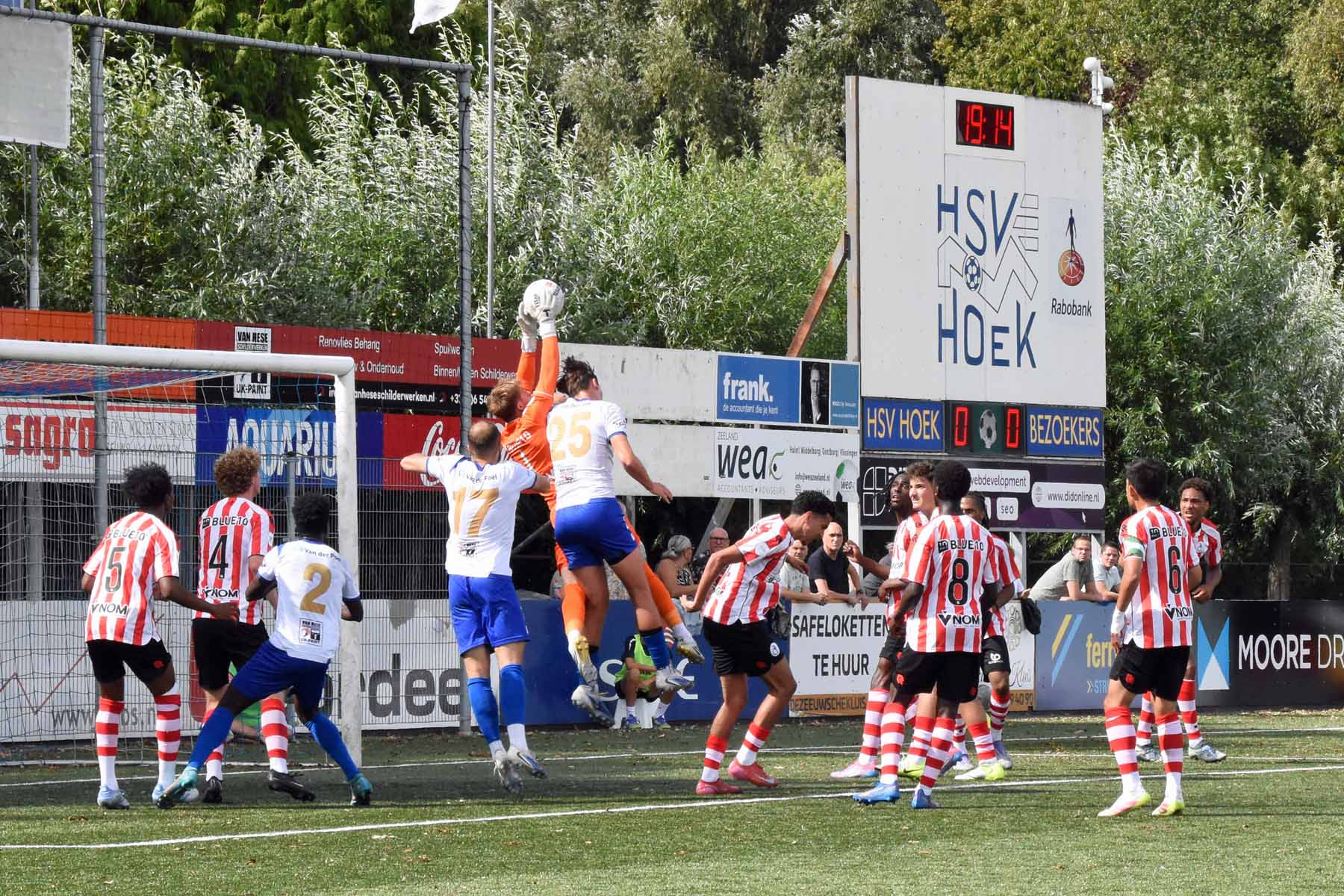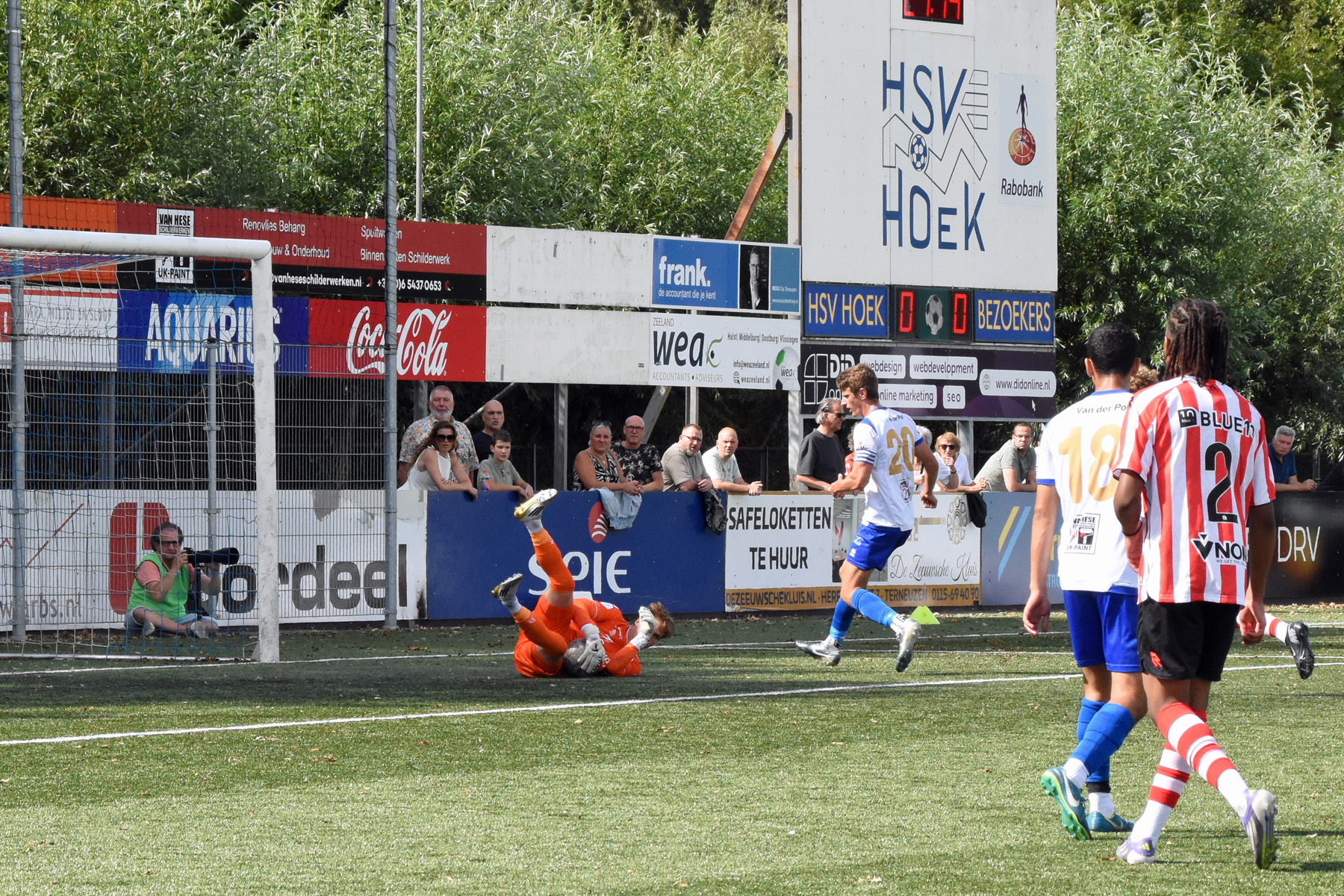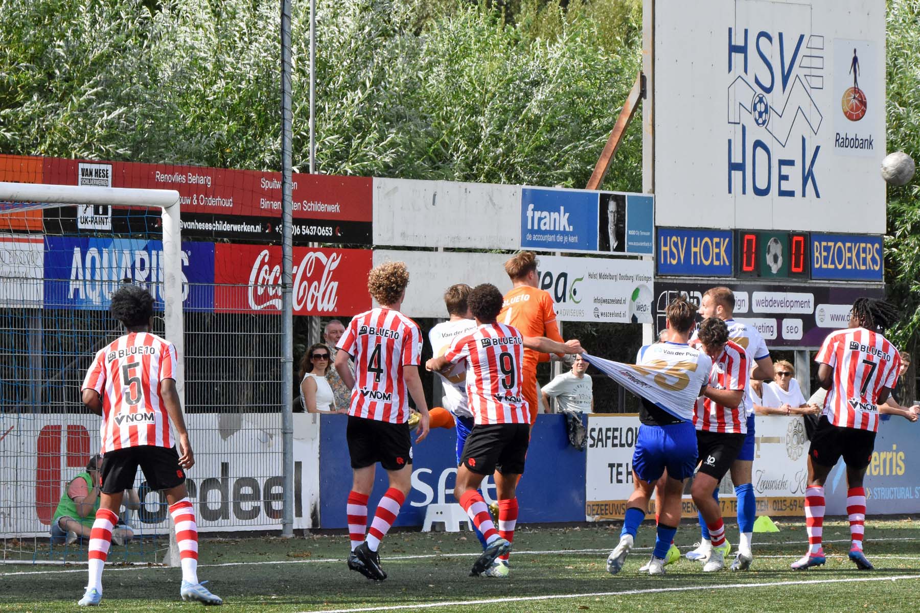 Hoek speelde voor het eerst gelijk in de Tweede Divisie na een doelpuntloos duel tegen Jong Sparta. De Zeeuws-Vlaamse formatie domineerde, maar stuitte keer op keer op de uitblinkende keeper Rik Suur. Door het resultaat blijft Hoek ongeslagen na vier wedstrijden.