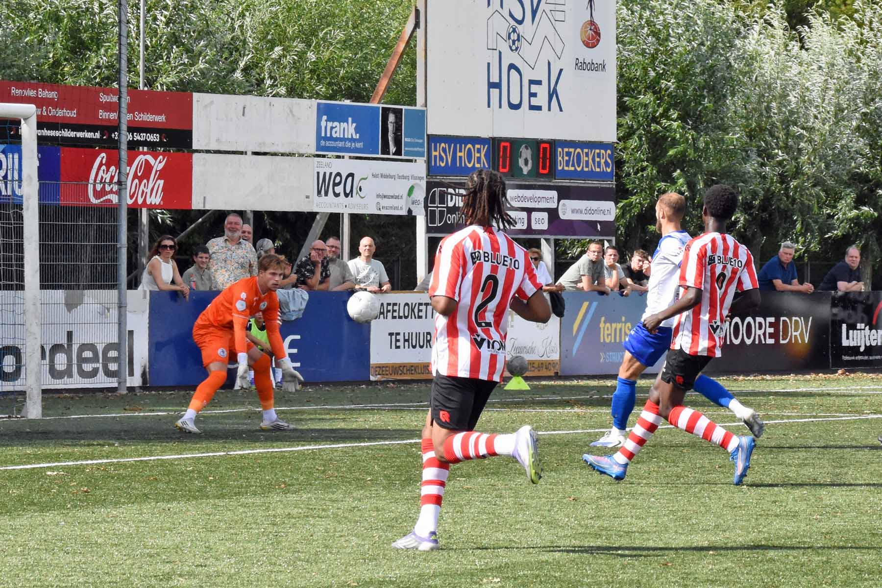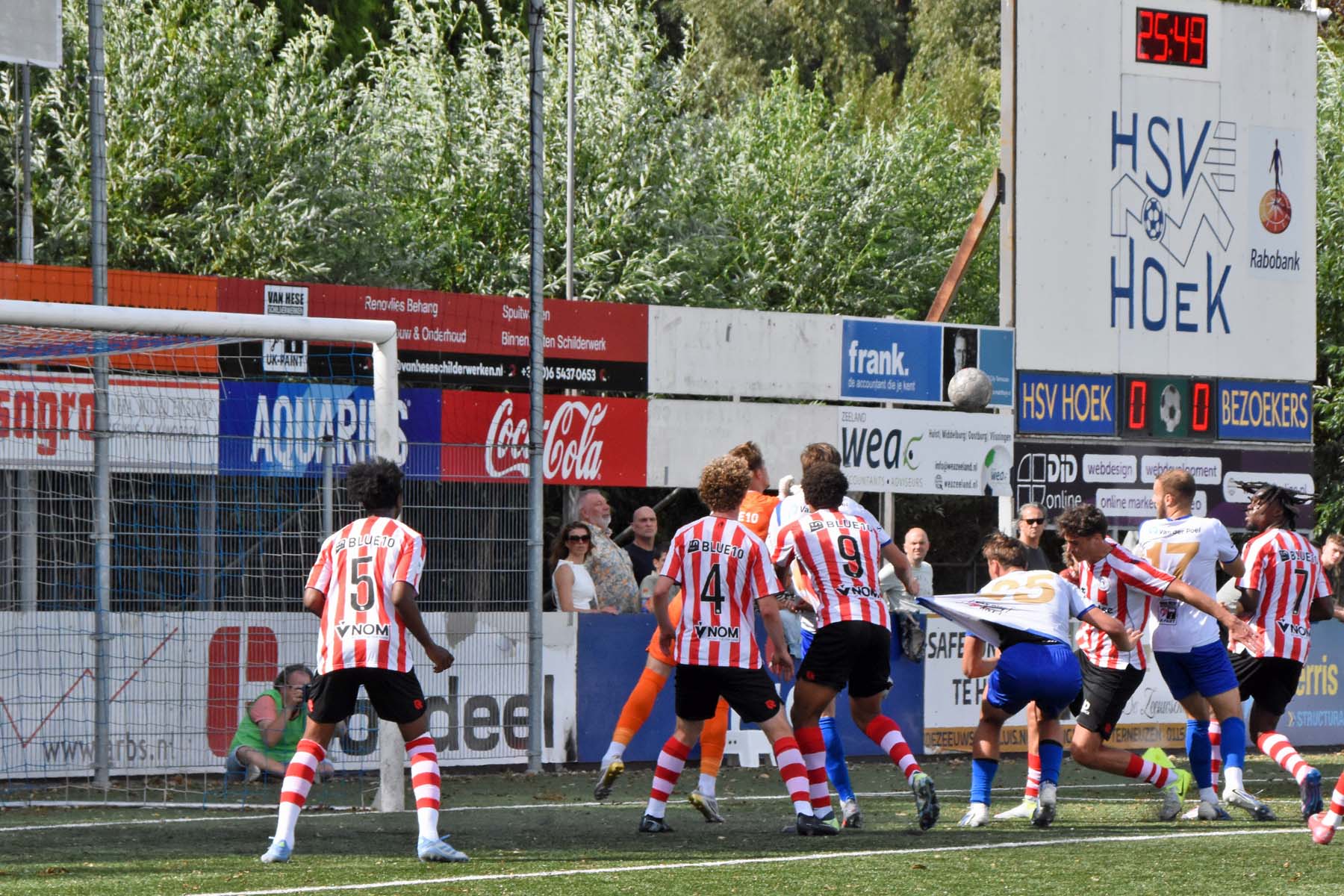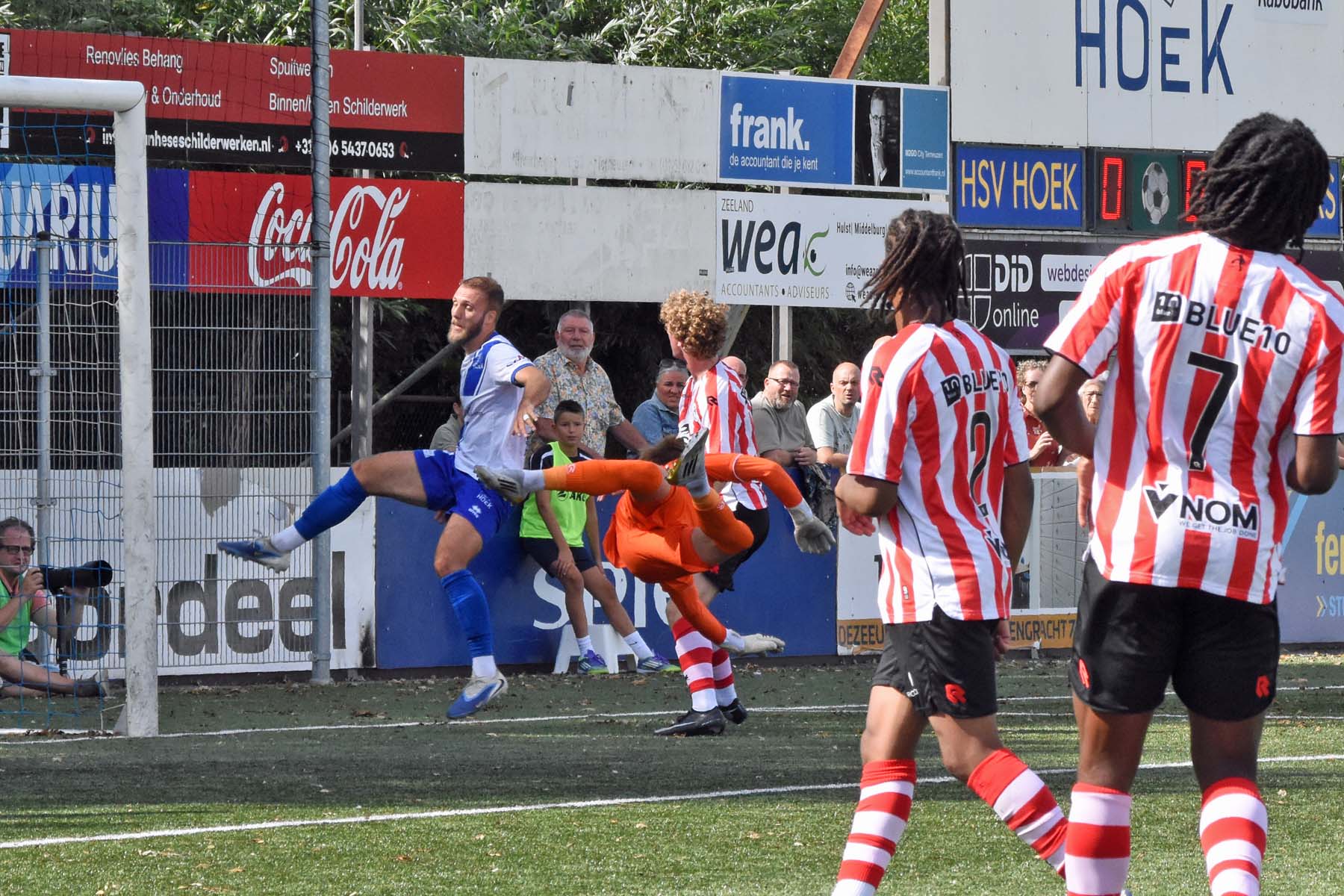 Hoek speelde voor het eerst gelijk in de Tweede Divisie na een doelpuntloos duel tegen Jong Sparta. De Zeeuws-Vlaamse formatie domineerde, maar stuitte keer op keer op de uitblinkende keeper Rik Suur. Door het resultaat blijft Hoek ongeslagen na vier wedstrijden.