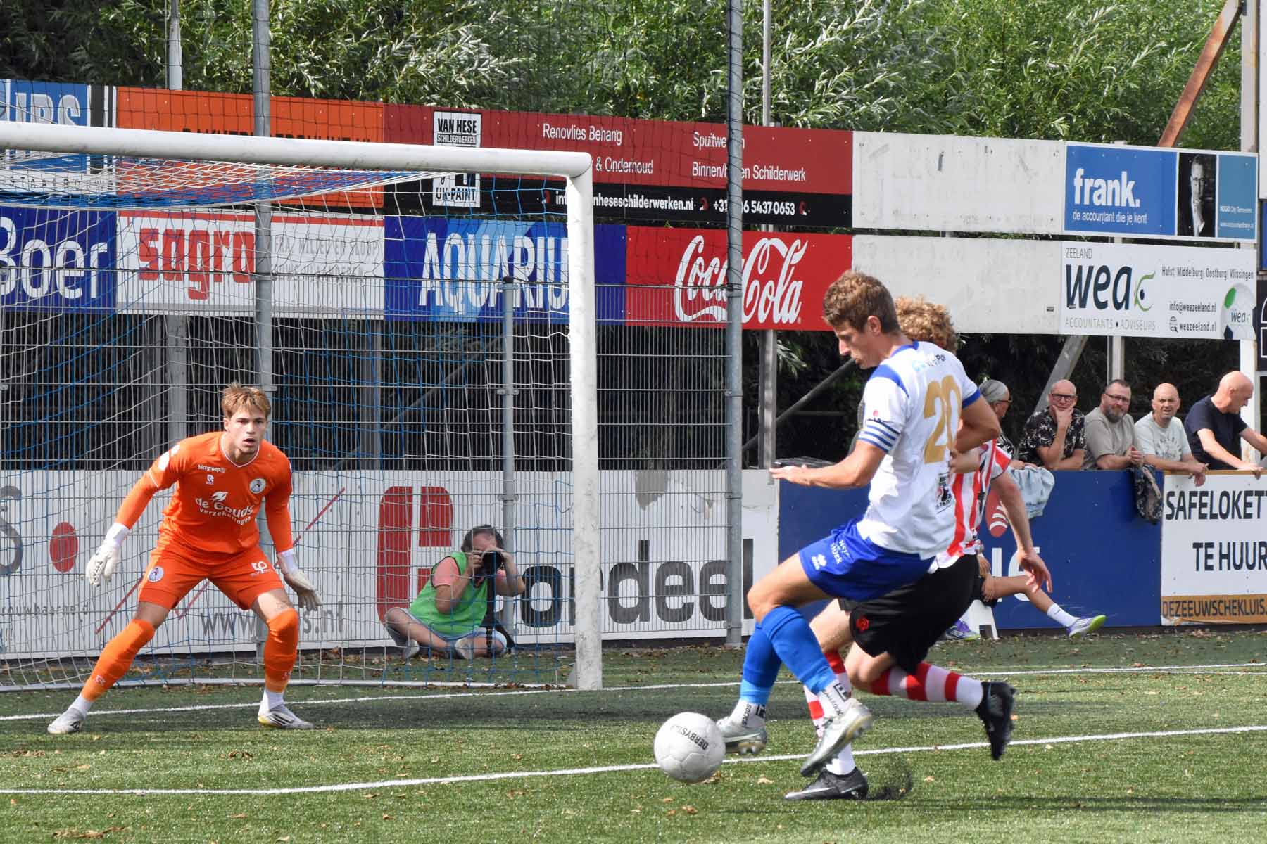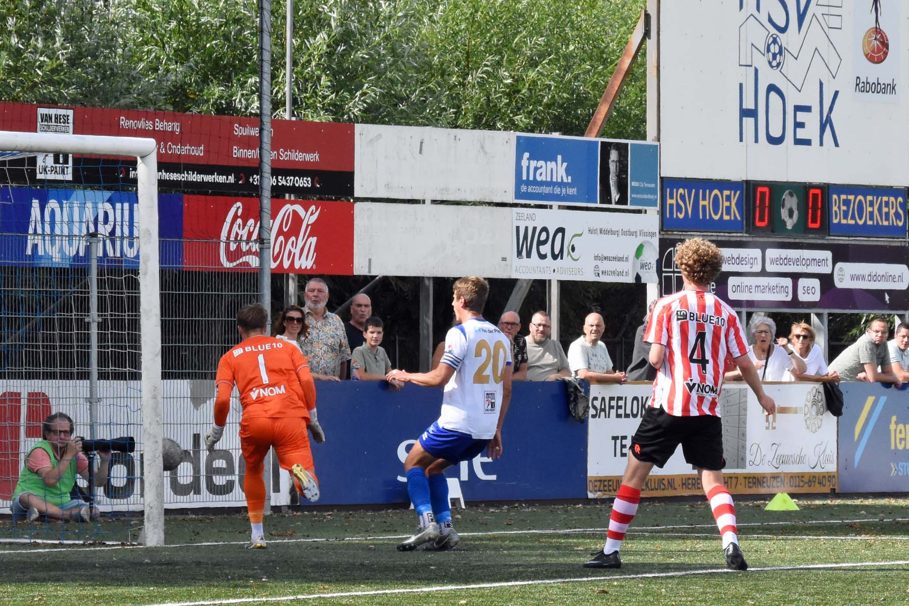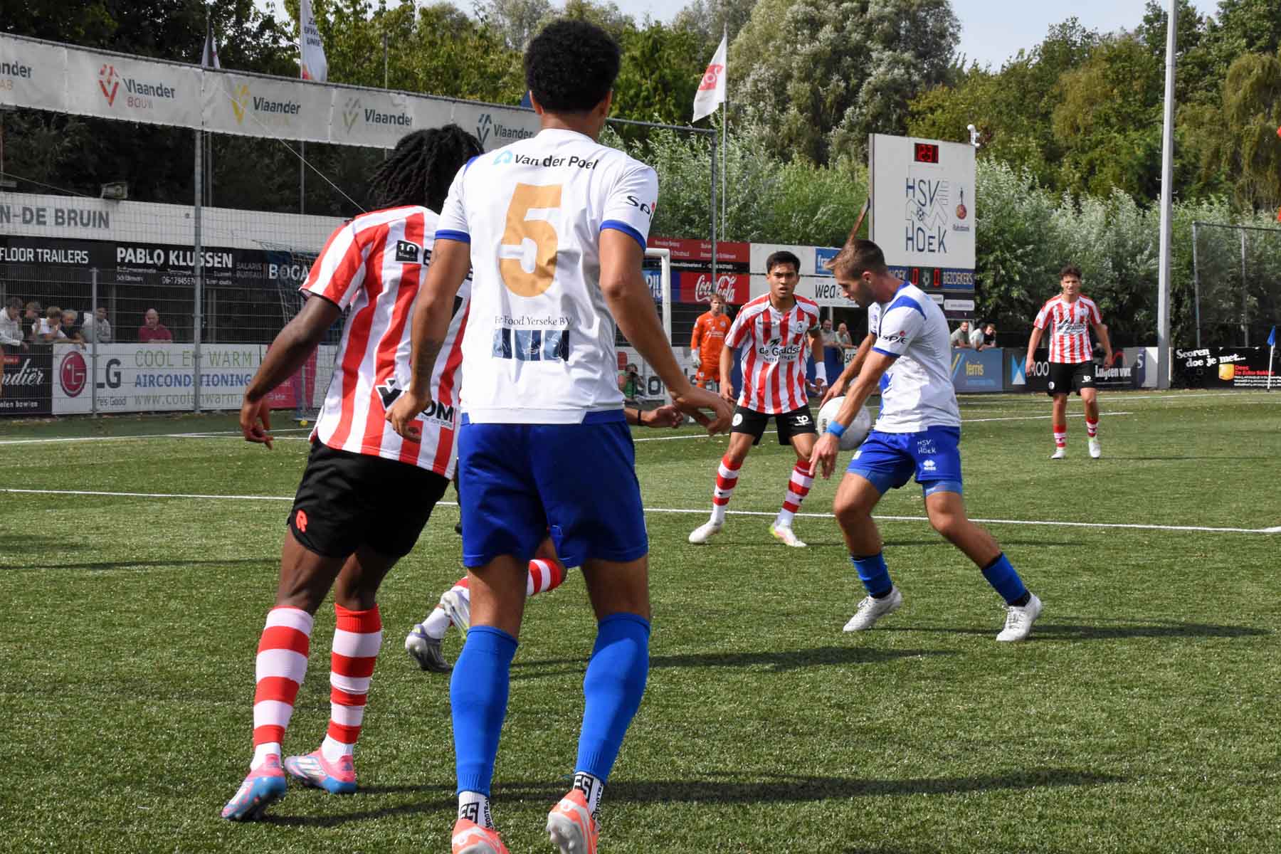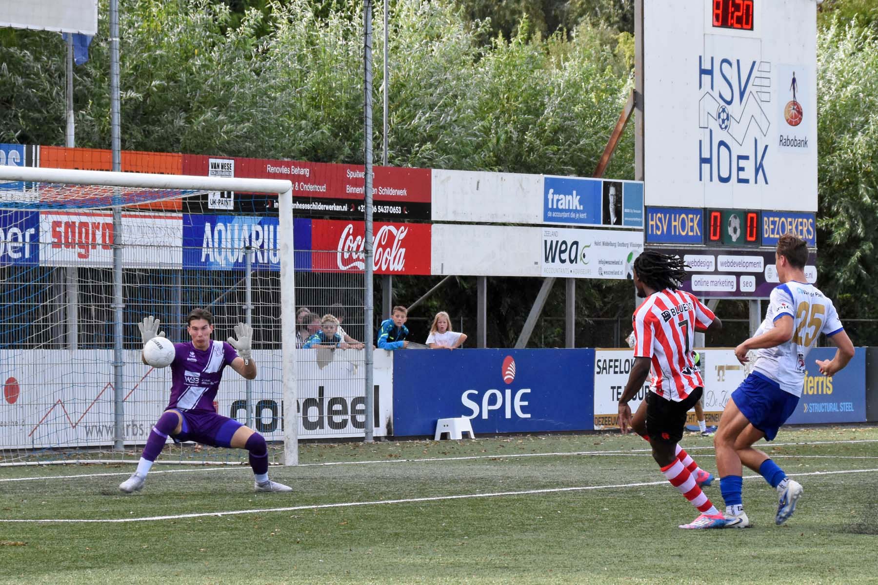 Hoek speelde voor het eerst gelijk in de Tweede Divisie na een doelpuntloos duel tegen Jong Sparta. De Zeeuws-Vlaamse formatie domineerde, maar stuitte keer op keer op de uitblinkende keeper Rik Suur. Door het resultaat blijft Hoek ongeslagen na vier wedstrijden.