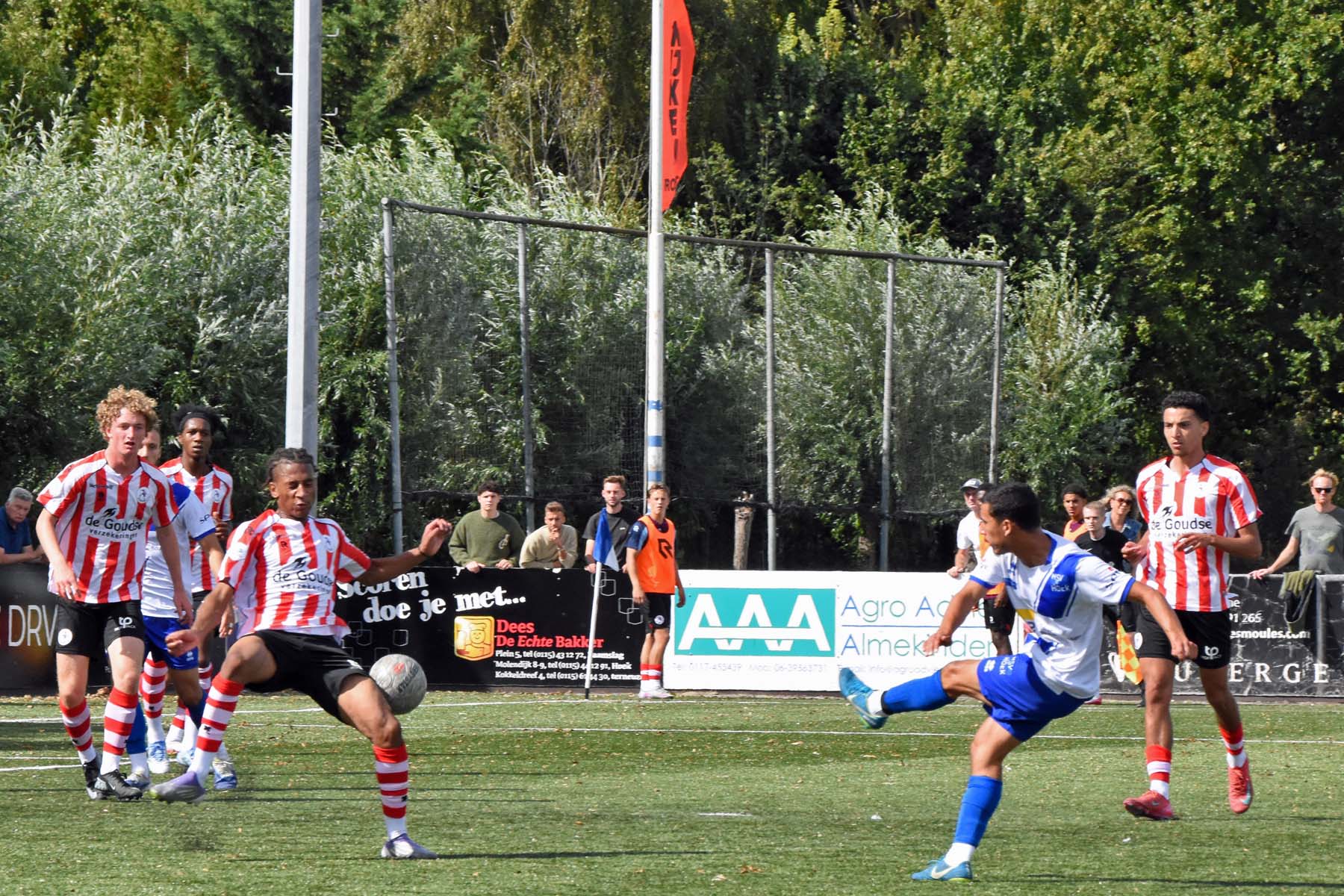 Trainer Gérard de Nooijer beloonde spits Din Sula met een basisplaats, nadat hij vorige week nog beslissend was als invaller. Hoek begon fel en dicteerde het spel, maar zag al vroeg dat het niet makkelijk zou worden. Jong Sparta-doelman Rik Suur, uit Burgh-Haamstede, stond als een muur in het Rotterdamse doel. Eerst redde hij op een inzet van Jarno Lion, later hield hij Aelterman en Sula van het scoren af. Ondanks het veldoverwicht lukte het Hoek niet om het overwicht in doelpunten om te zetten. Ook na rust was het spelbeeld onveranderd: Hoek bleef drukken, Jong Sparta hield stand. Suur hield Aelterman opnieuw van een treffer af en was een constante sta-in-de-weg voor de aanvallers van Hoek.