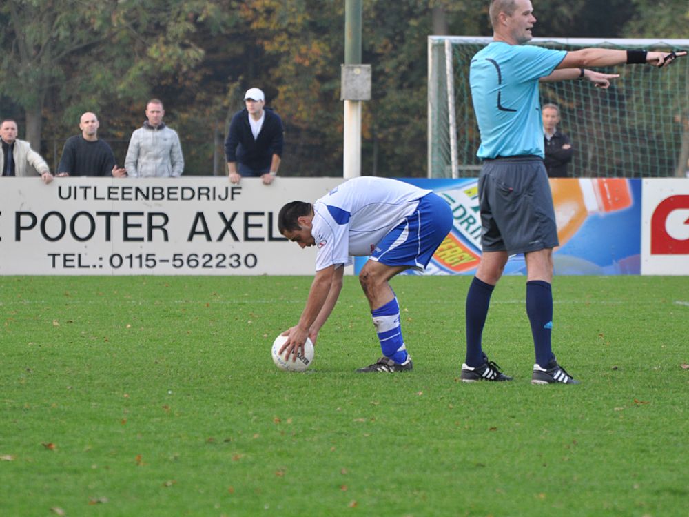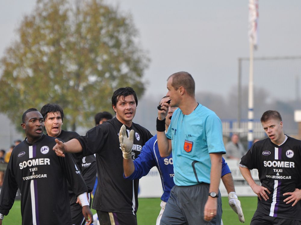Ofschoon iedereen bij LRC Leerdam protesteerde, was hij onverbiddelijk. Ferry Alfons zette zich achter de bal en schoot deze onverstoorbaar achter Mirco Bovo.