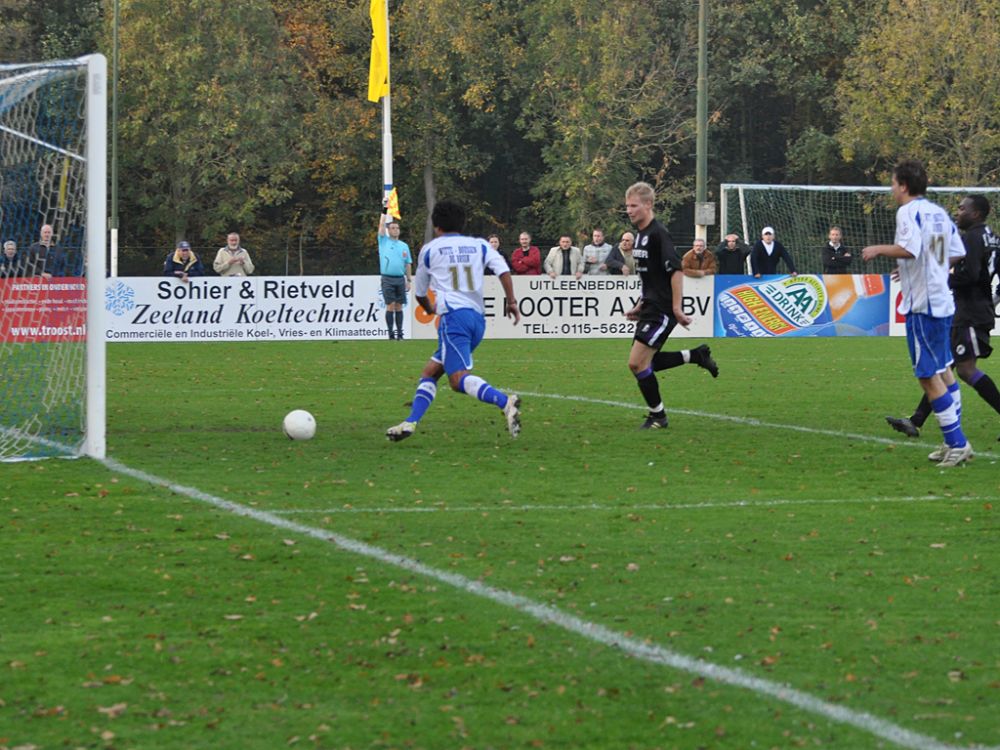 Na meer dan een half uur spelen gaf Jari Vyaene wederom een strakke voorzet maar Regilio Pinas kon er zijn hoofd net niet tegenzetten.