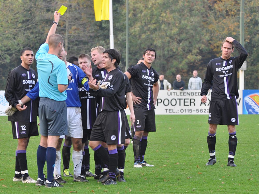 In de eerste helft kwam LRC Leerdamspeler Rupertho Dorethea goed weg. Hij maakte een overtreding, scheidsrechter Harold van de Ketterij zag dat Dorethea al geel had en gaf hem slechts een waarschuwing.