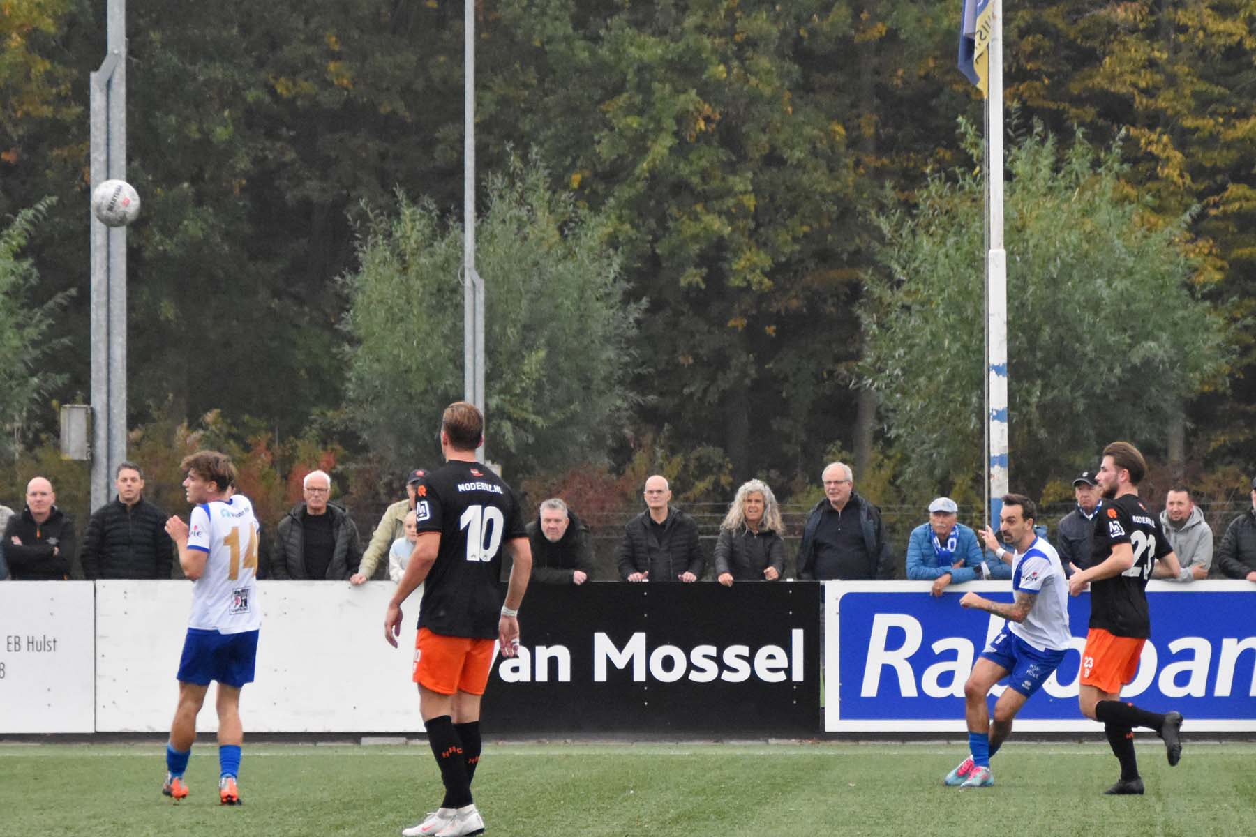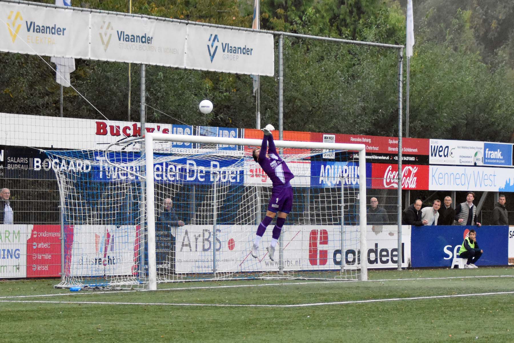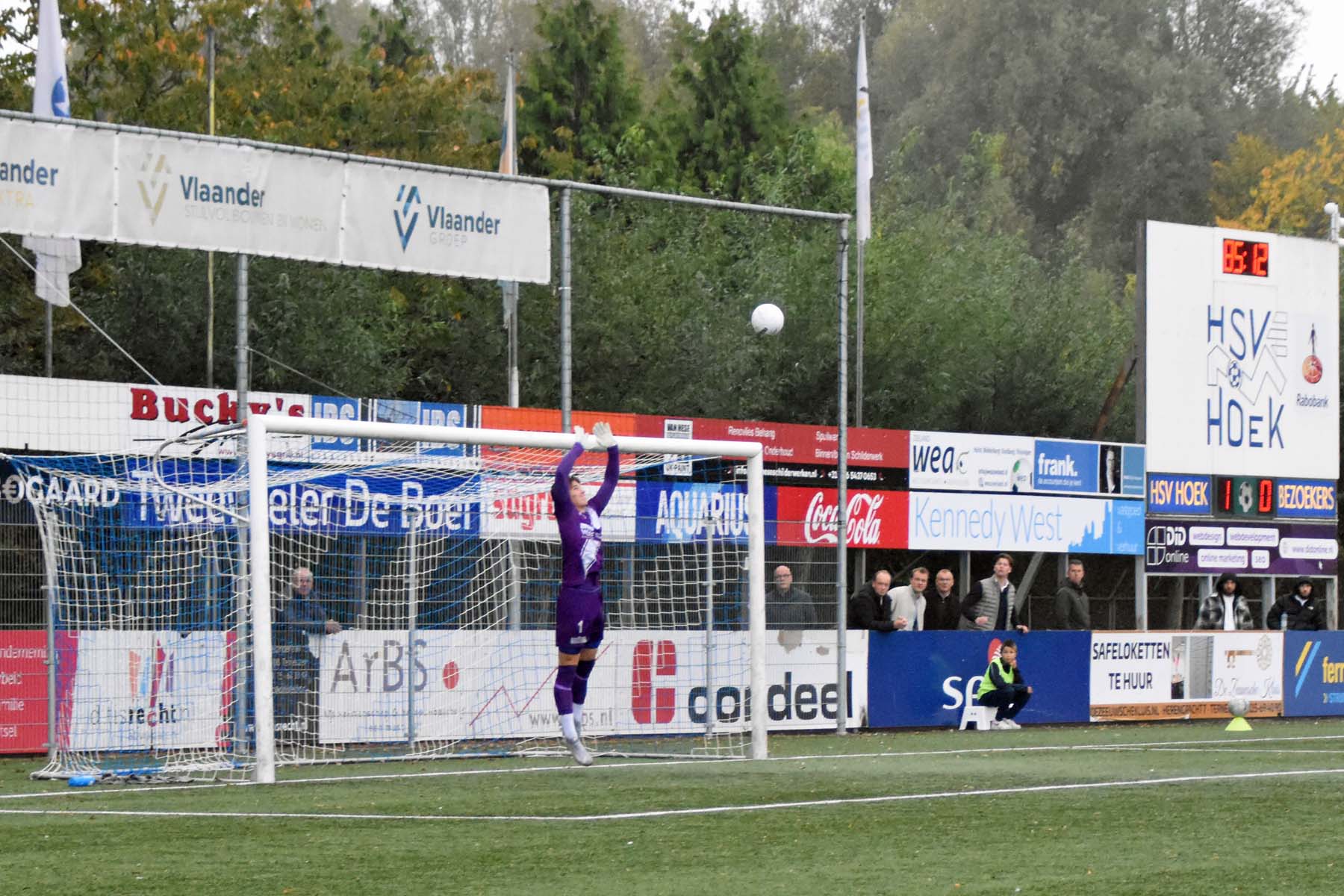 de bal gaat over de muur van HSV Hoek..