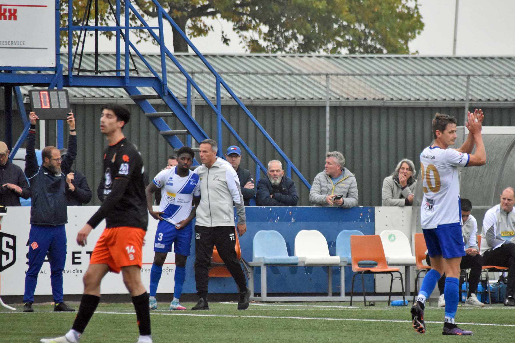 De vierde man gaf 4 minuten blessuretijd aan. Kan HSV Hoek de overwinning over de streep trekken? Trainer De Nooijer zet er voor de laatste paar minuten nog een verdediger bij. Steve Schalkwijk verlaat het veld zijn vervanger Jevairo Pengel.