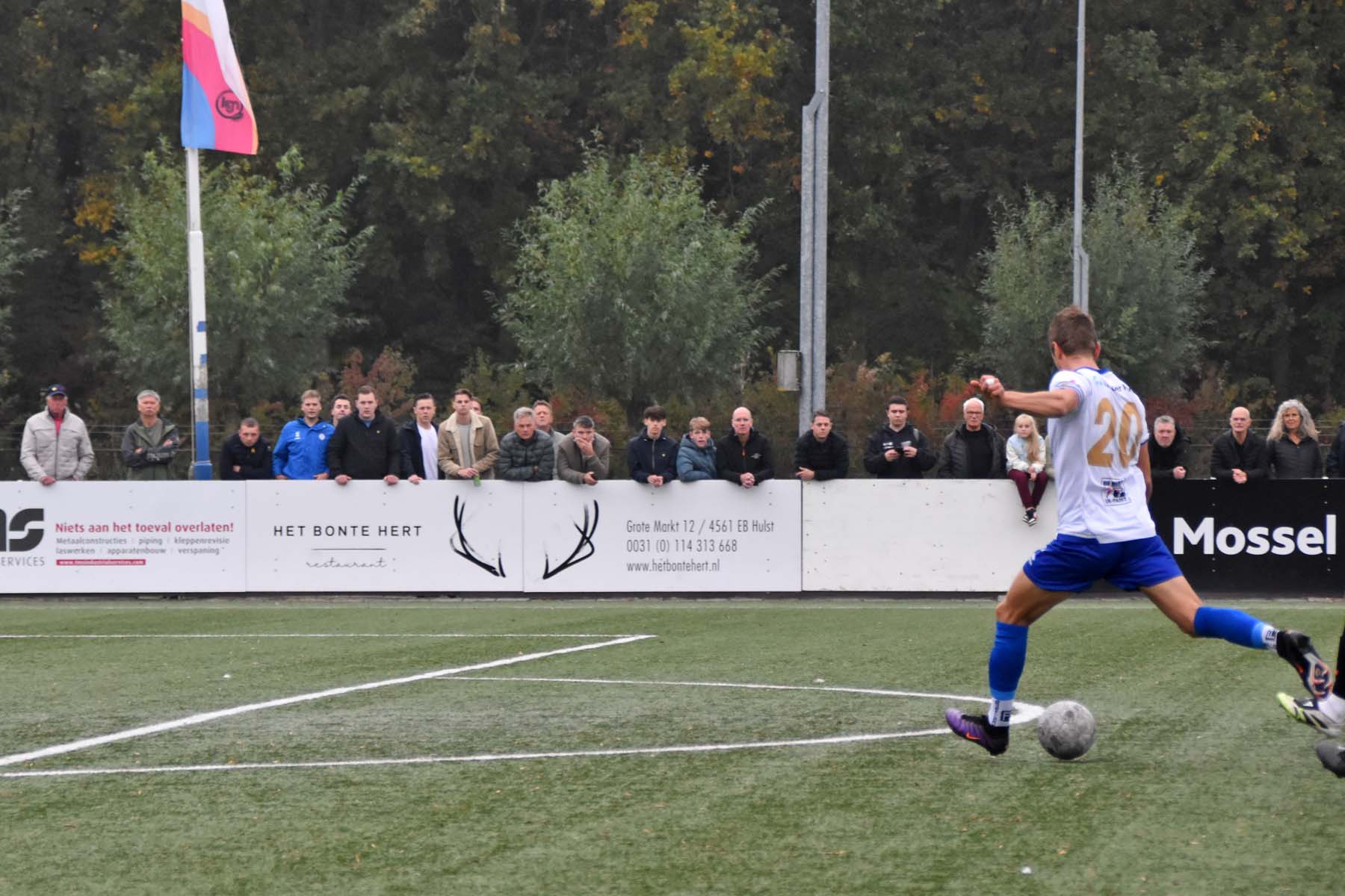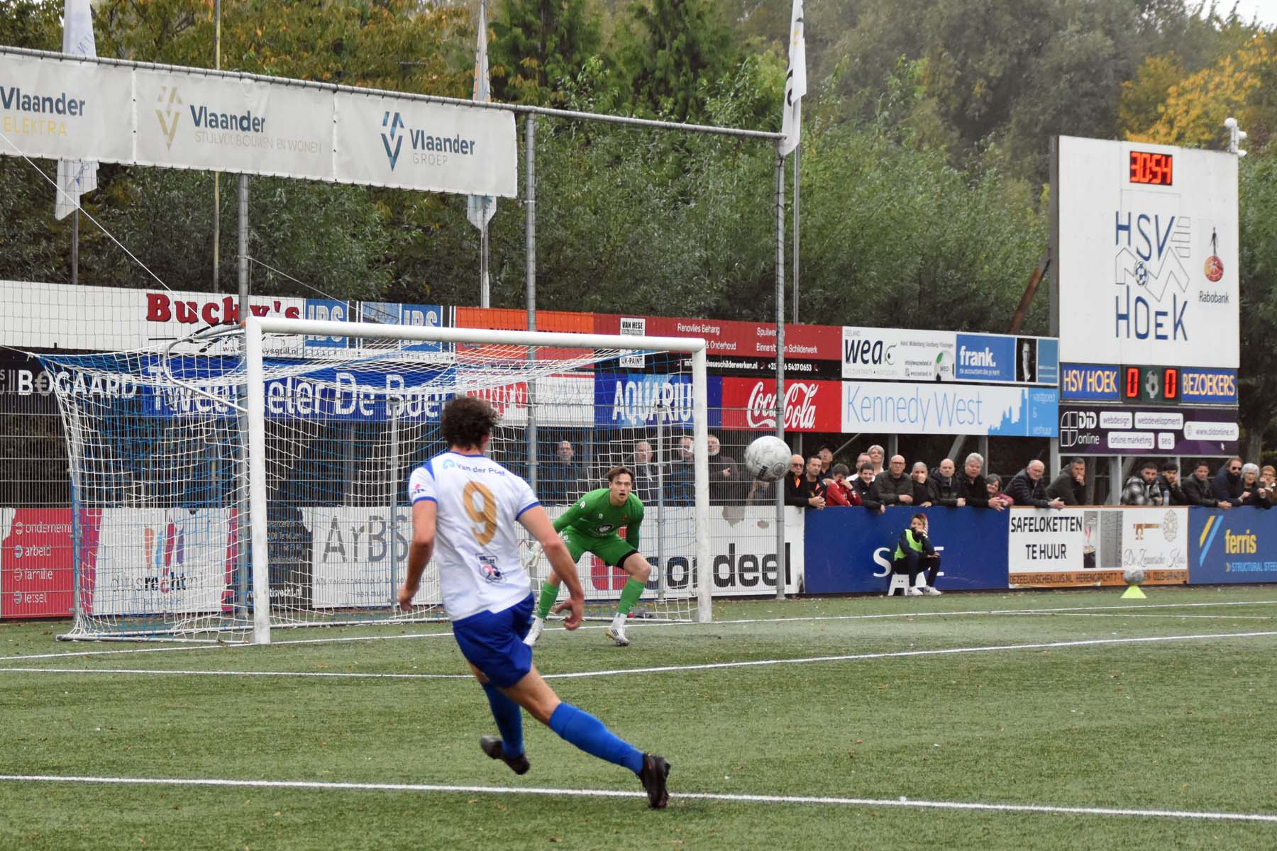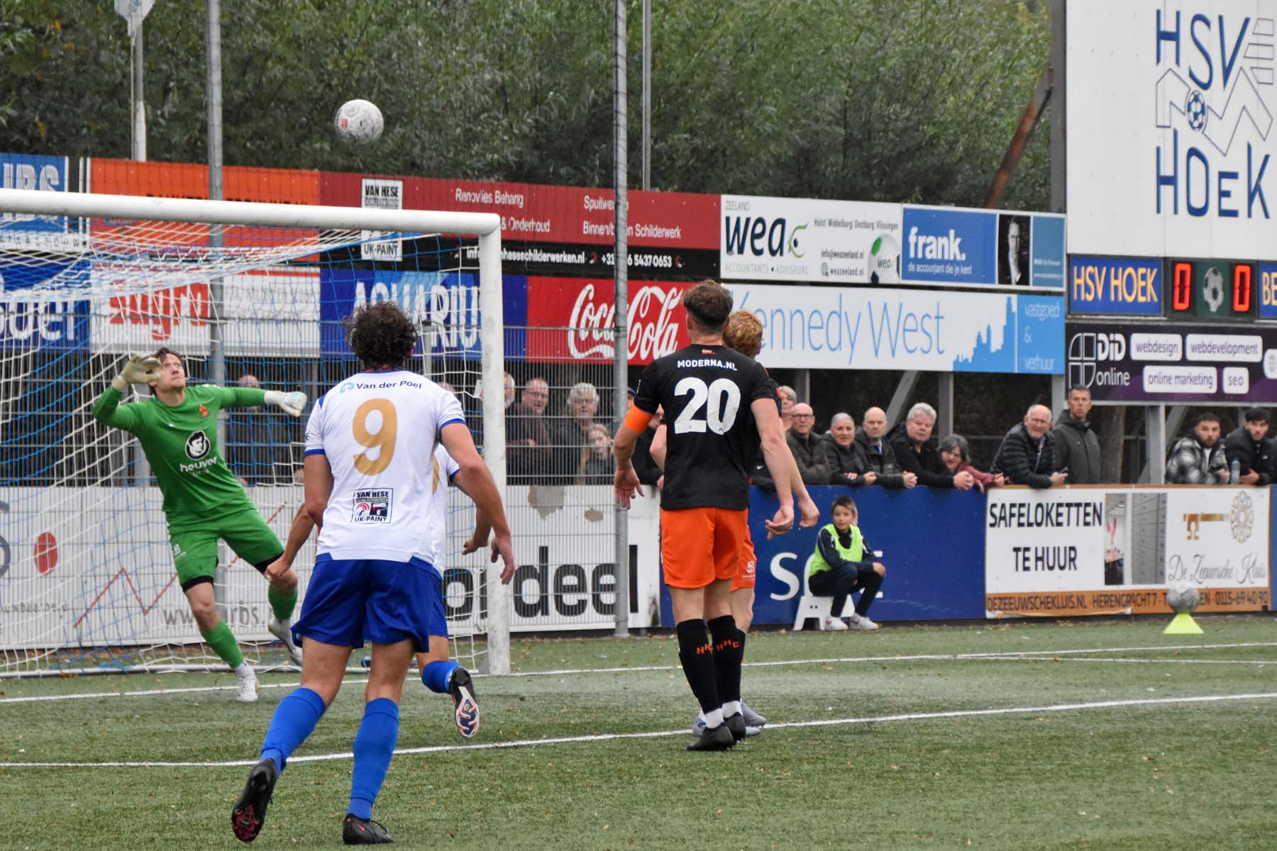 vrije trap voor HSV Hoek komt vol in de muur..