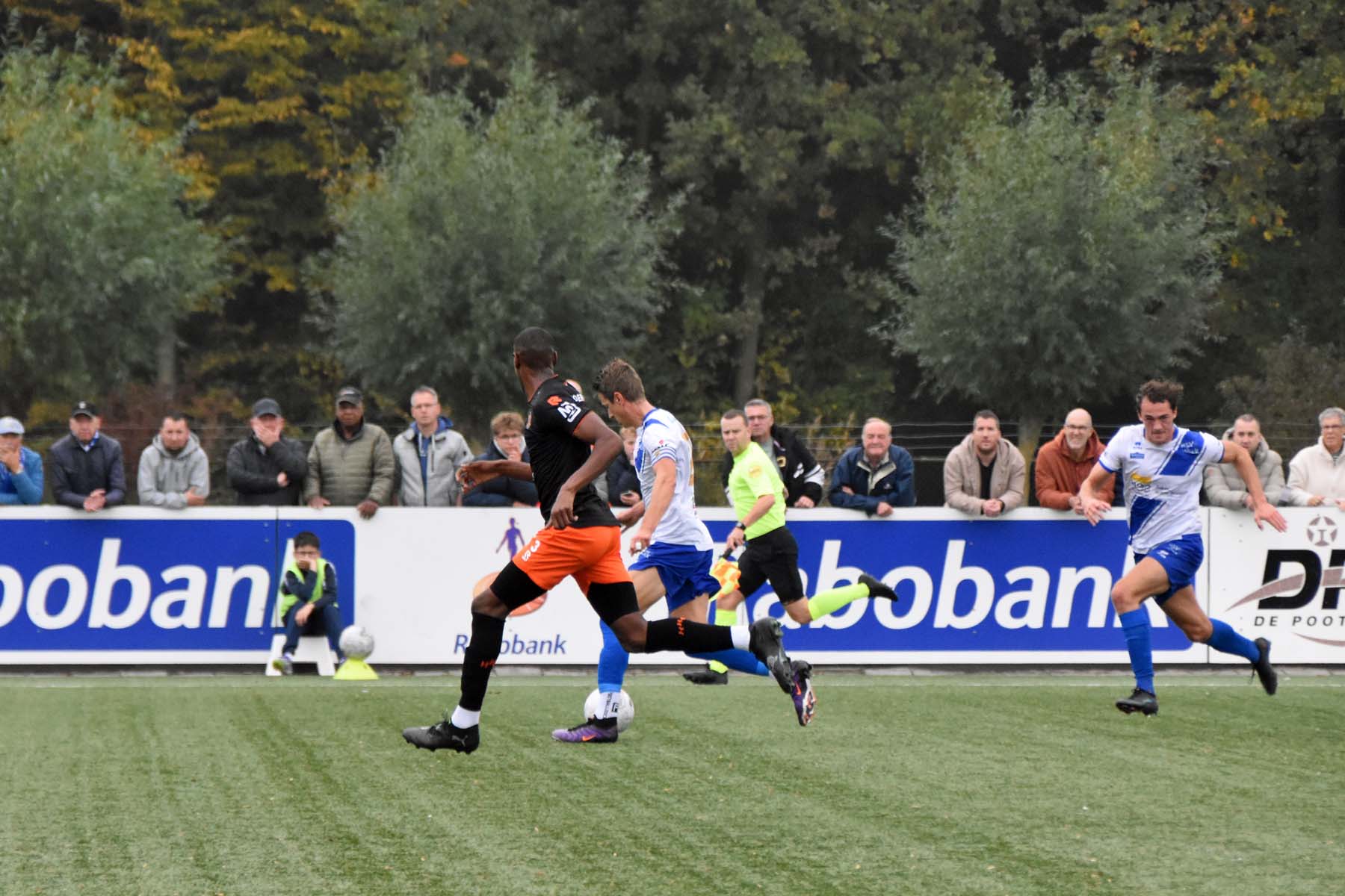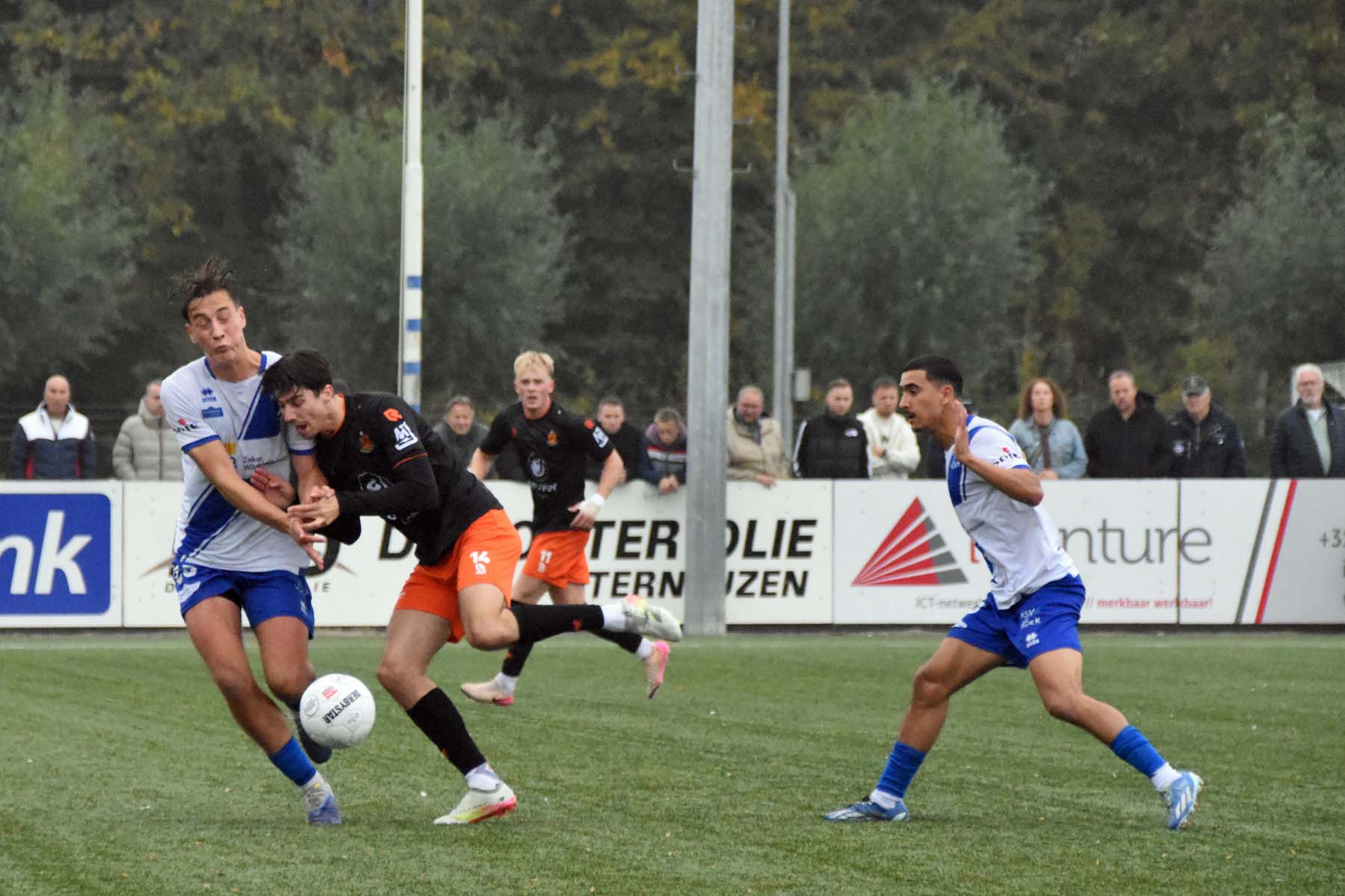 Voor elke bal wordt gestreden. Robbie van Hauter schroomt de duels niet..