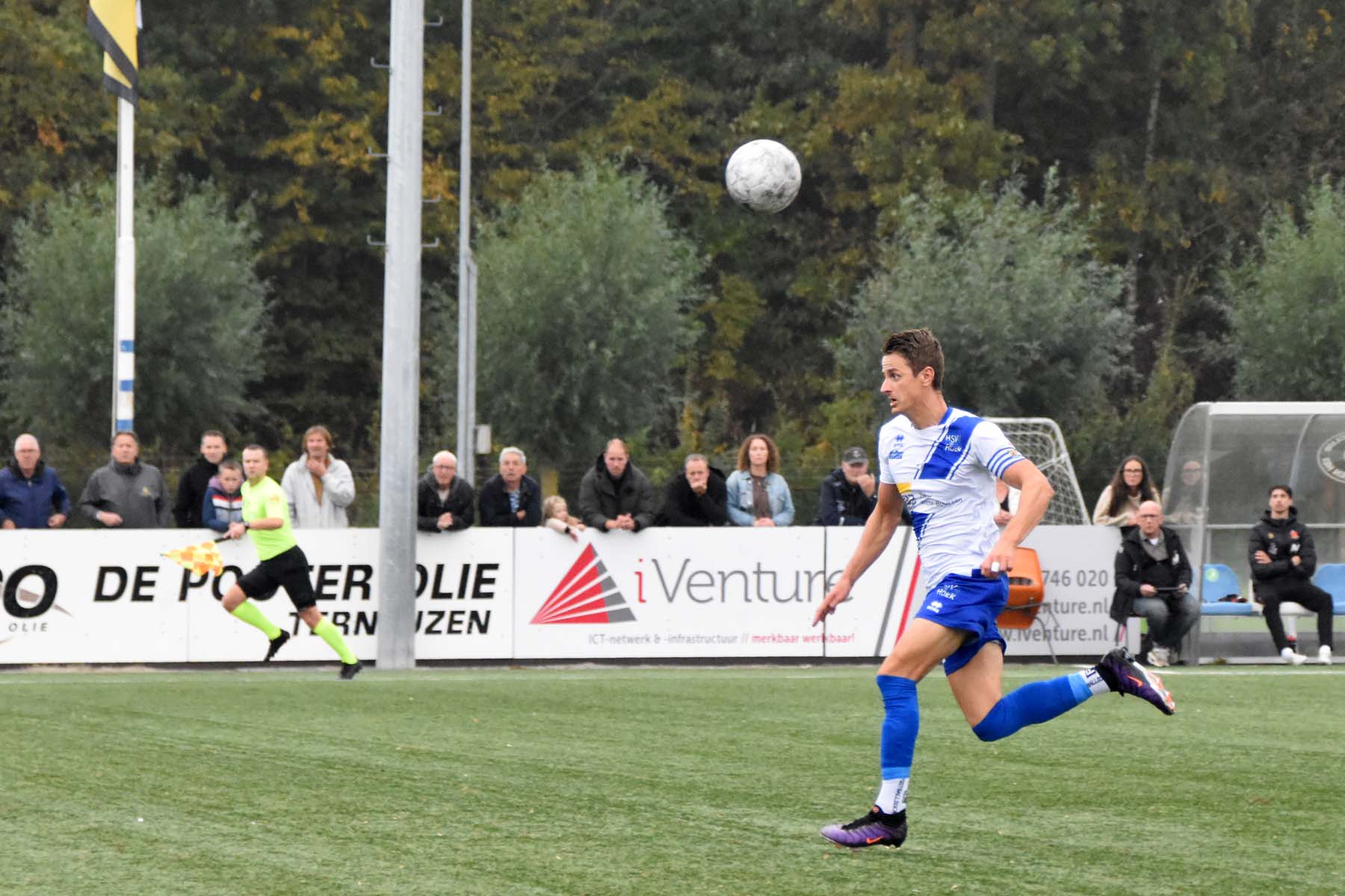 HSV Hoek kiest direct de aanval. Yanillio de Nooijer geeft de bal voor..