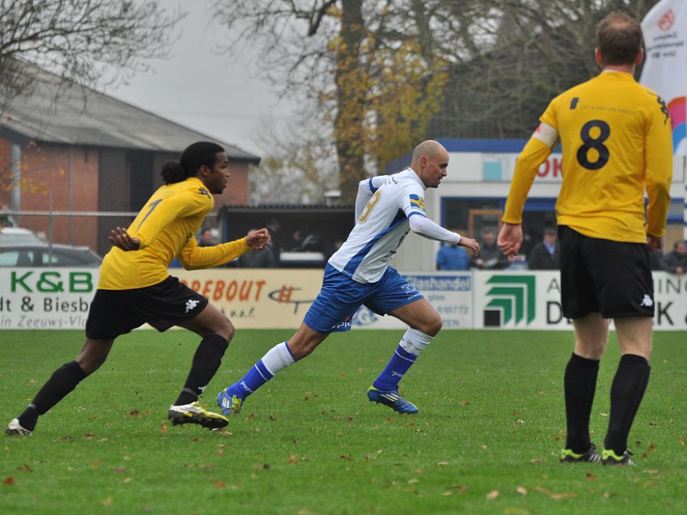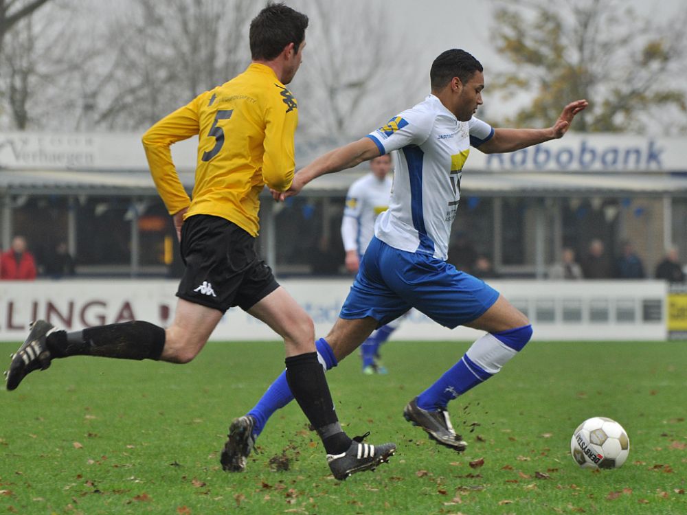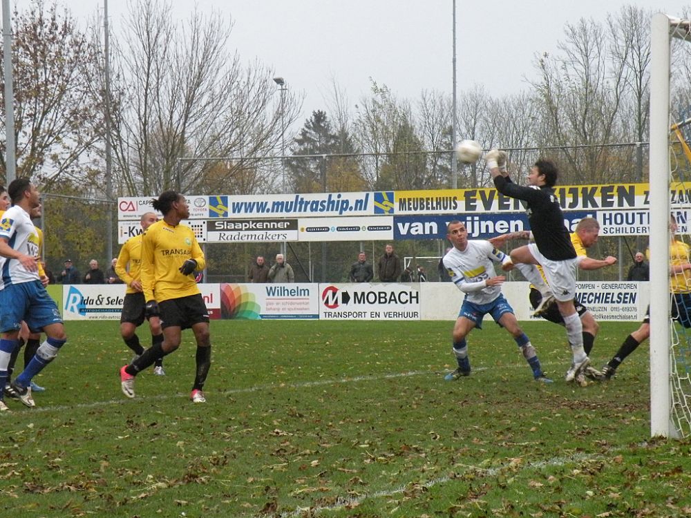 Raymond Wolff kwam goed voor zijn man maar had te veel tijd nodig om de bal voor te geven en een goede voorzet van Regilio Pinas werd door ASWH weggewerkt.