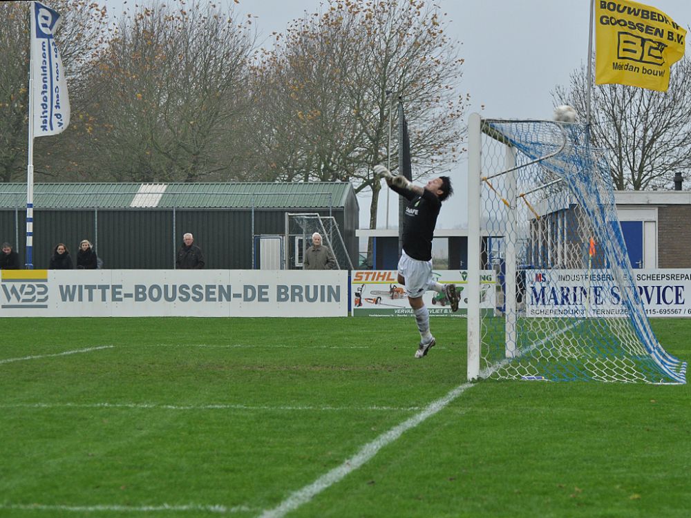 Everton Pires Travares was dicht bij zijn derde doelpunt van de middag maar de vingertoppen van Jordi de Jonghe brachten redding.
