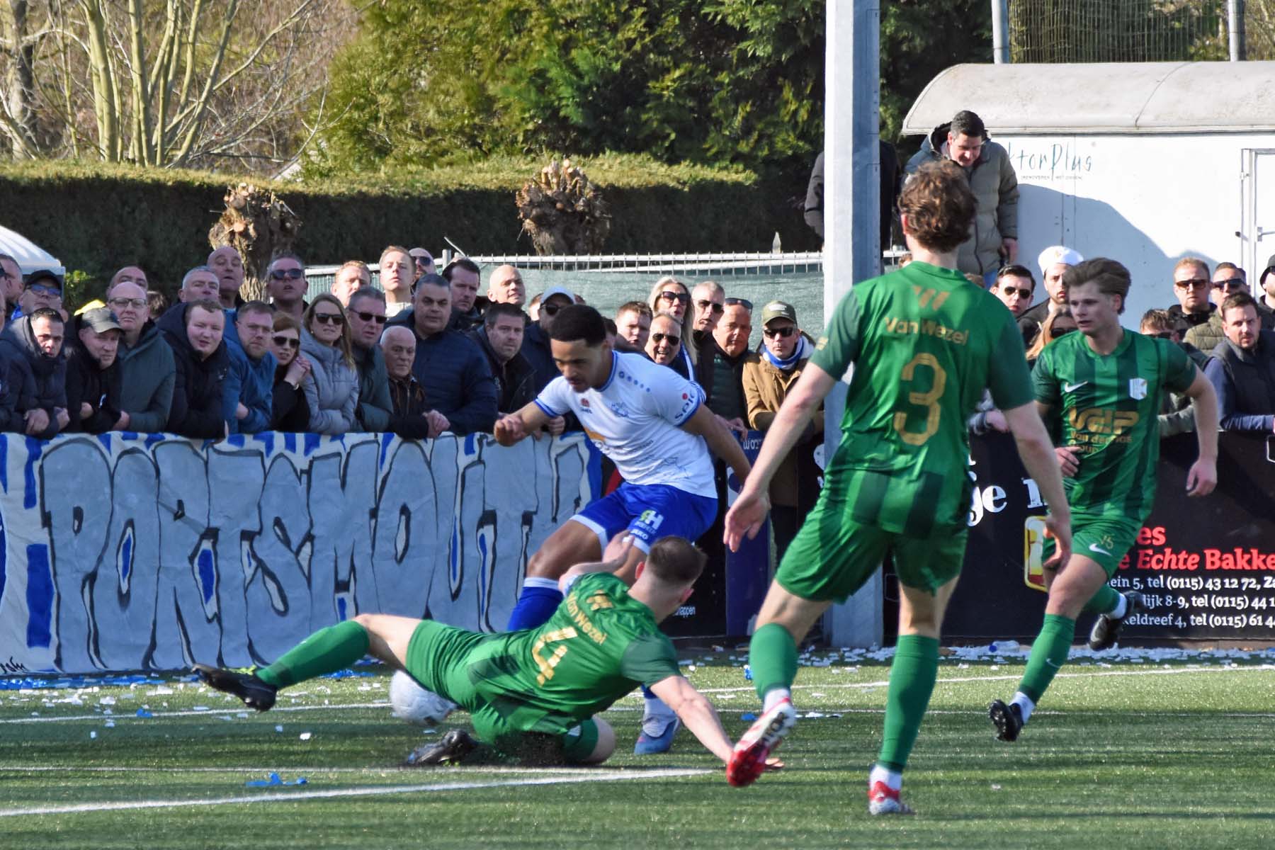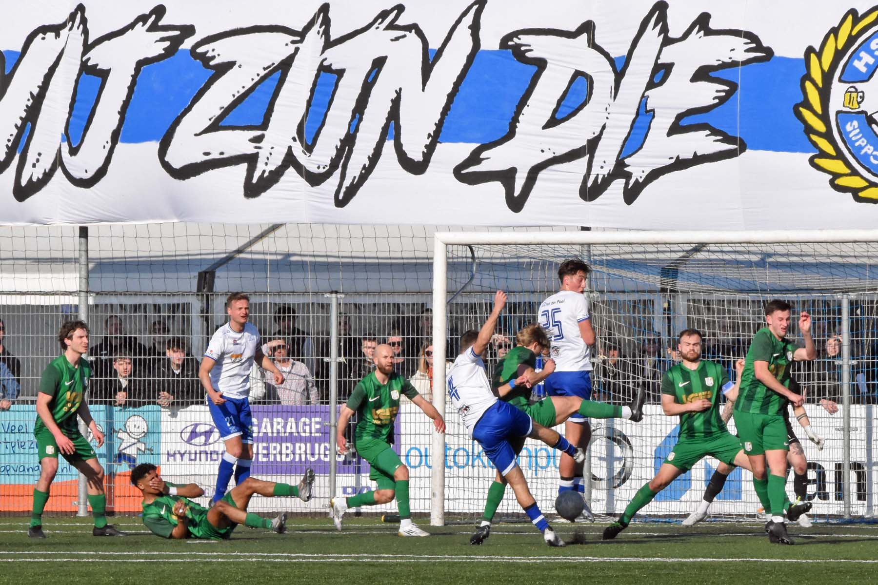 Corner voor HSV Hoek. Gertjan Martens, Sylvio Hage en Wout den Engelsman worden alle drie vastgehouden, moet kunnen toch?..