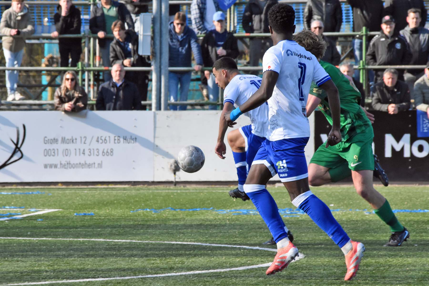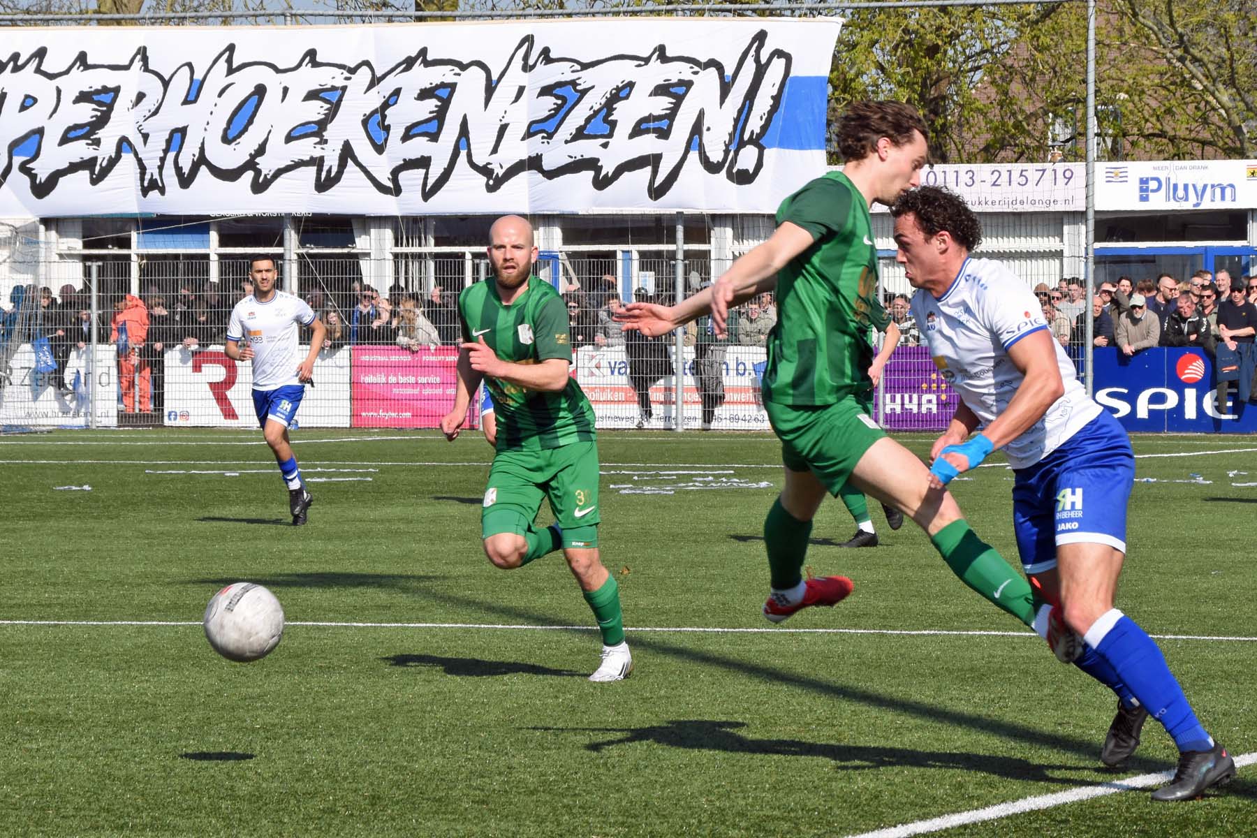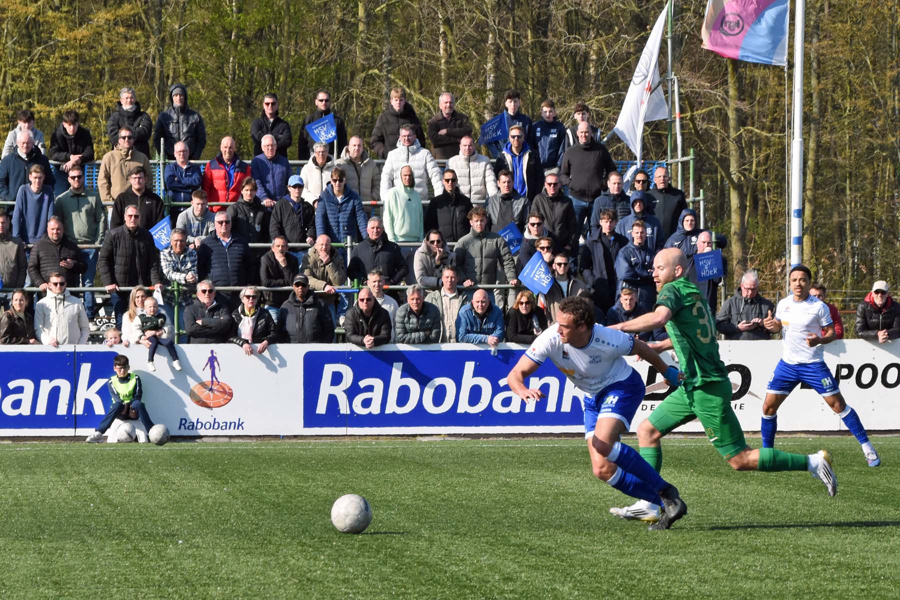 Counter voor HSV Hoek. Robbie van Hauter geeft de bal mee...