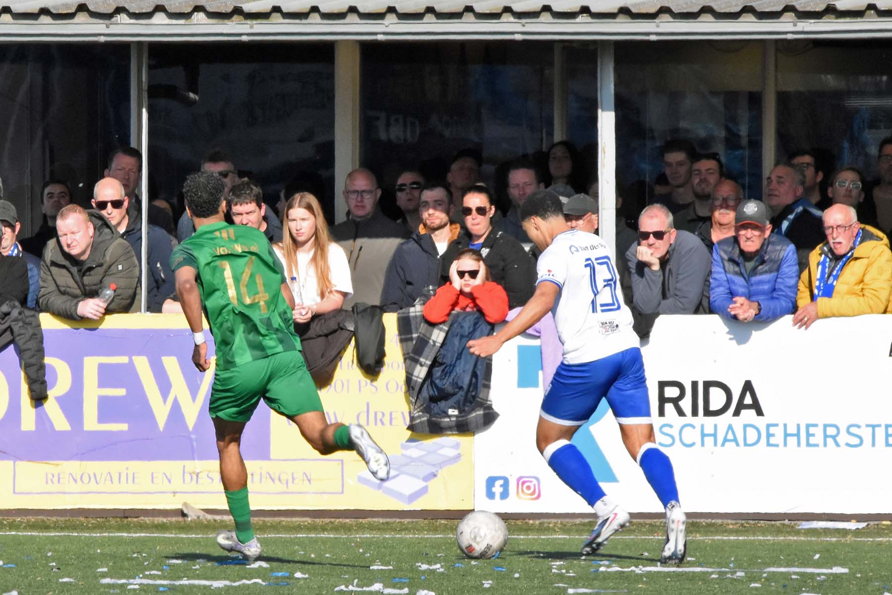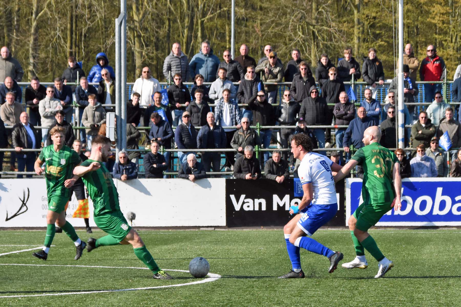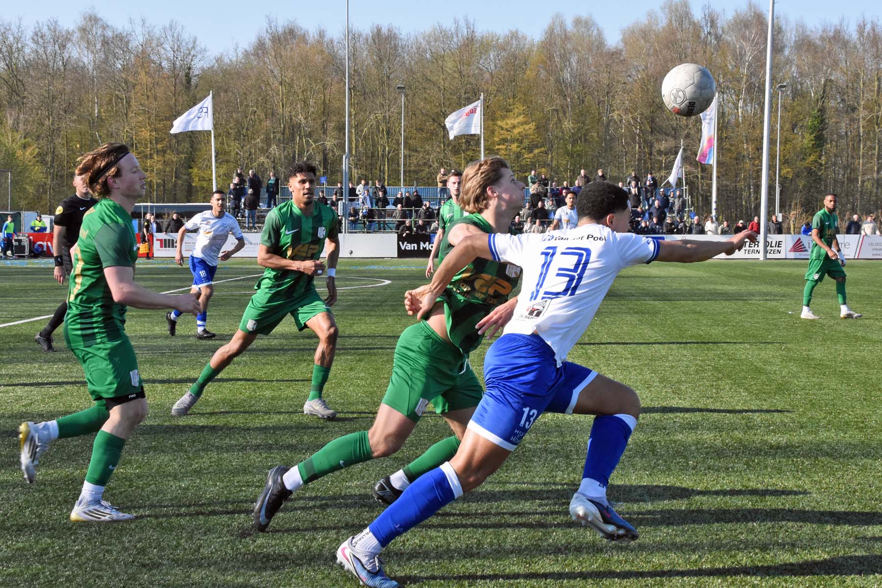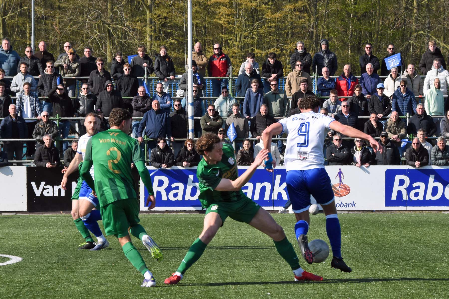 Counter voor HSV Hoek. Robbie van Hauter geeft de bal mee...