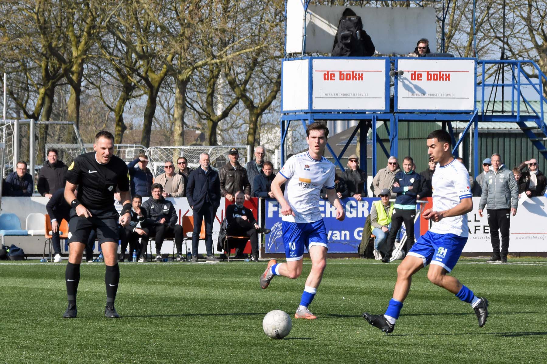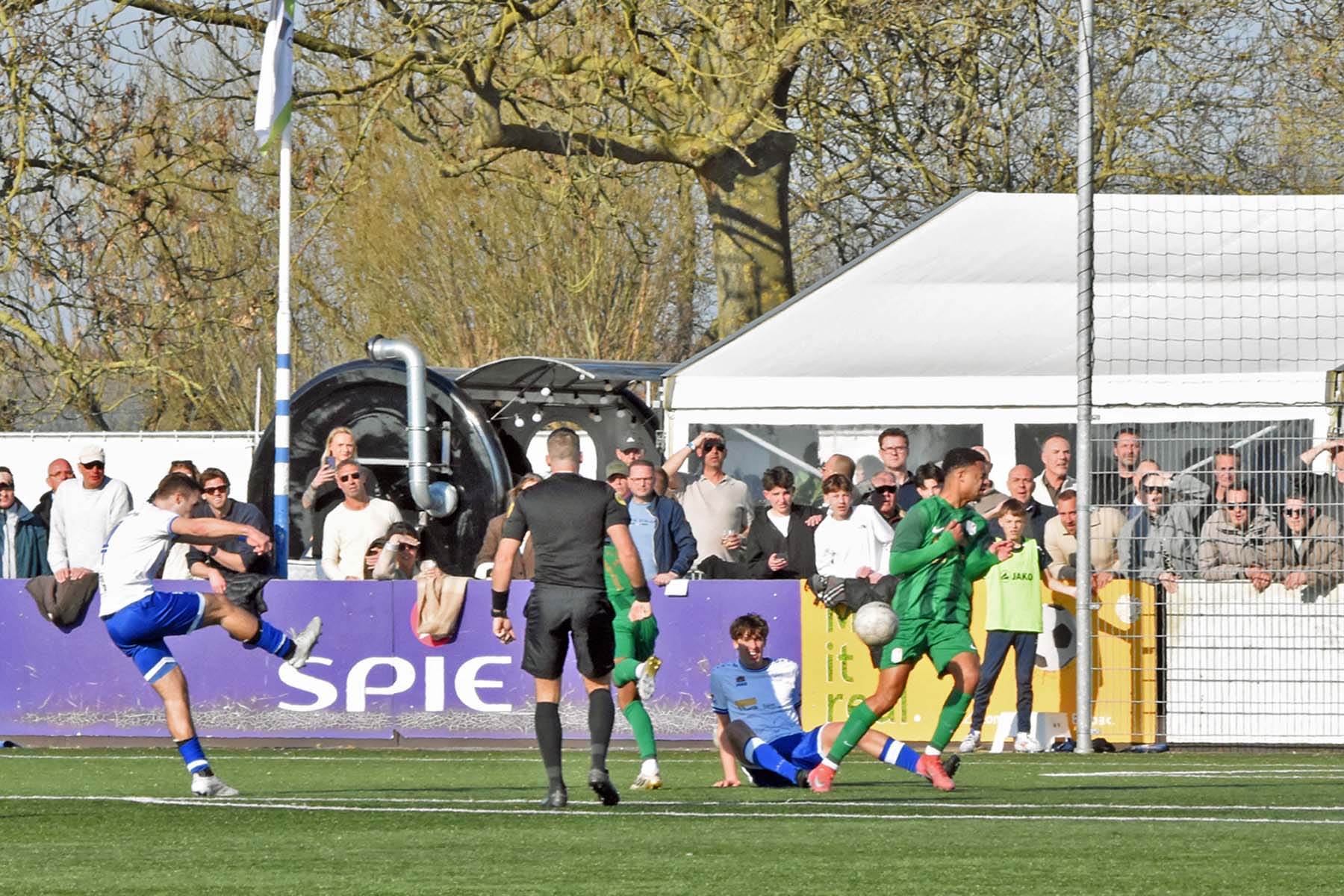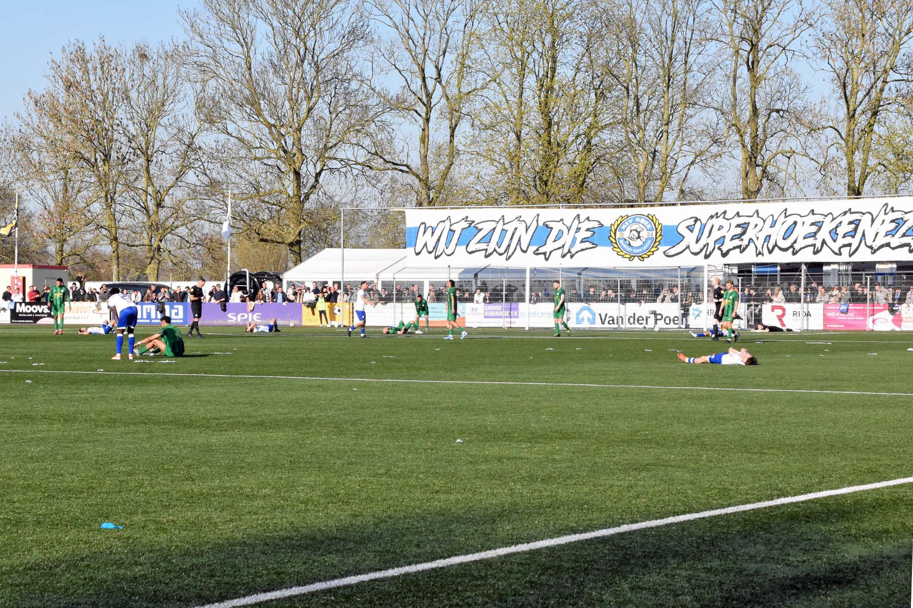 bij HSV Hoek denken ze aan een penalty de scheidsrechter zegt doorspelen.
