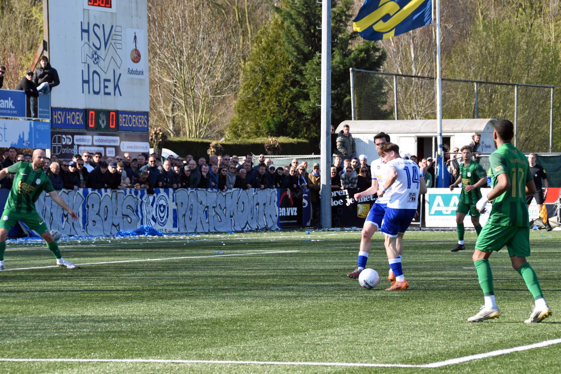 HSV Hoek kiest direct de aanval. Wout den Engelsman zorgt direct in het begin van de wedstrijd voor verwarring, staat hij in de spits?...