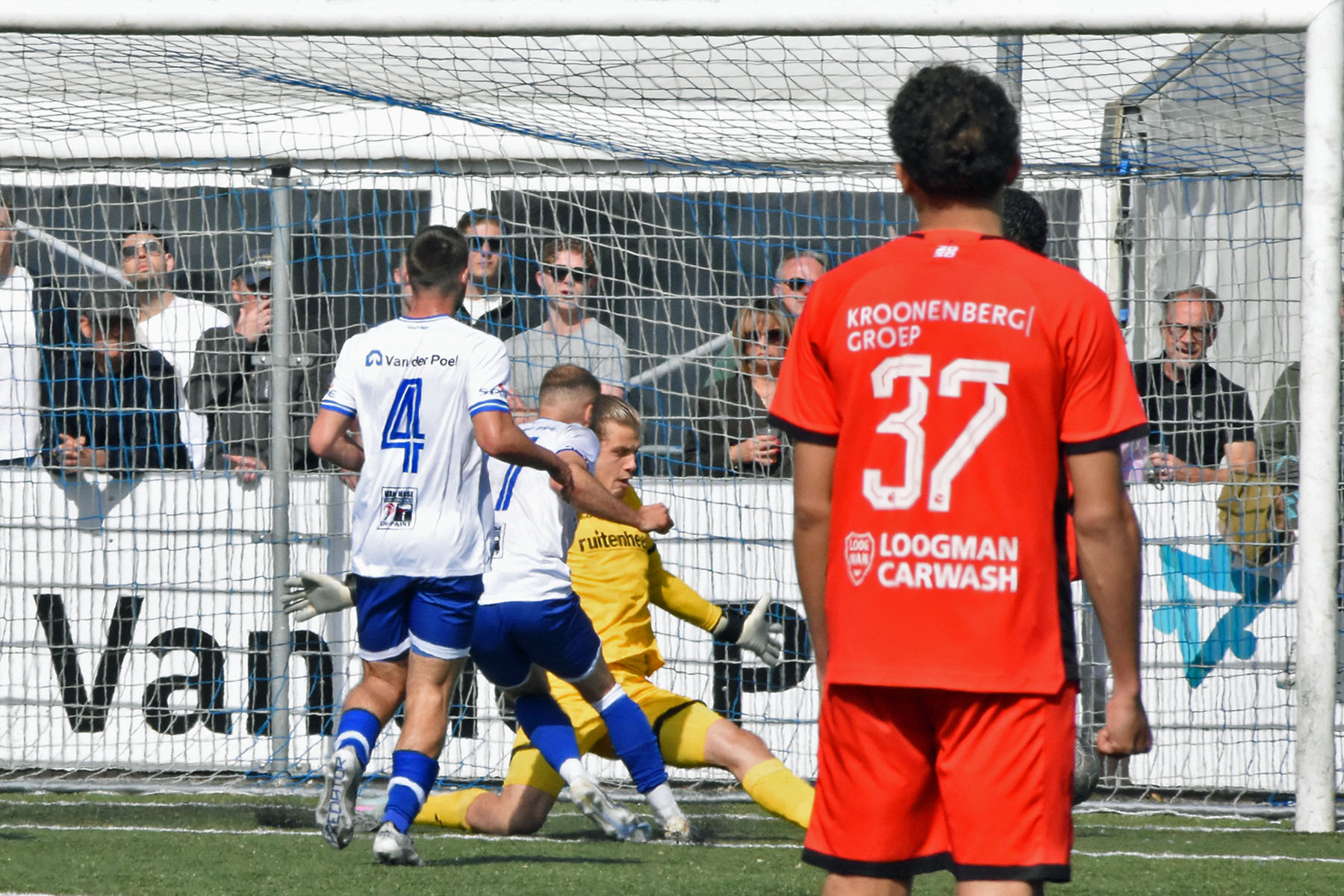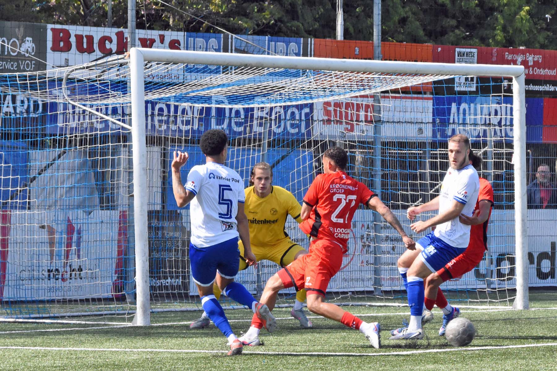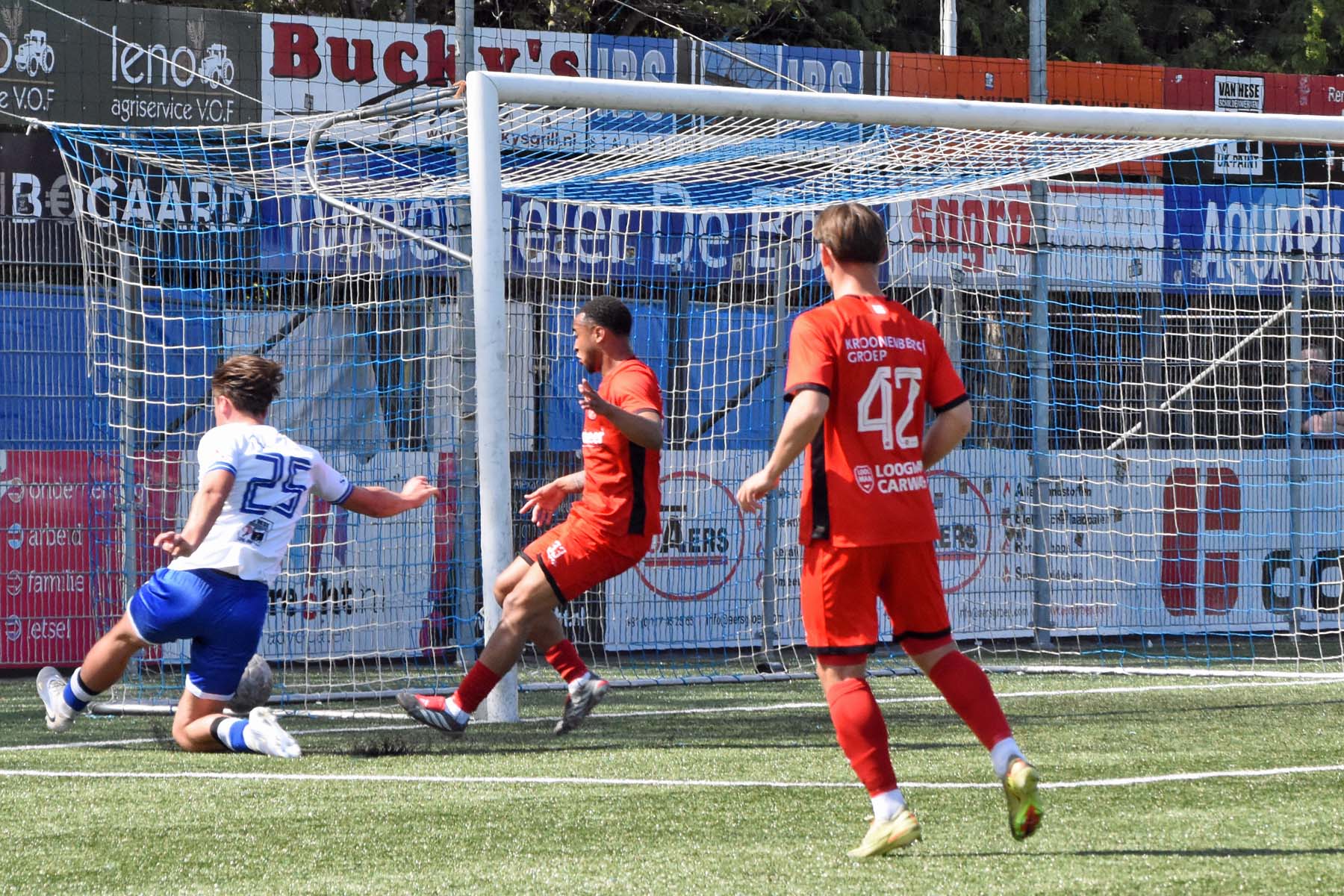 Het was verdediger Rousseau De Poorter die de ban brak. Na dertien minuten stoomde de Belgische back op langs de flank, combineerde met Kevin Hebbelinck en joeg de bal hard in het dak van het doel: 1-0. Een fraaie actie van een man die normaal gesproken aan de andere kant van de middenlijn zijn werk doet.
