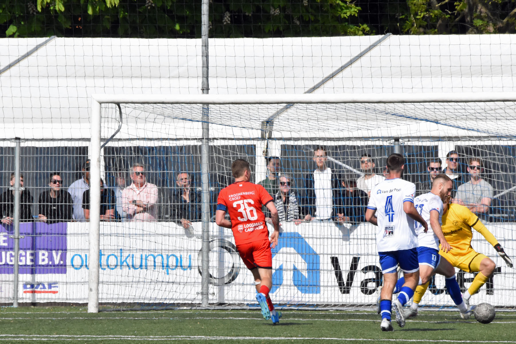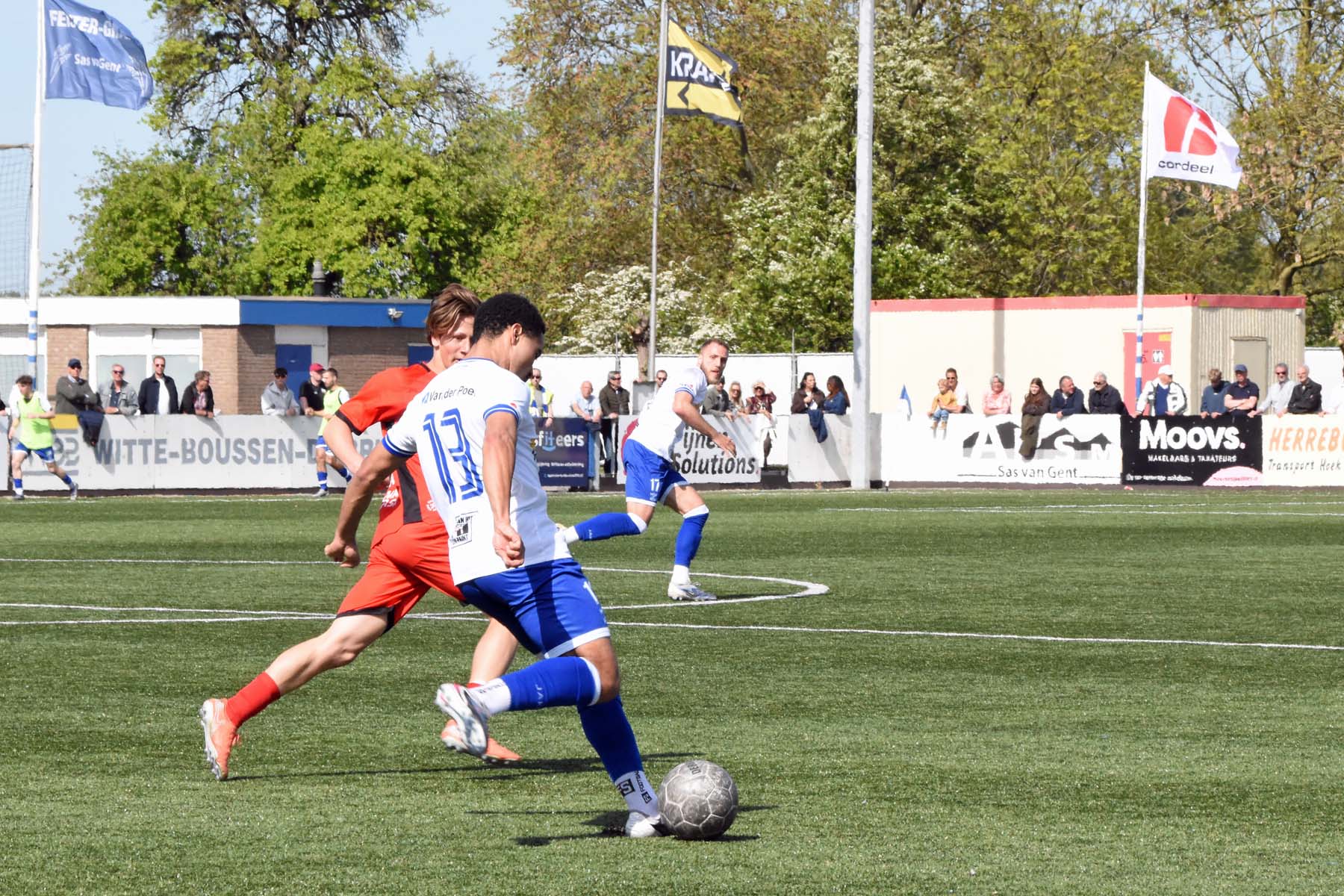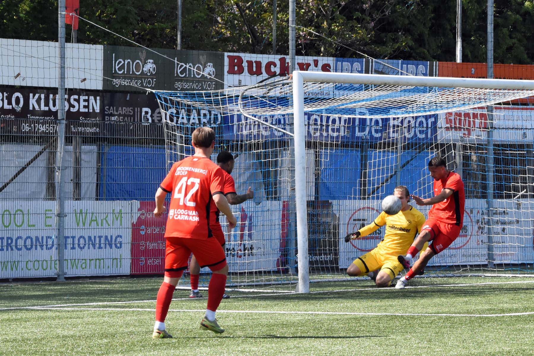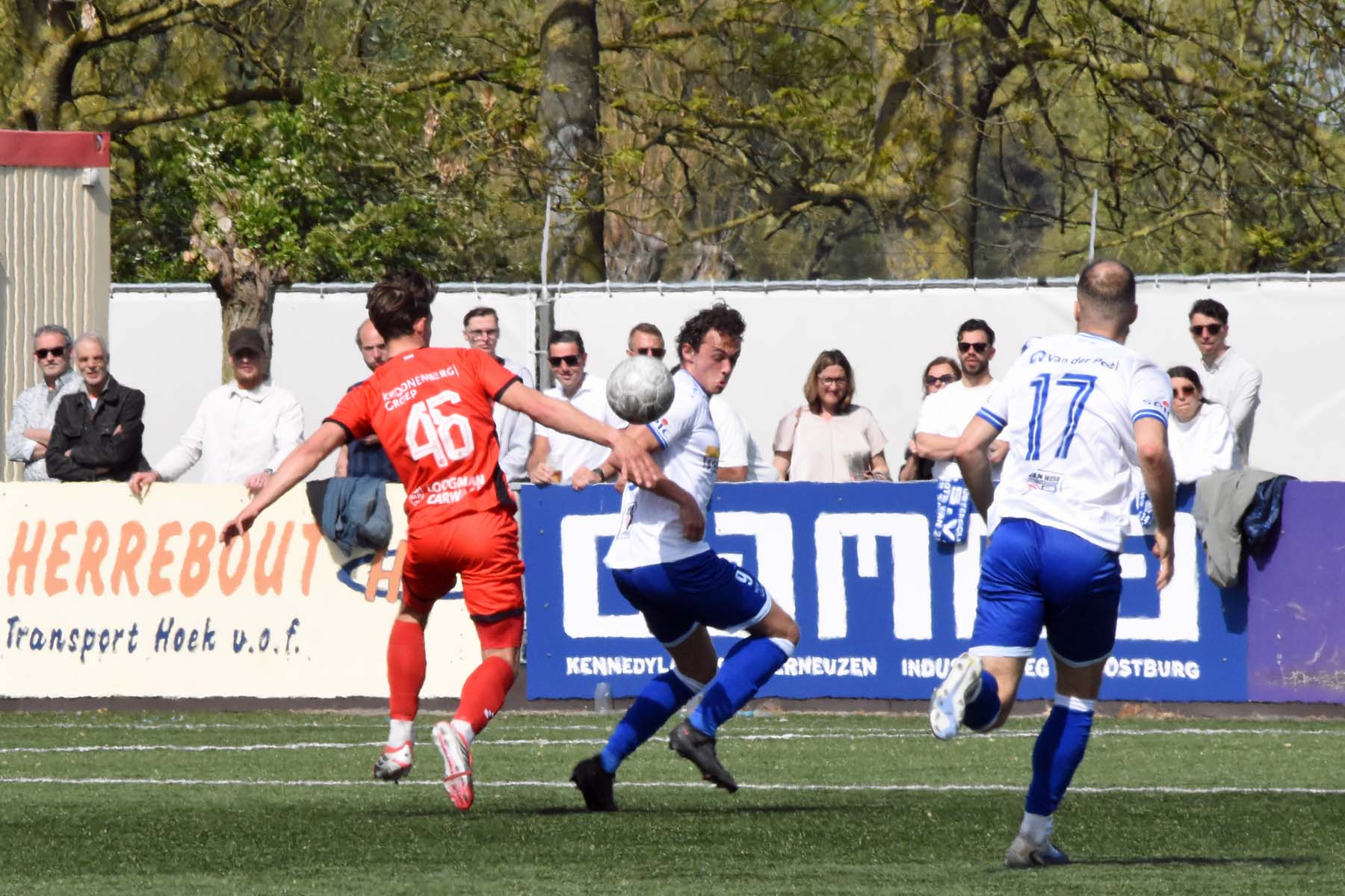 Het was verdediger Rousseau De Poorter die de ban brak. Na dertien minuten stoomde de Belgische back op langs de flank, combineerde met Kevin Hebbelinck en joeg de bal hard in het dak van het doel: 1-0. Een fraaie actie van een man die normaal gesproken aan de andere kant van de middenlijn zijn werk doet.