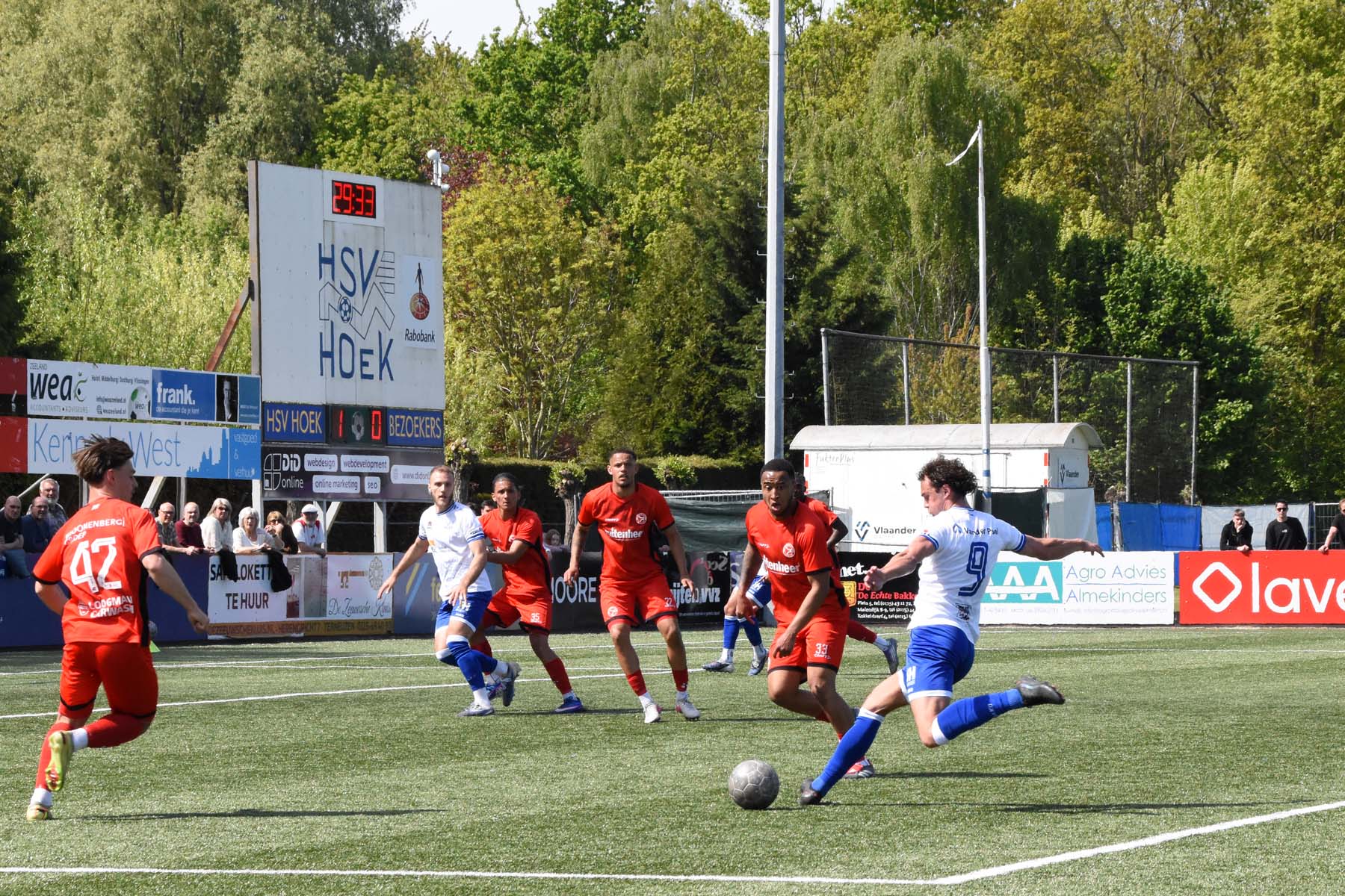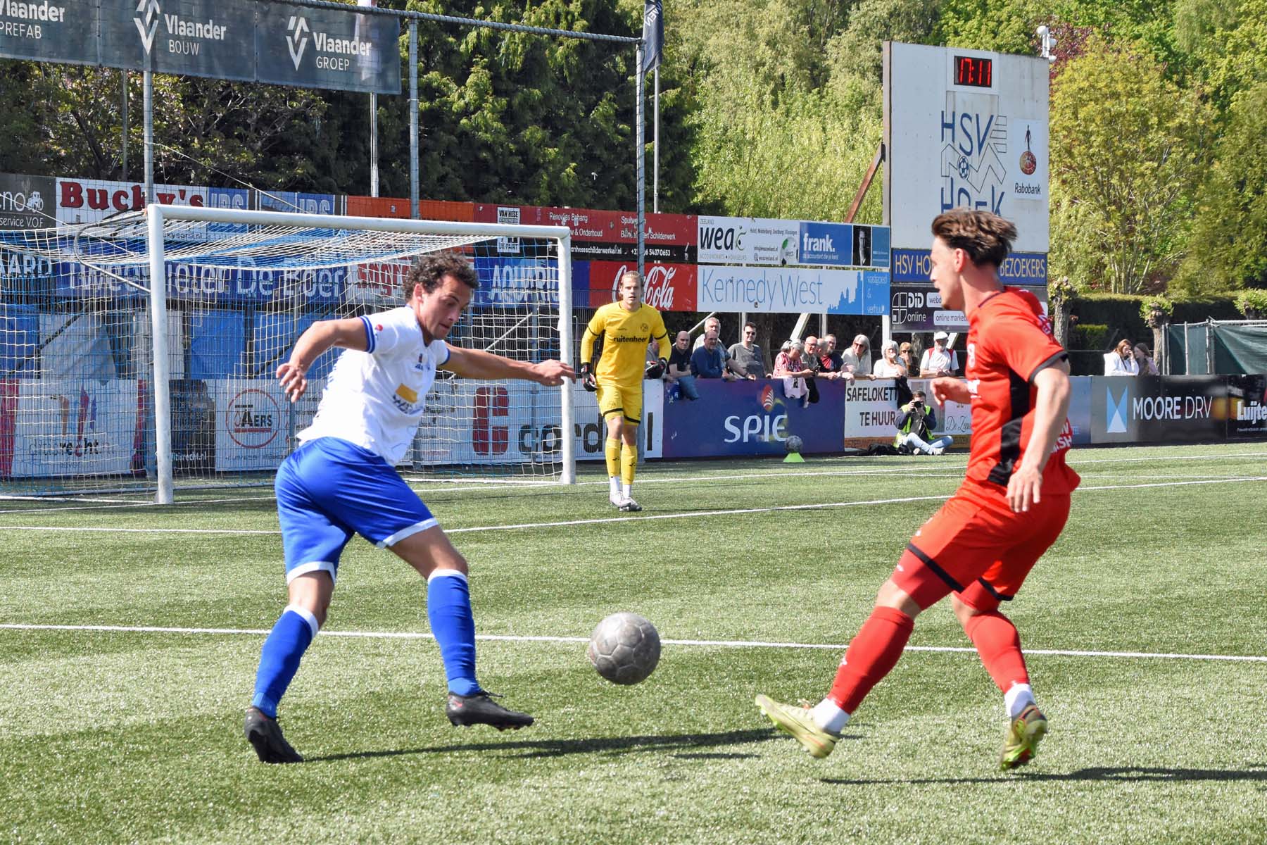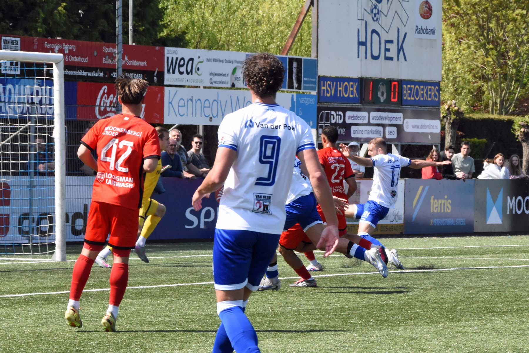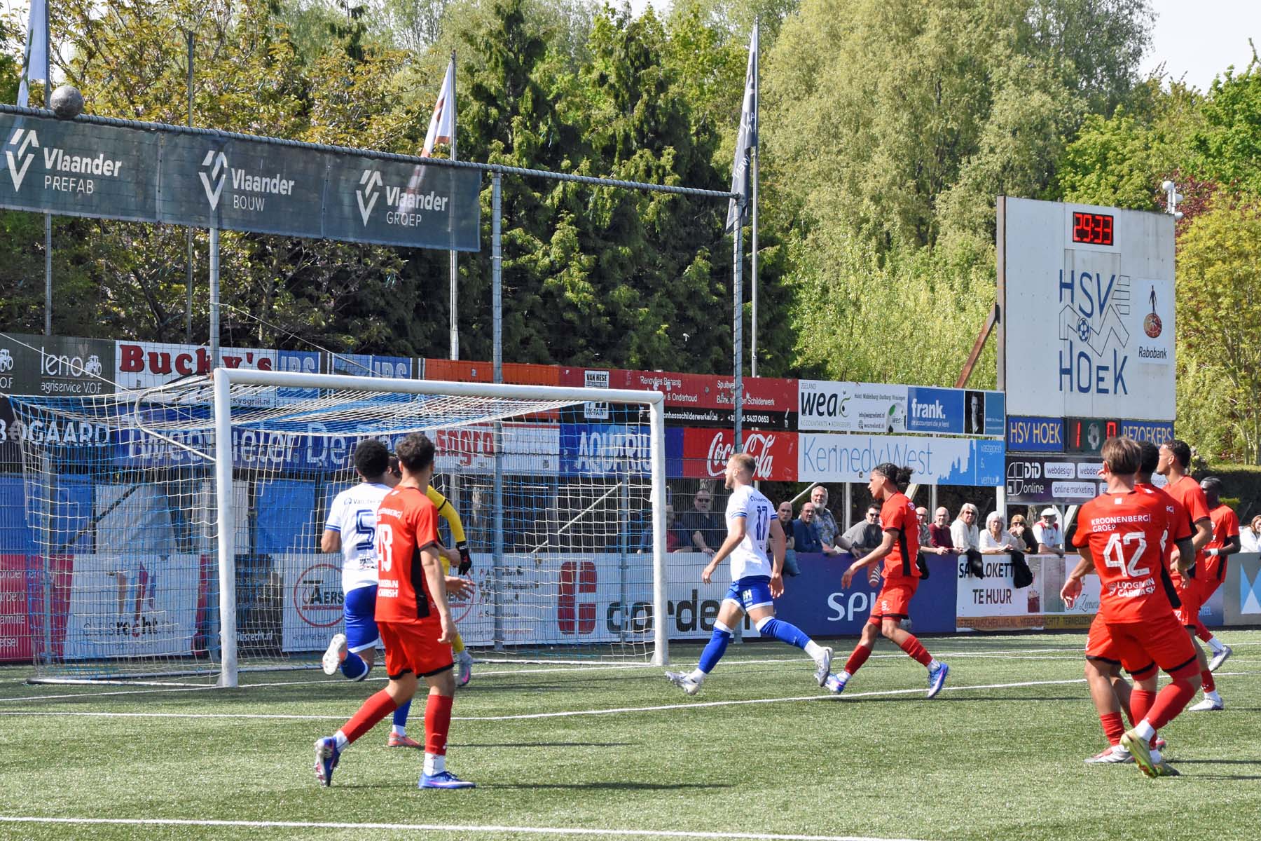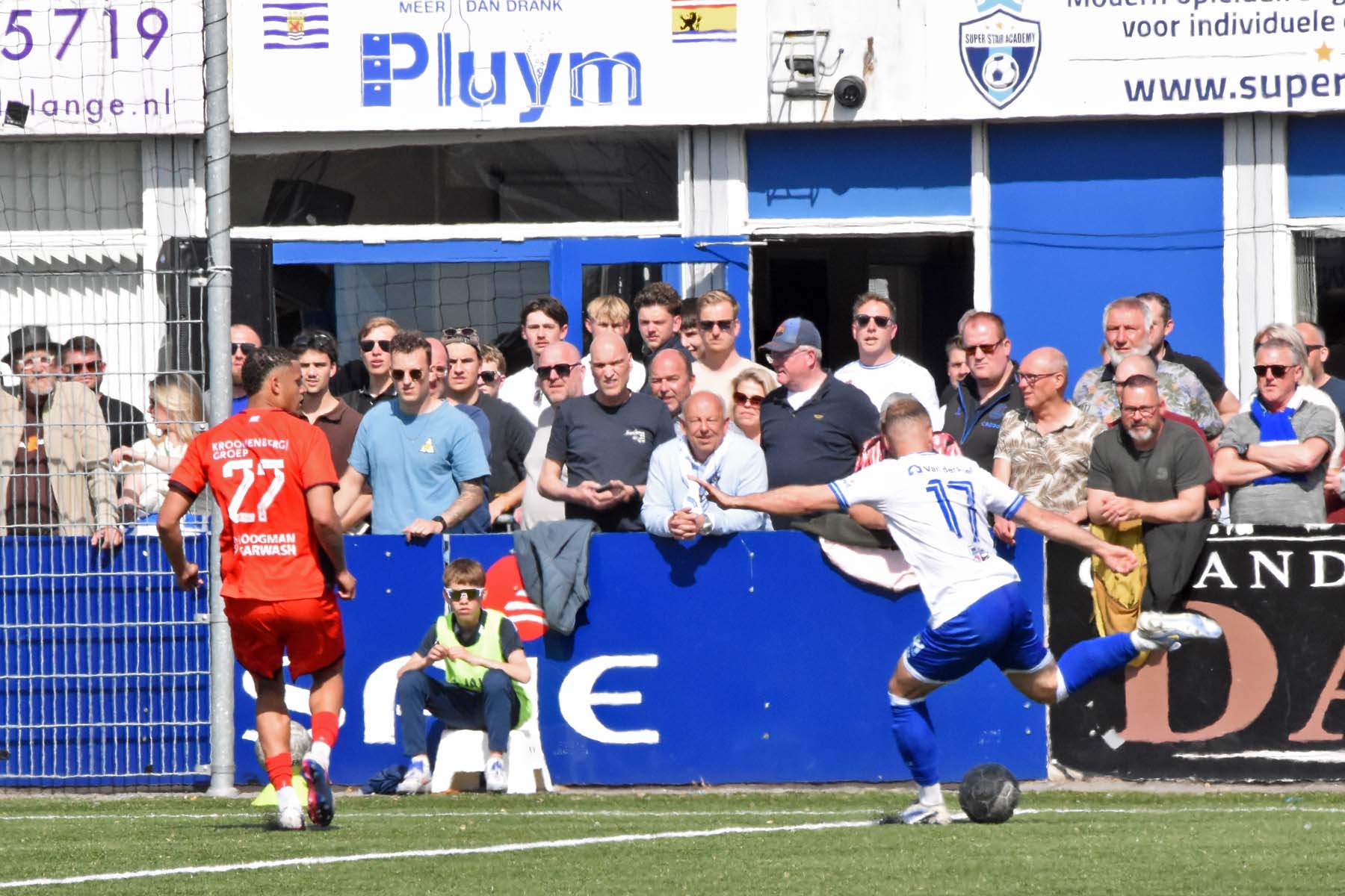 Daarna had Hoek het spel volledig in handen, maar de bezoekers lieten zich niet zomaar wegspelen. Jong Almere City voetbalde met vertrouwen en zocht regelmatig de aanval op, al bood de Zeeuwse defensie nauwelijks ruimte. Het bleef echter lang bij die ene treffer voorsprong, vooral omdat Hoek in de tweede helft de ene grote kans na de andere onbenut liet. De meest in het oog springende misser was voor Sylvio Hage, die zelf de aanval opzette, de bal terugkreeg van Din Sula en van dichtbij over het doel schoot.