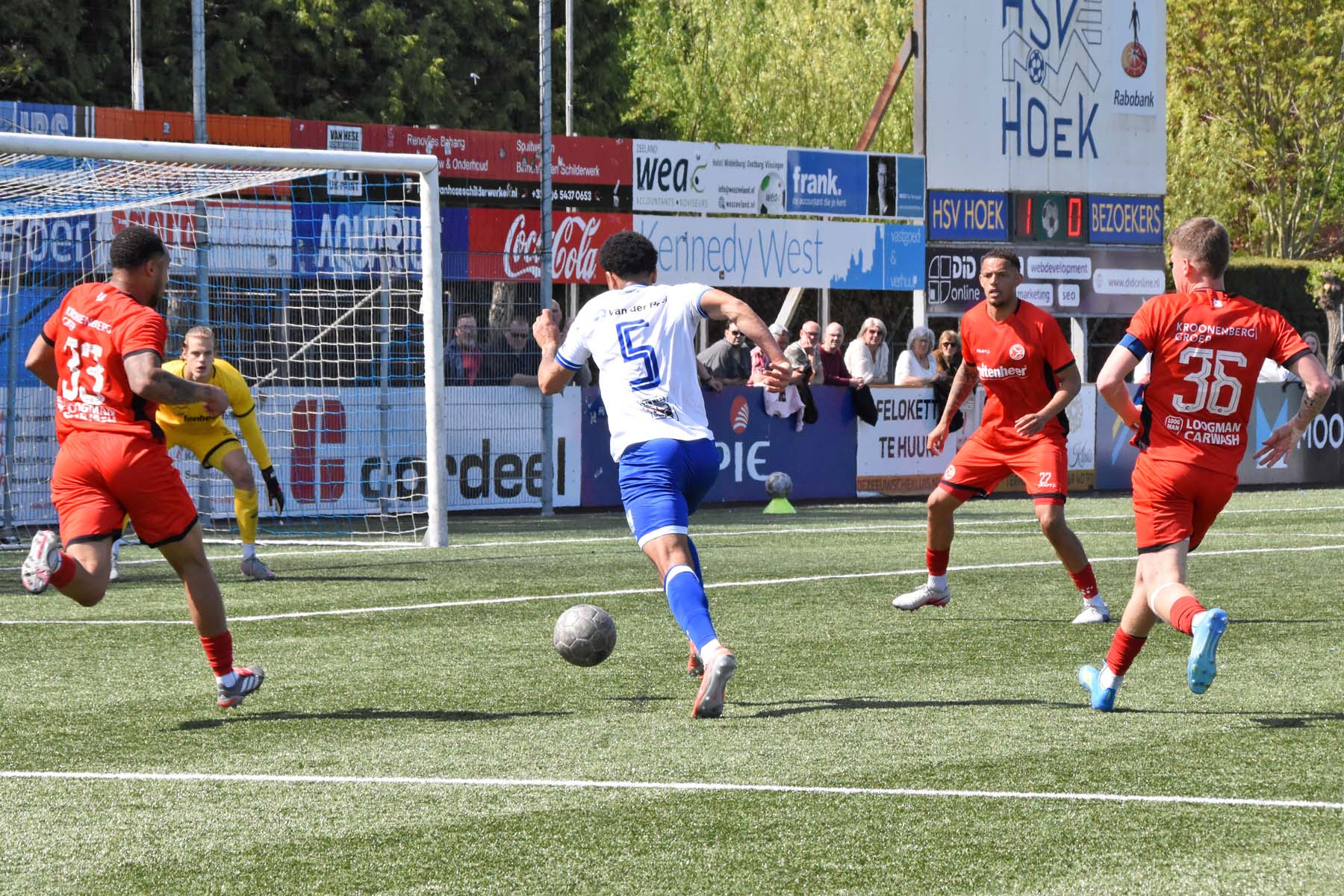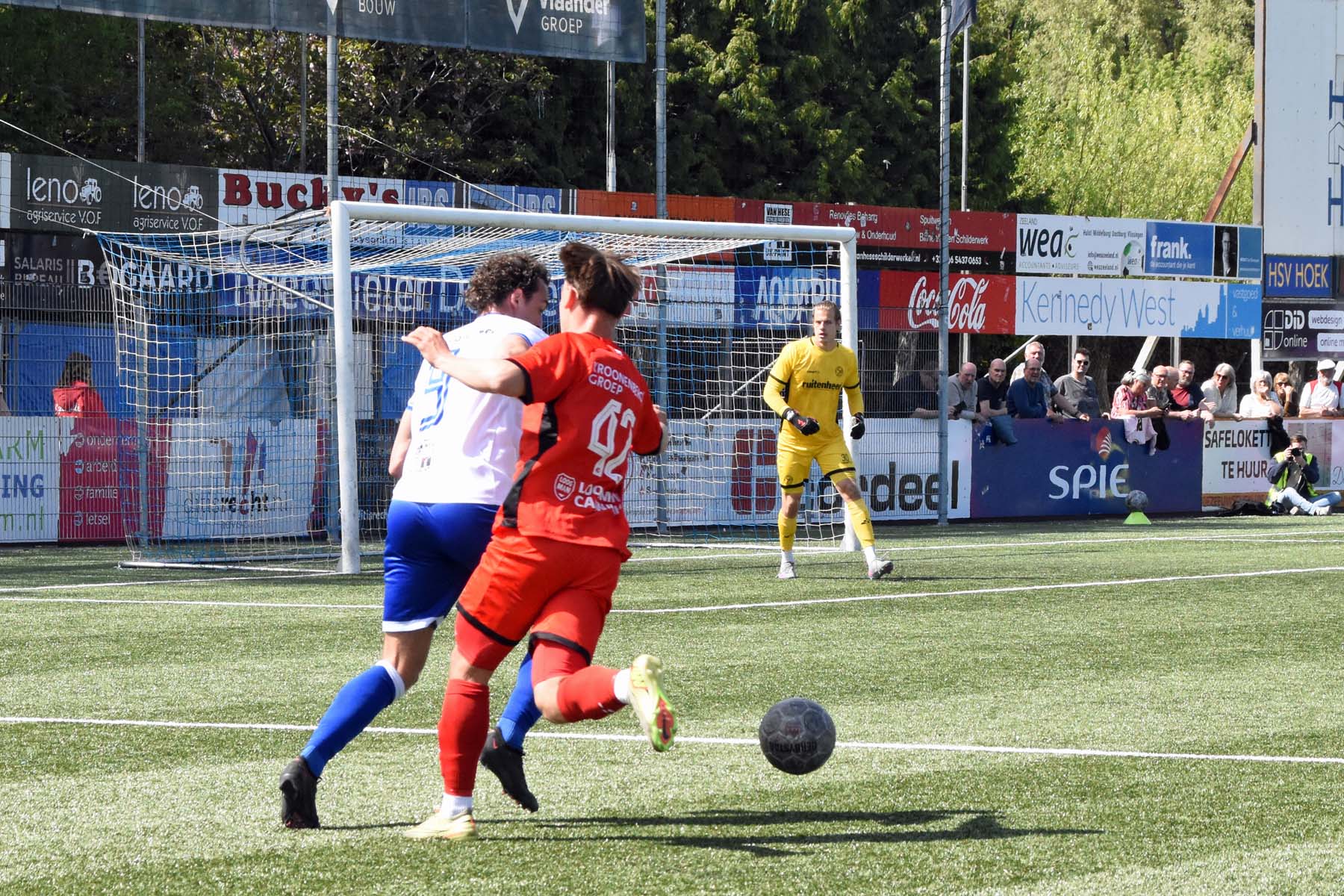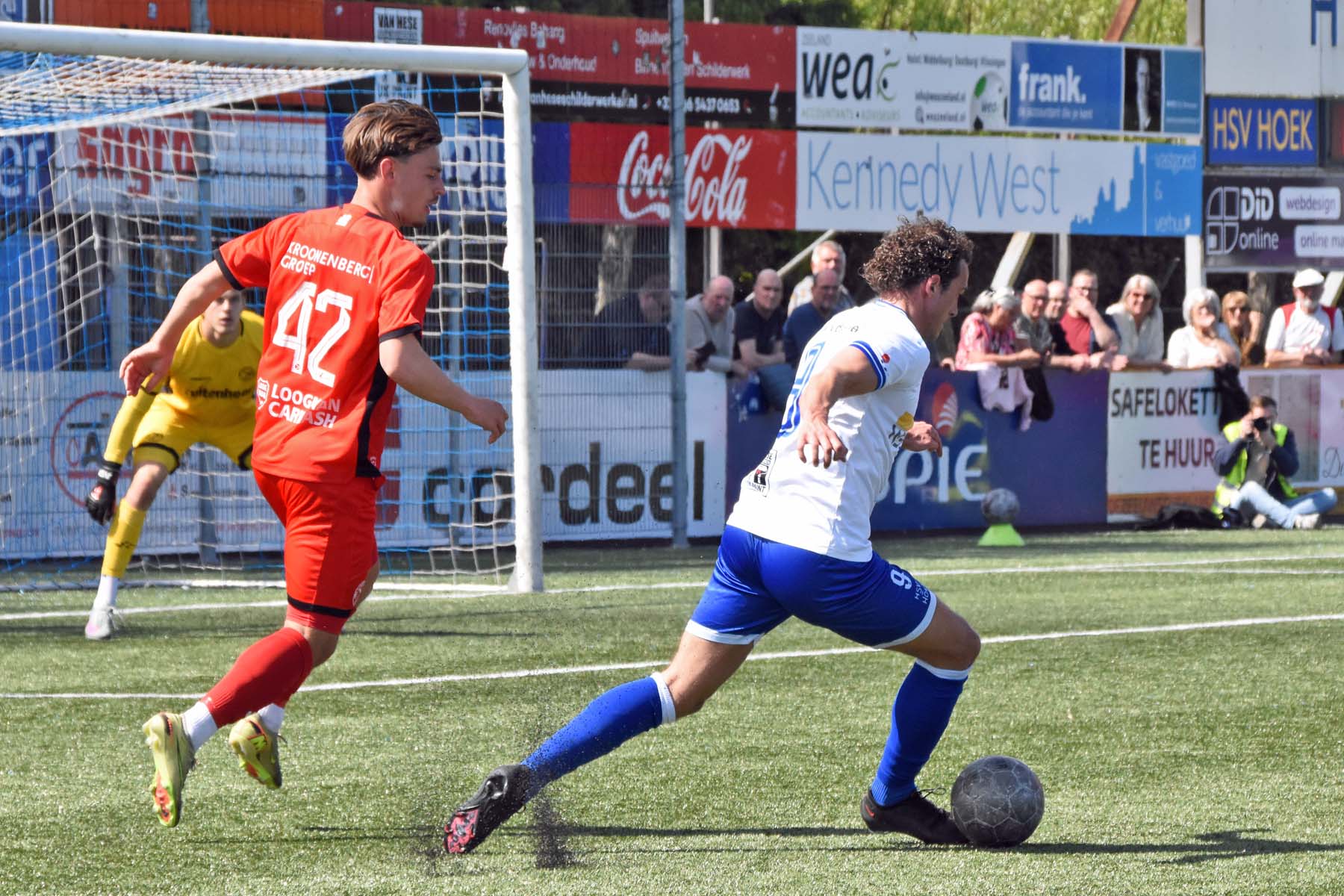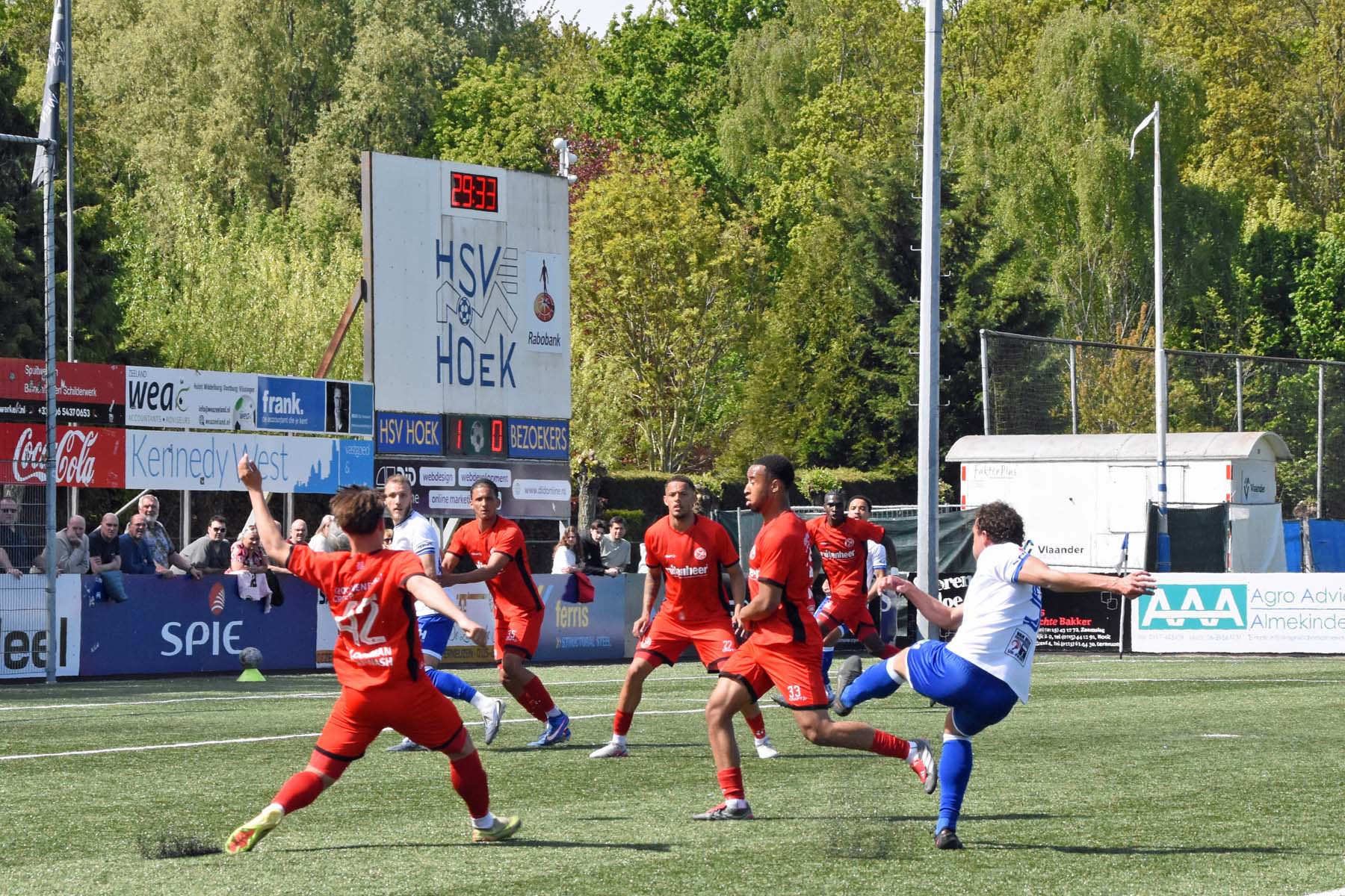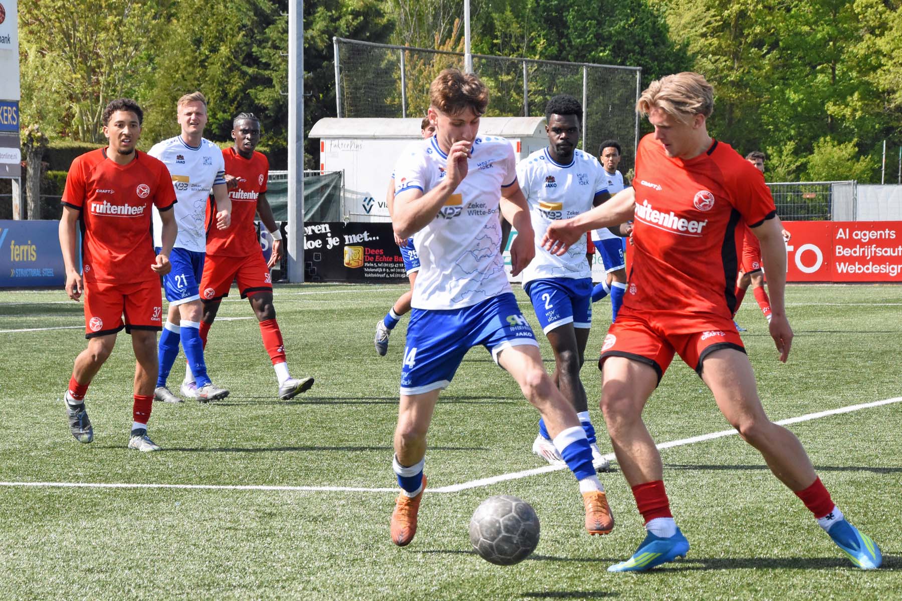 Daarna had Hoek het spel volledig in handen, maar de bezoekers lieten zich niet zomaar wegspelen. Jong Almere City voetbalde met vertrouwen en zocht regelmatig de aanval op, al bood de Zeeuwse defensie nauwelijks ruimte. Het bleef echter lang bij die ene treffer voorsprong, vooral omdat Hoek in de tweede helft de ene grote kans na de andere onbenut liet. De meest in het oog springende misser was voor Sylvio Hage, die zelf de aanval opzette, de bal terugkreeg van Din Sula en van dichtbij over het doel schoot.