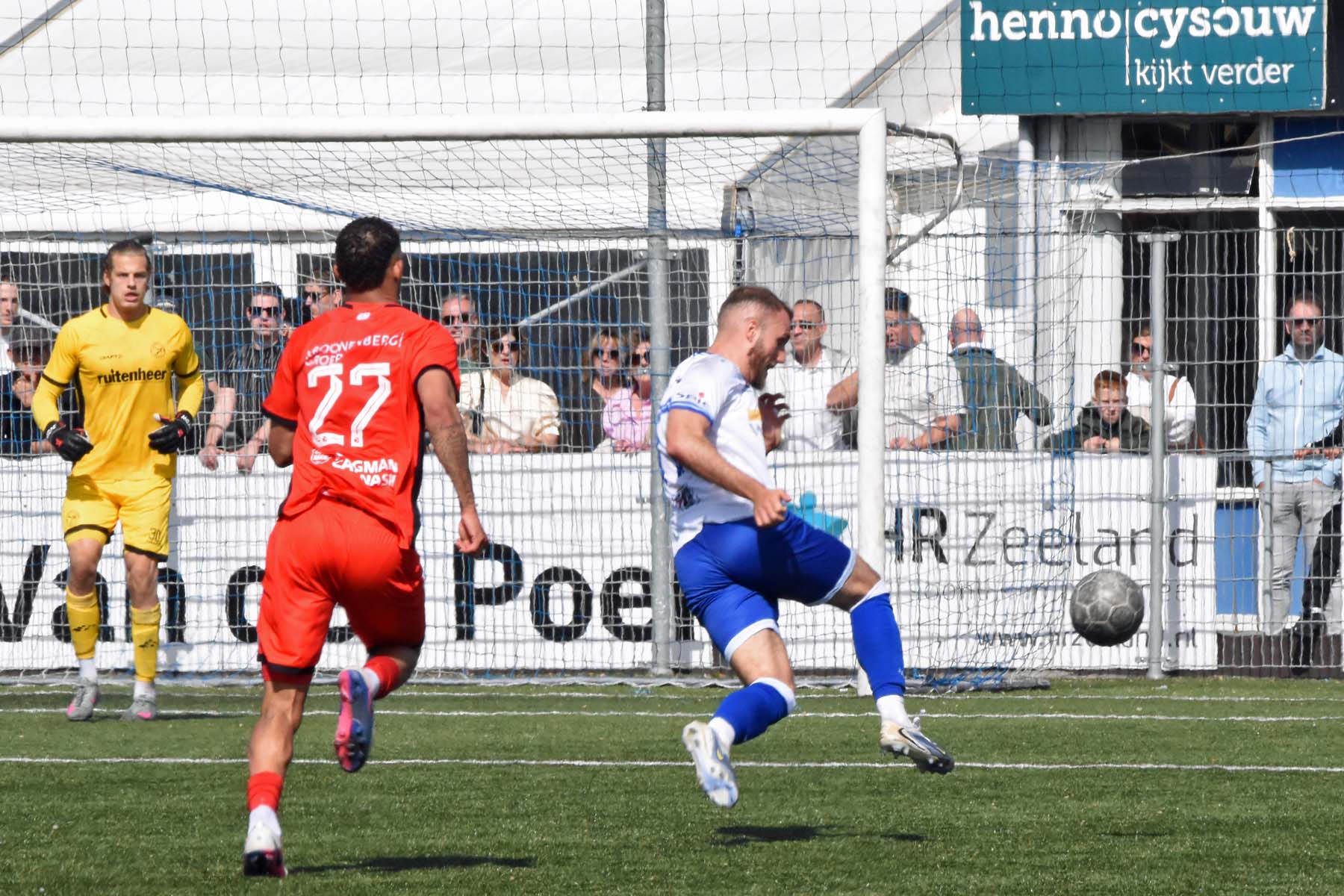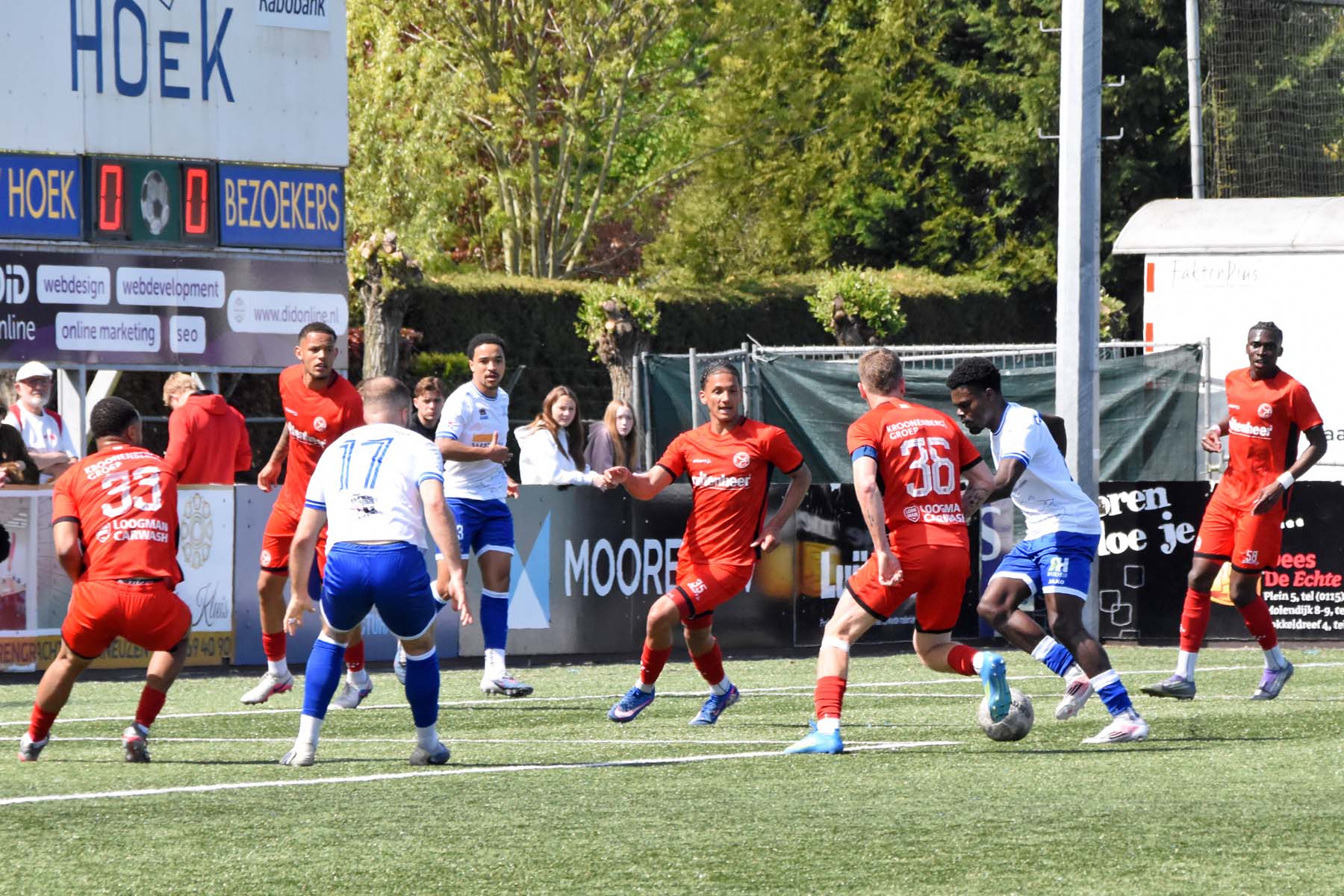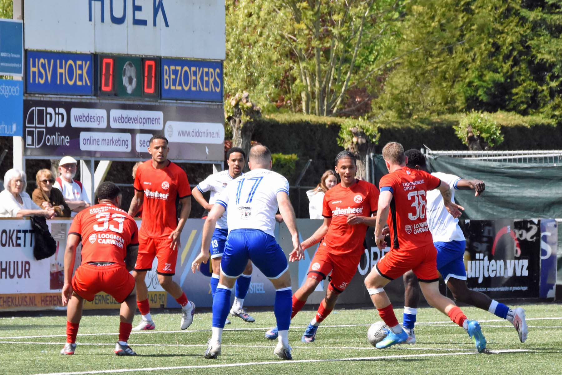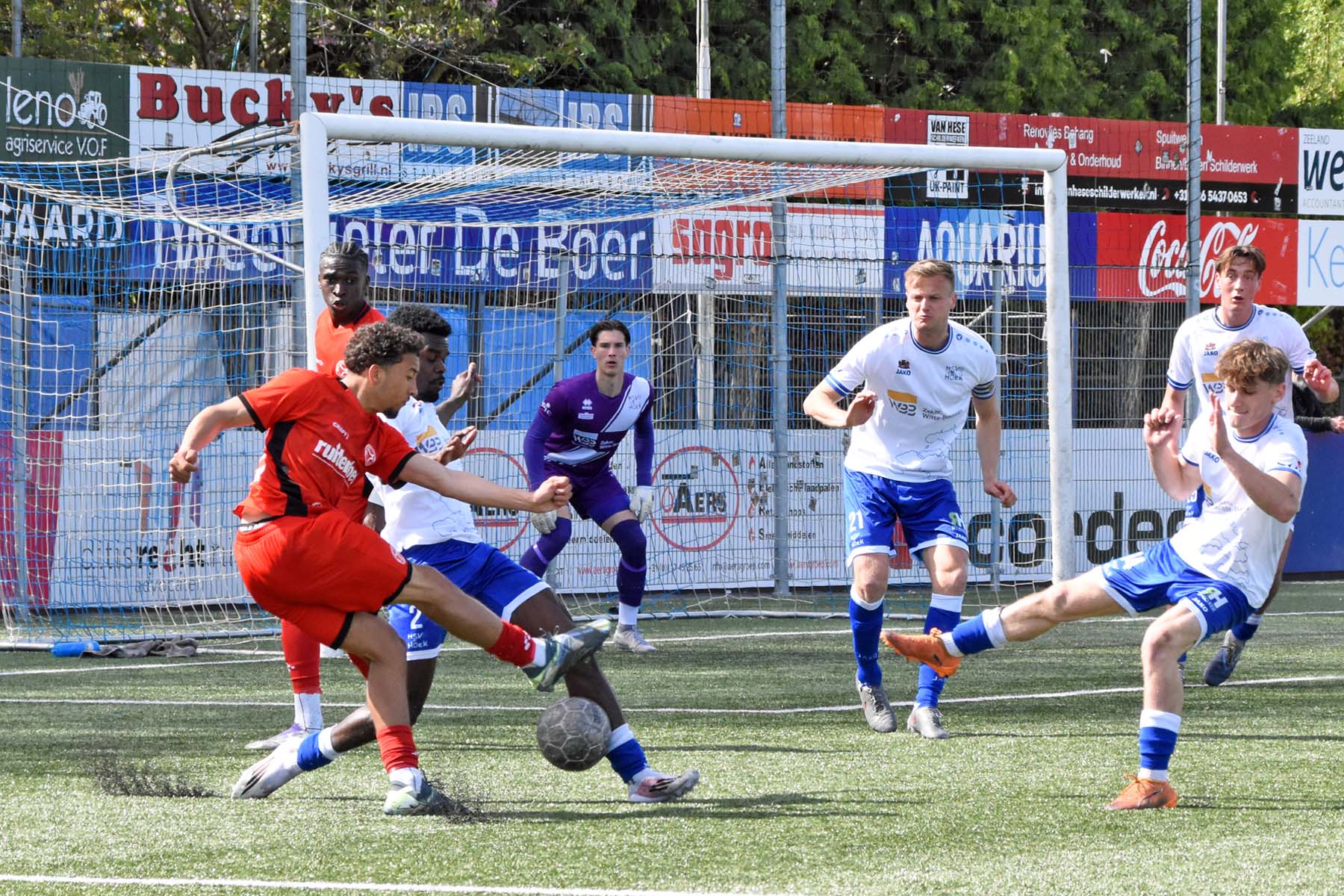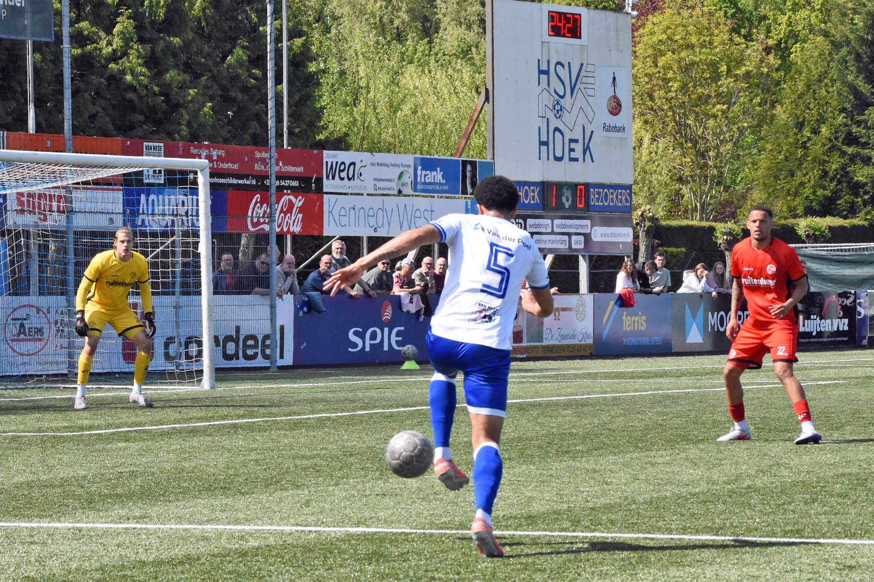 Daarna had Hoek het spel volledig in handen, maar de bezoekers lieten zich niet zomaar wegspelen. Jong Almere City voetbalde met vertrouwen en zocht regelmatig de aanval op, al bood de Zeeuwse defensie nauwelijks ruimte. Het bleef echter lang bij die ene treffer voorsprong, vooral omdat Hoek in de tweede helft de ene grote kans na de andere onbenut liet. De meest in het oog springende misser was voor Sylvio Hage, die zelf de aanval opzette, de bal terugkreeg van Din Sula en van dichtbij over het doel schoot.