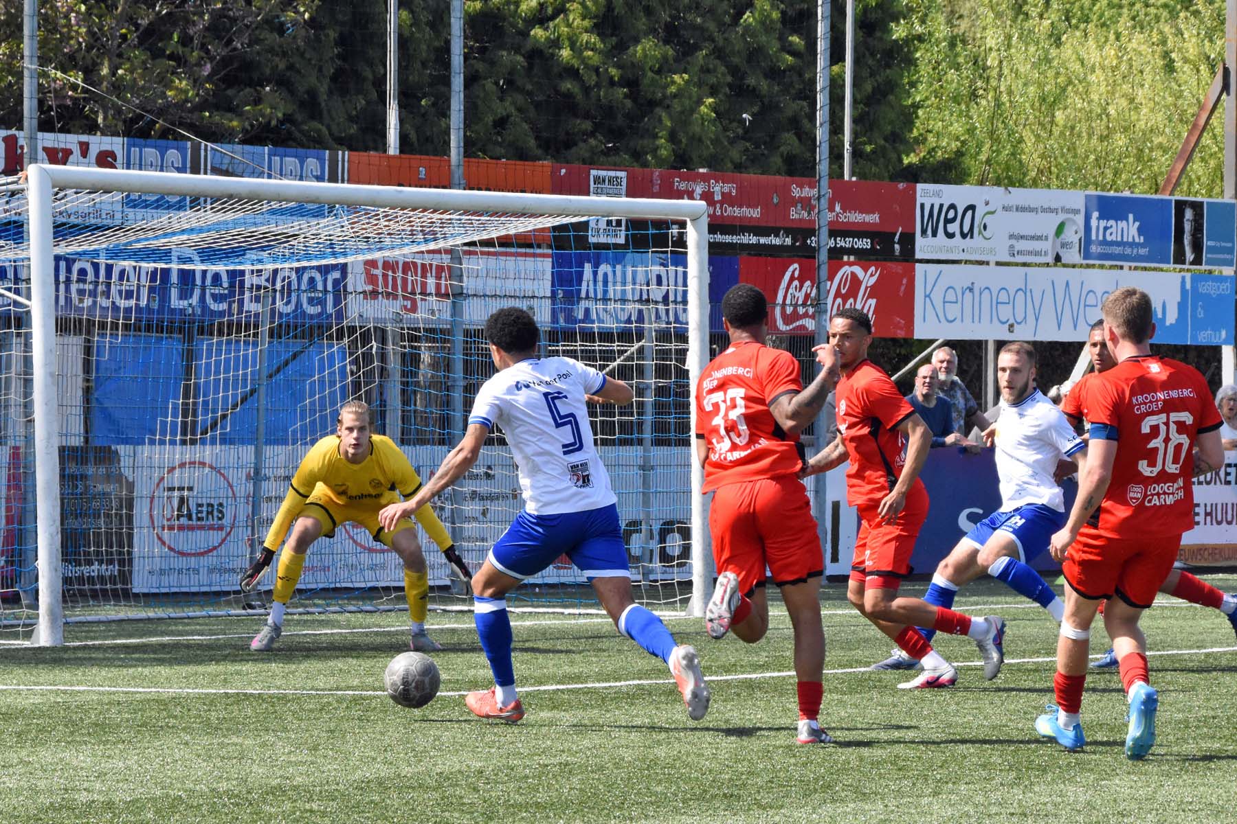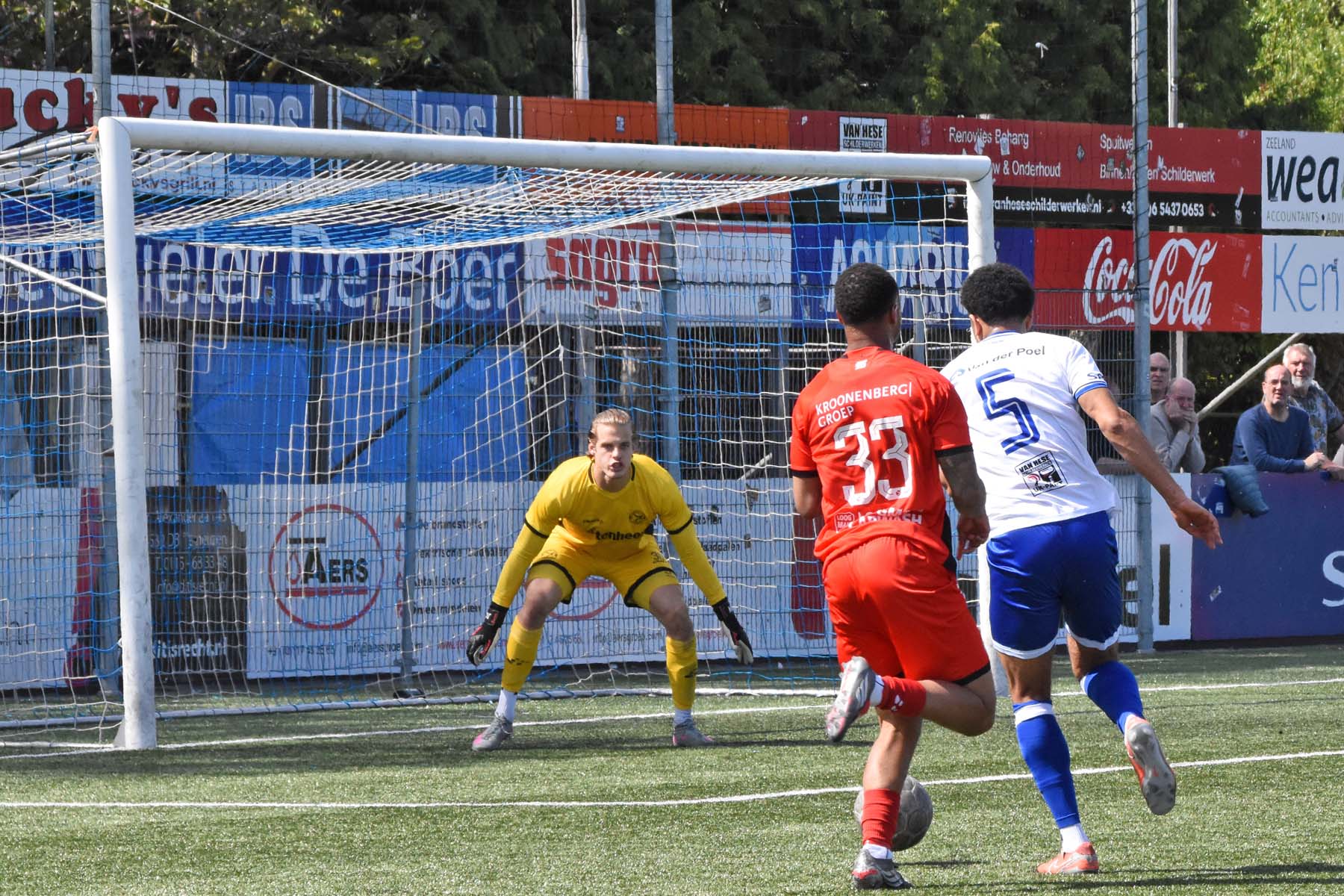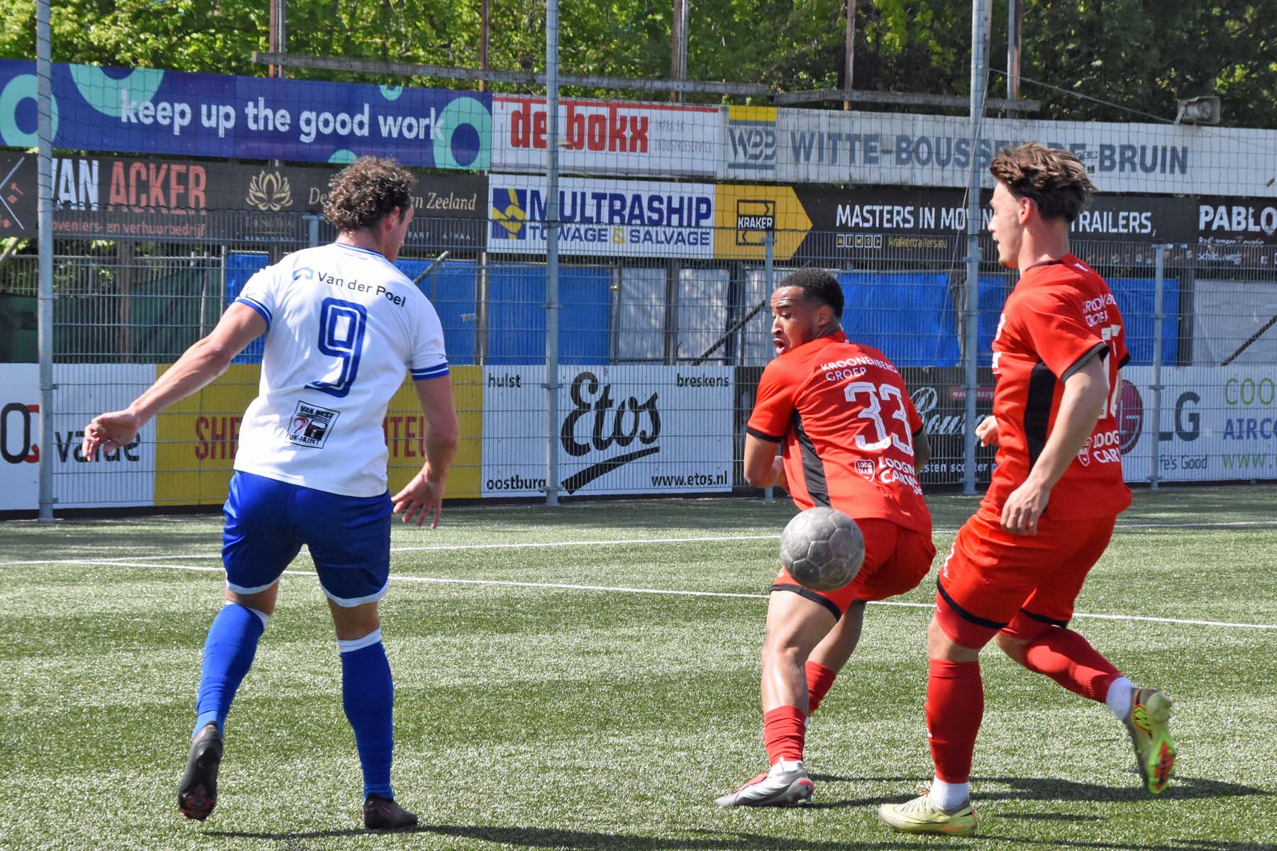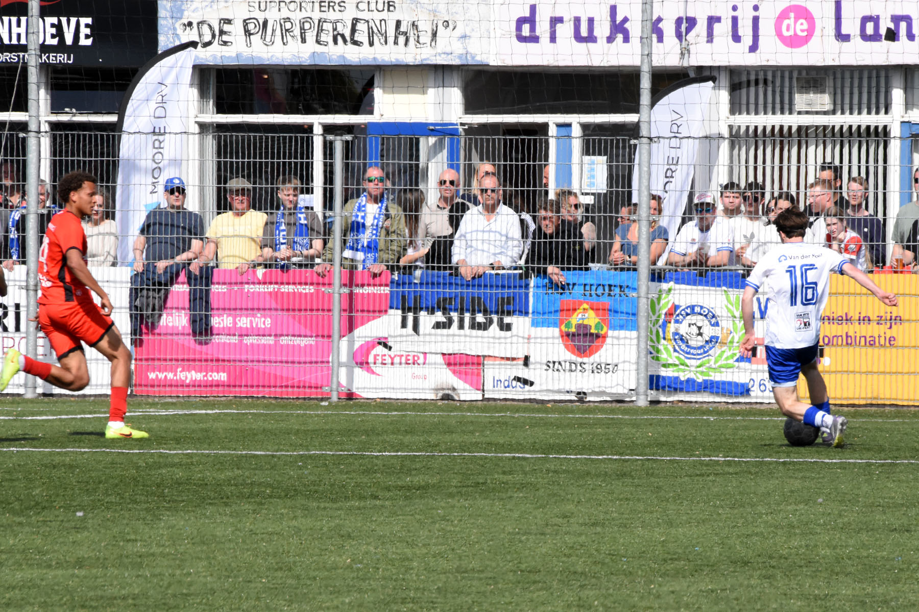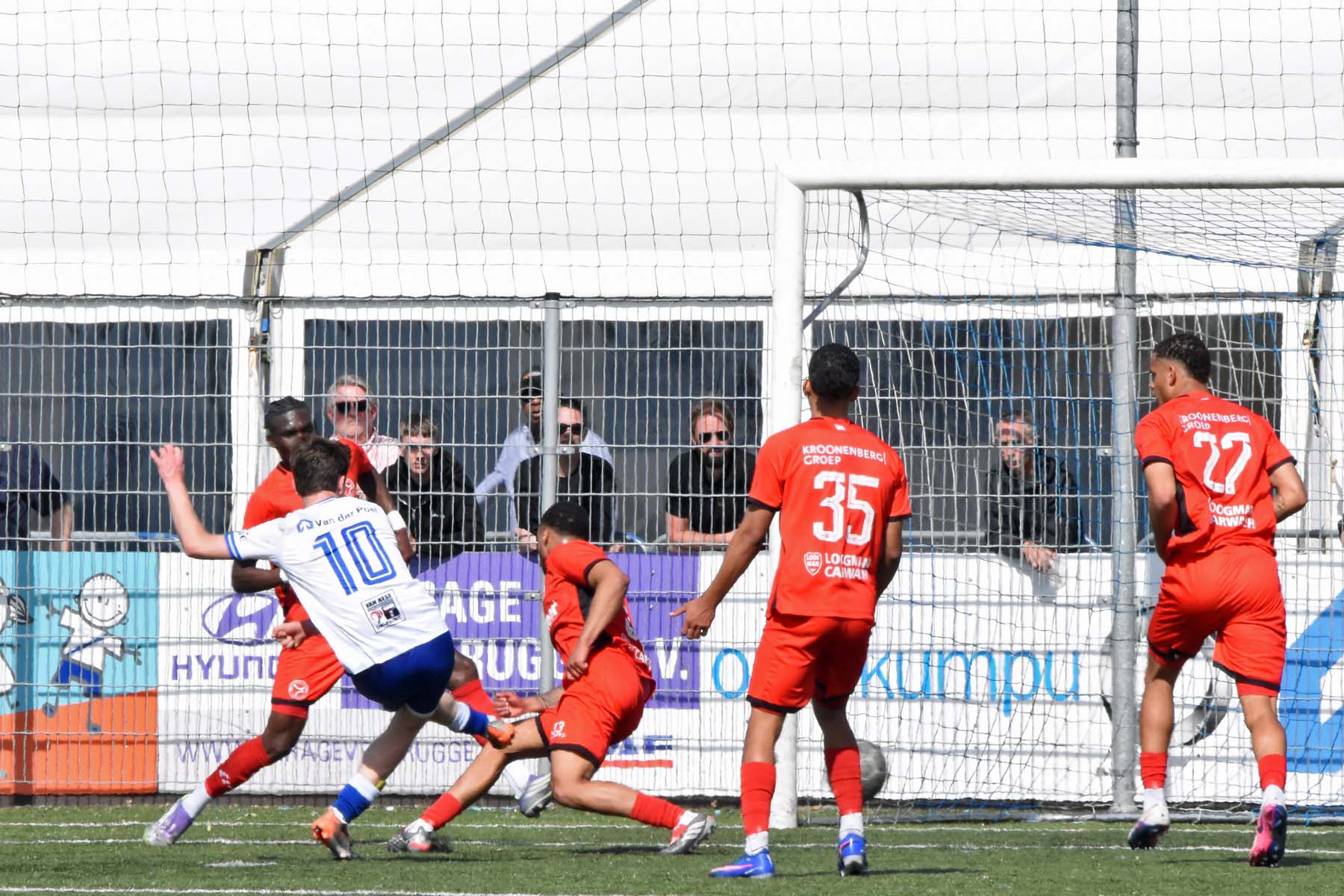 Daarna had Hoek het spel volledig in handen, maar de bezoekers lieten zich niet zomaar wegspelen. Jong Almere City voetbalde met vertrouwen en zocht regelmatig de aanval op, al bood de Zeeuwse defensie nauwelijks ruimte. Het bleef echter lang bij die ene treffer voorsprong, vooral omdat Hoek in de tweede helft de ene grote kans na de andere onbenut liet. De meest in het oog springende misser was voor Sylvio Hage, die zelf de aanval opzette, de bal terugkreeg van Din Sula en van dichtbij over het doel schoot.