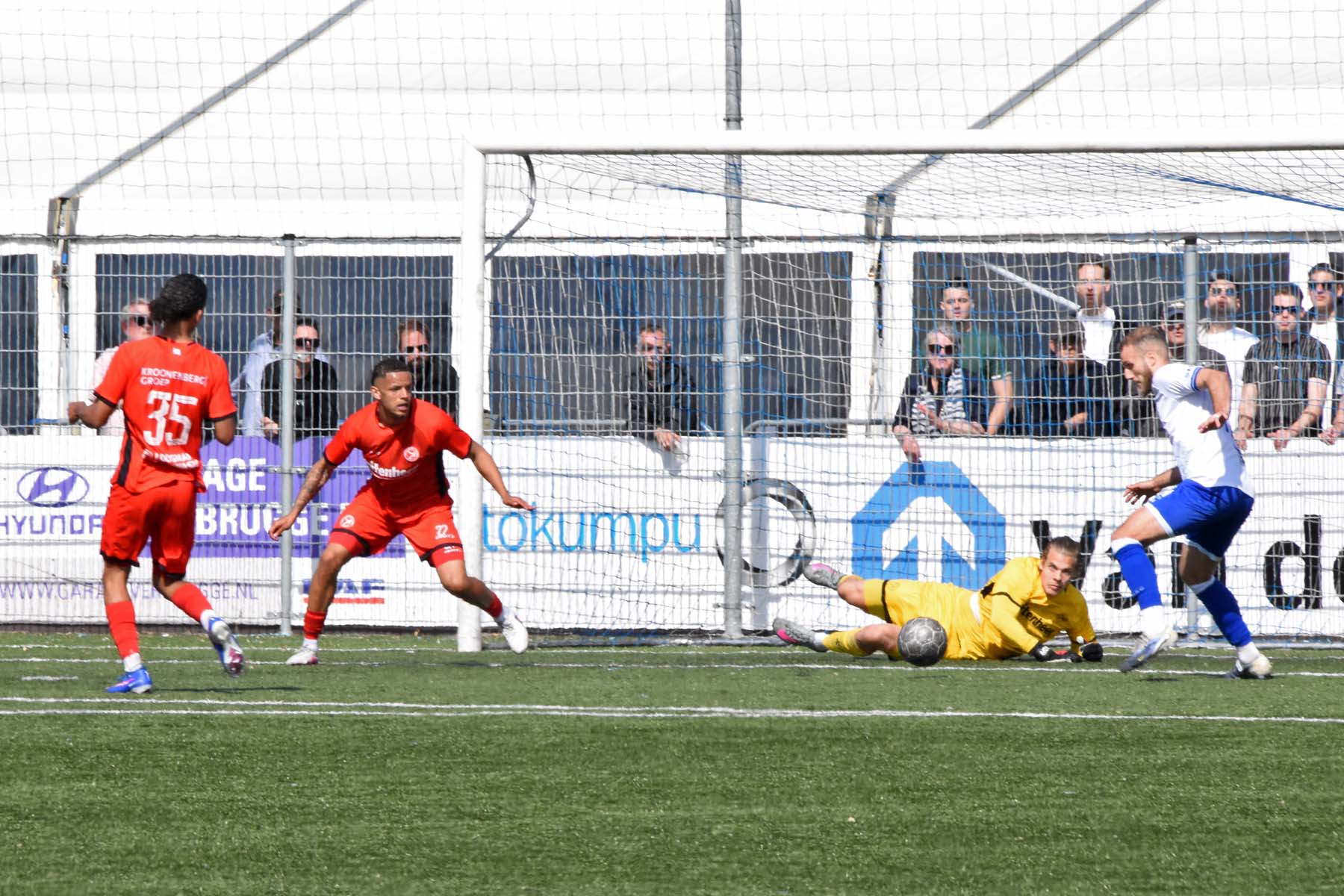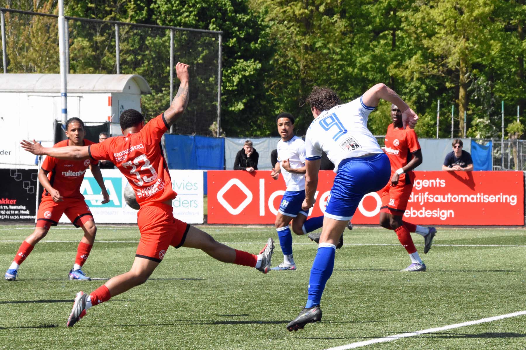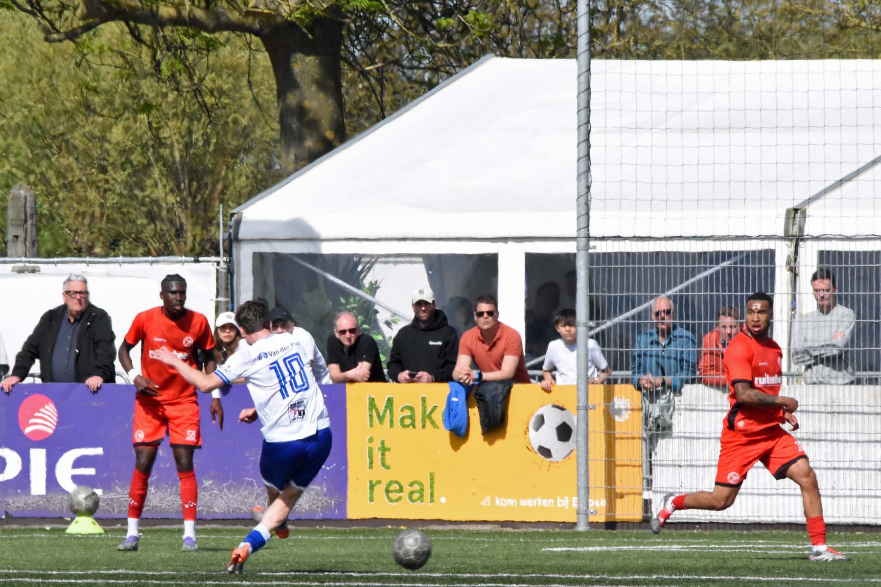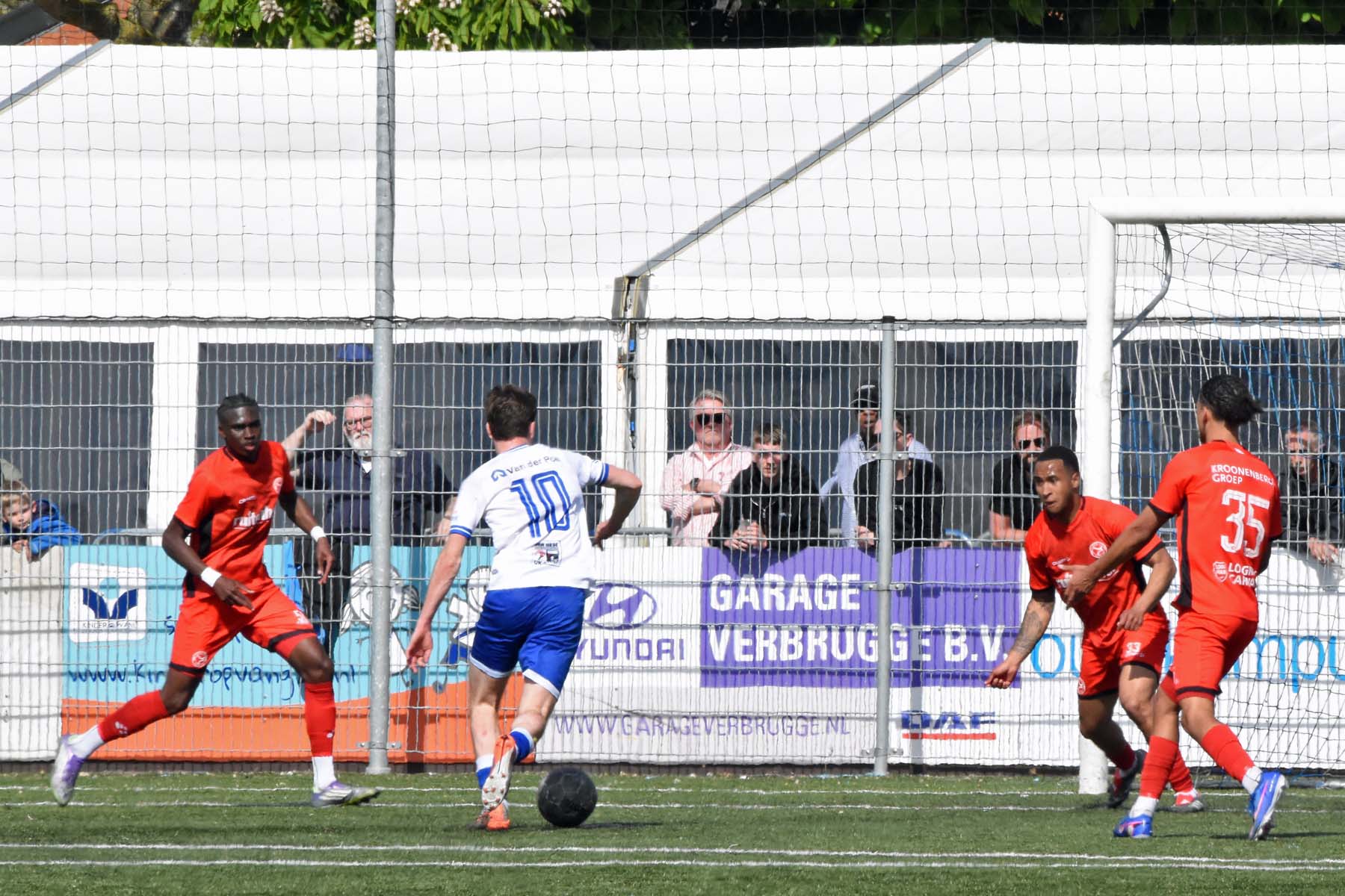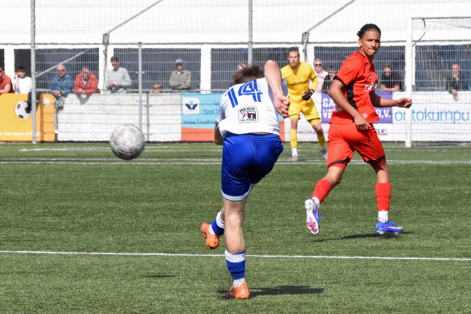 Daarna had Hoek het spel volledig in handen, maar de bezoekers lieten zich niet zomaar wegspelen. Jong Almere City voetbalde met vertrouwen en zocht regelmatig de aanval op, al bood de Zeeuwse defensie nauwelijks ruimte. Het bleef echter lang bij die ene treffer voorsprong, vooral omdat Hoek in de tweede helft de ene grote kans na de andere onbenut liet. De meest in het oog springende misser was voor Sylvio Hage, die zelf de aanval opzette, de bal terugkreeg van Din Sula en van dichtbij over het doel schoot.