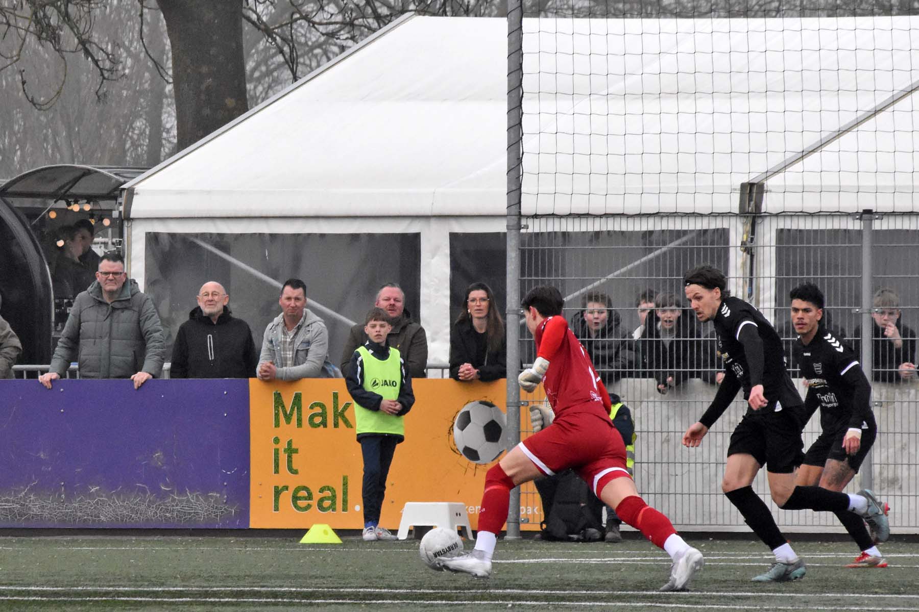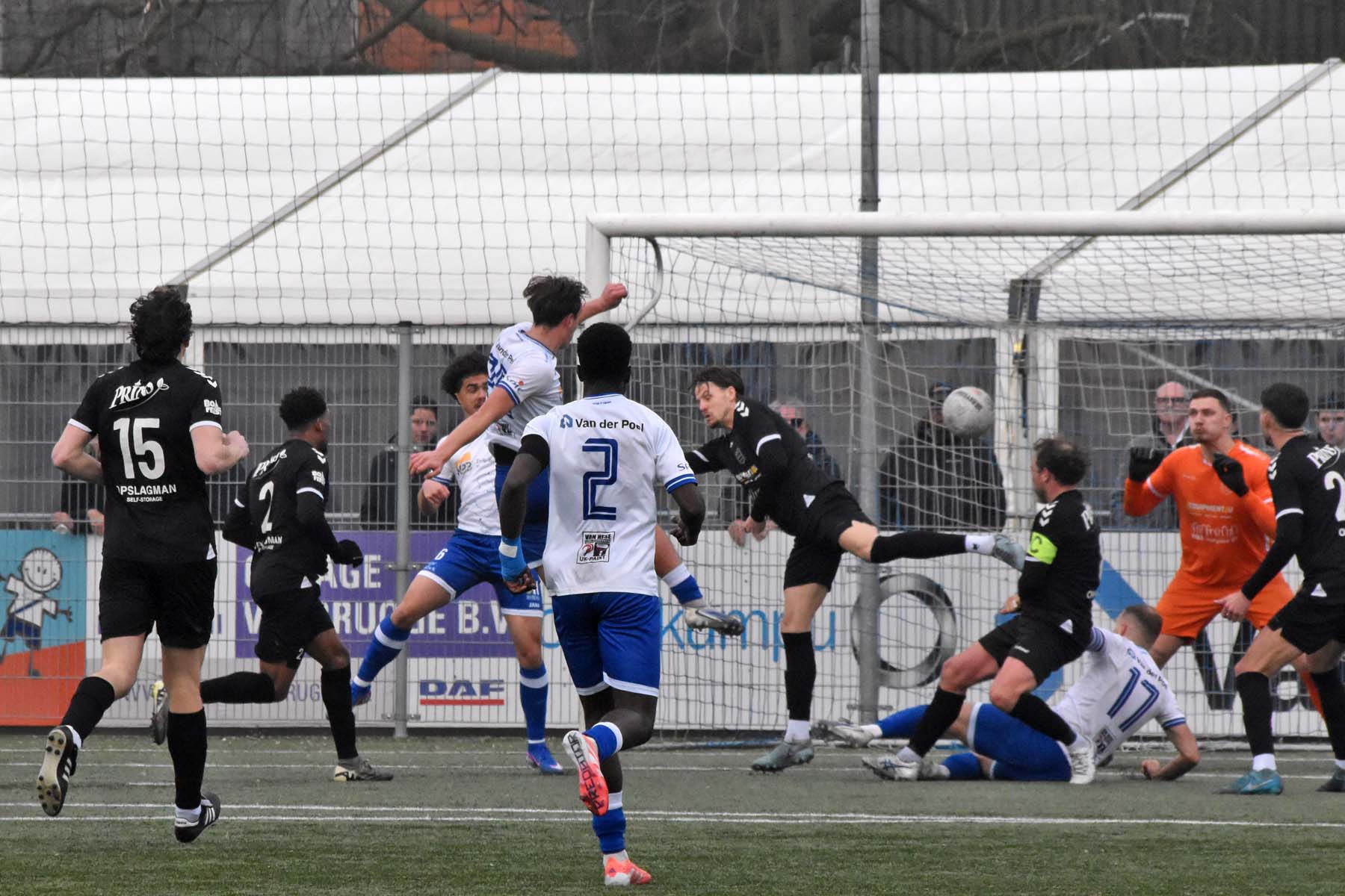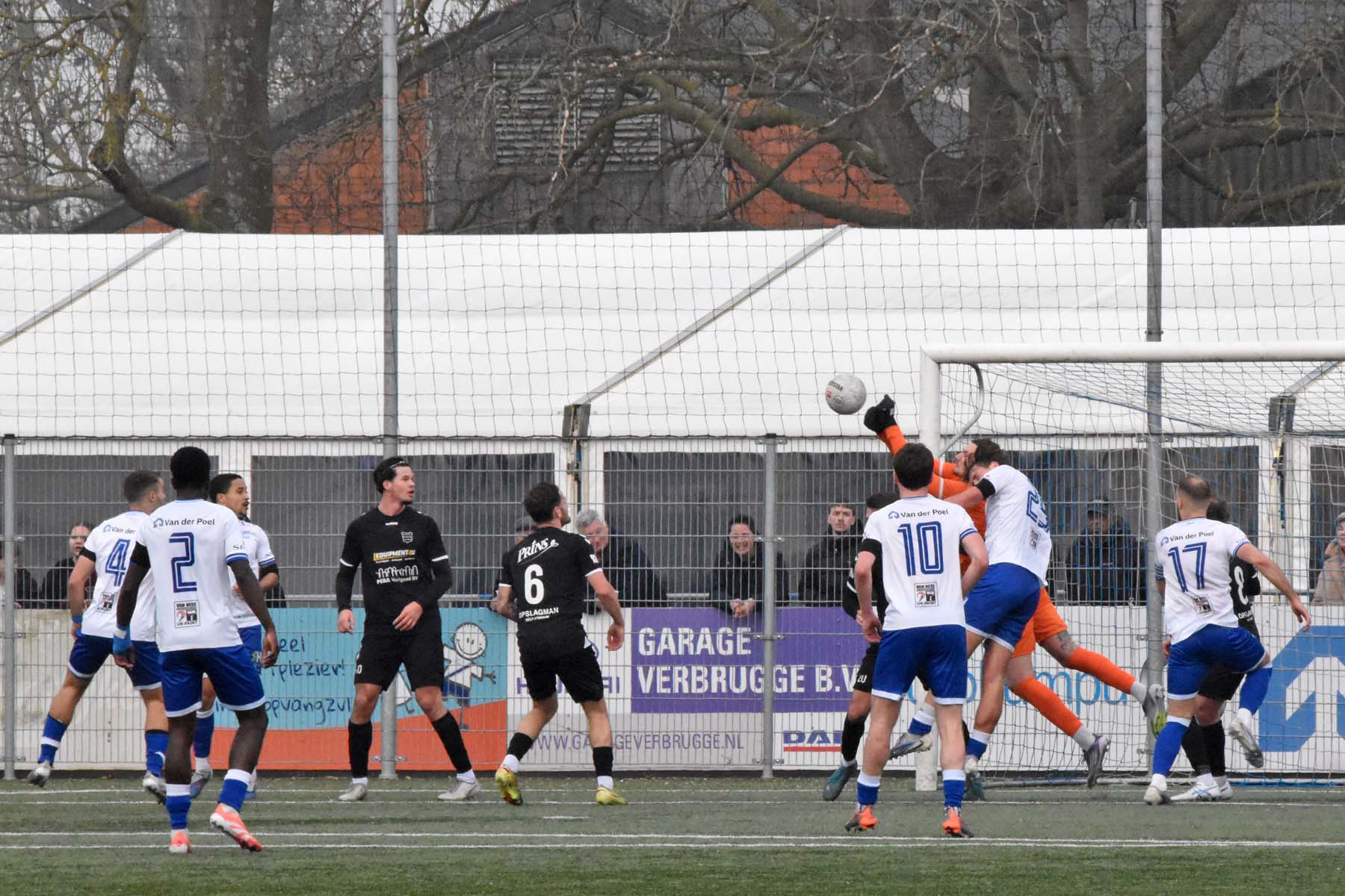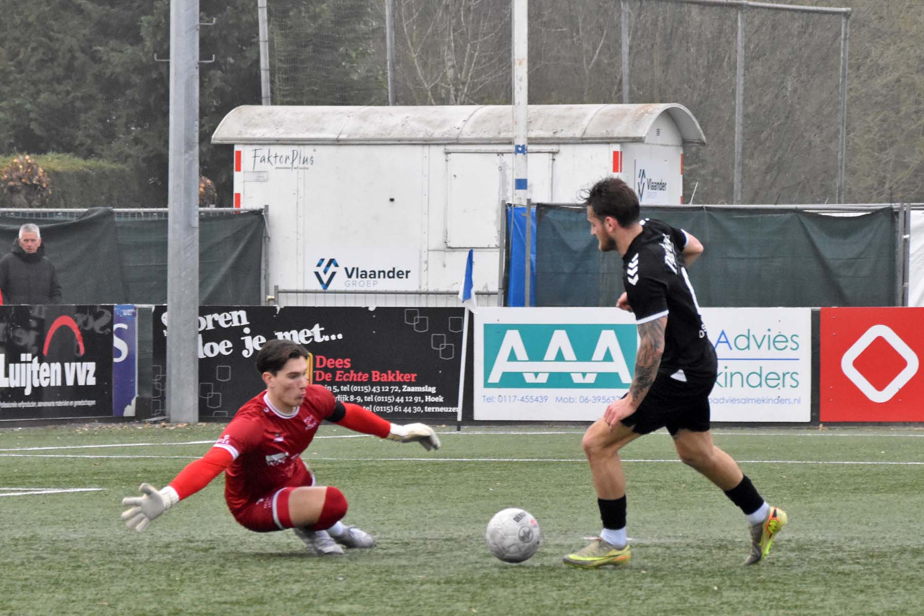 Uit het niets viel rond de twintigste minuut de 0-1. GVVV ontsnapte via een counter en Arwin van Soest dwong Finn Murre tot een knappe redding. Bij de daaropvolgende hoekschop ging het alsnog mis. Murre bokste de bal bij de eerste paal ongelukkig tegen Justin Spies aan, waarna de bal het doel in rolde.