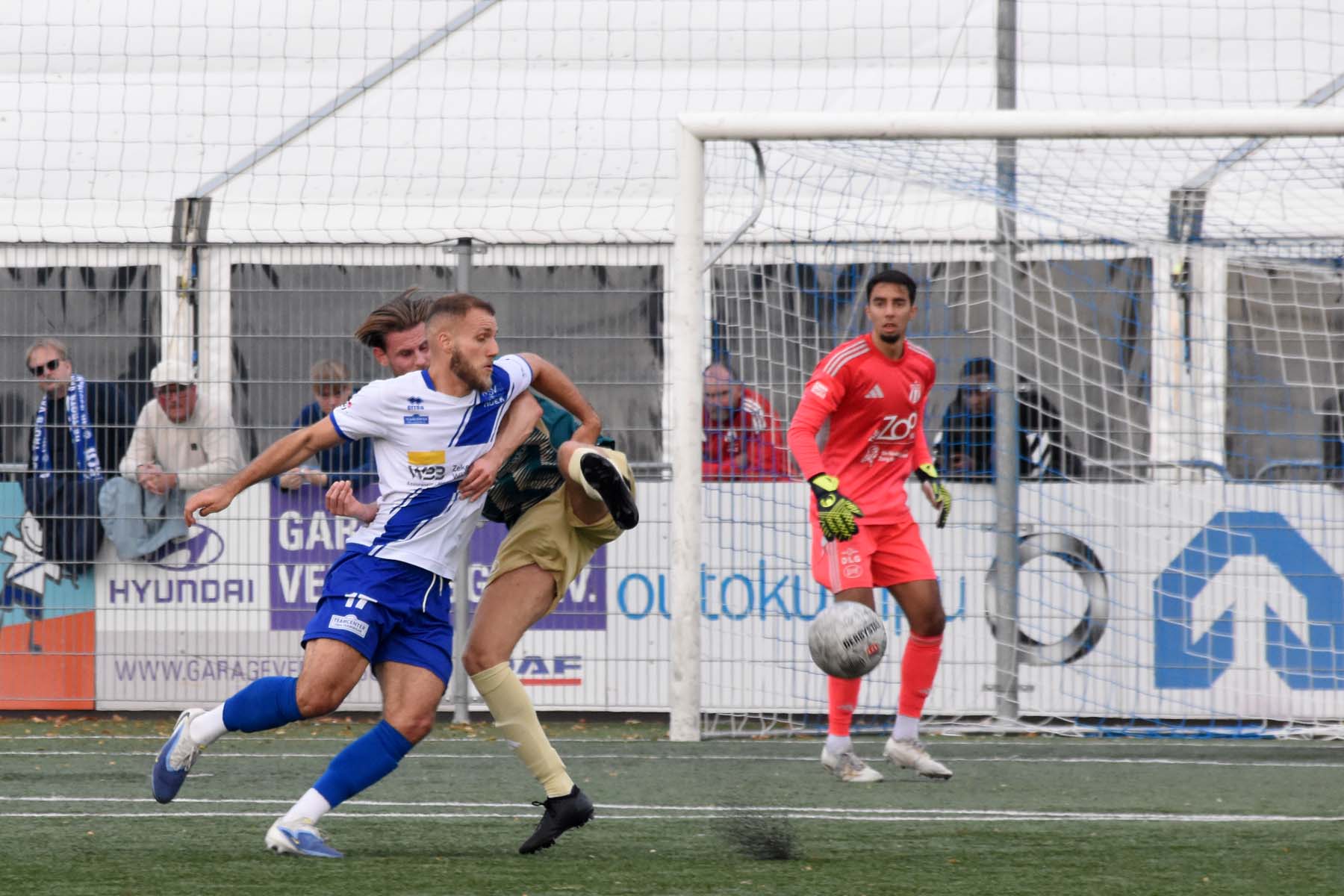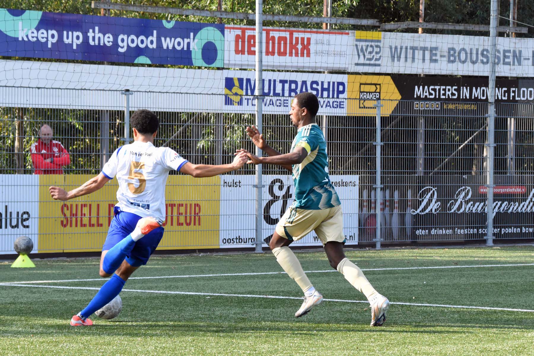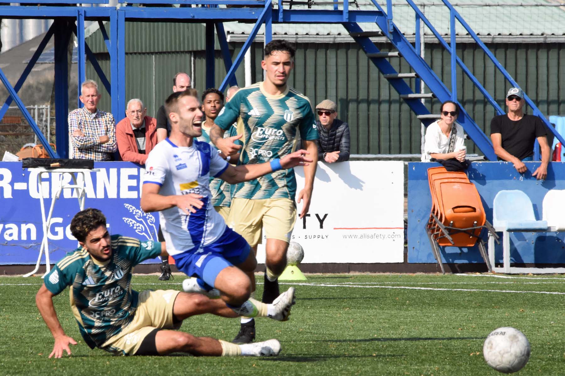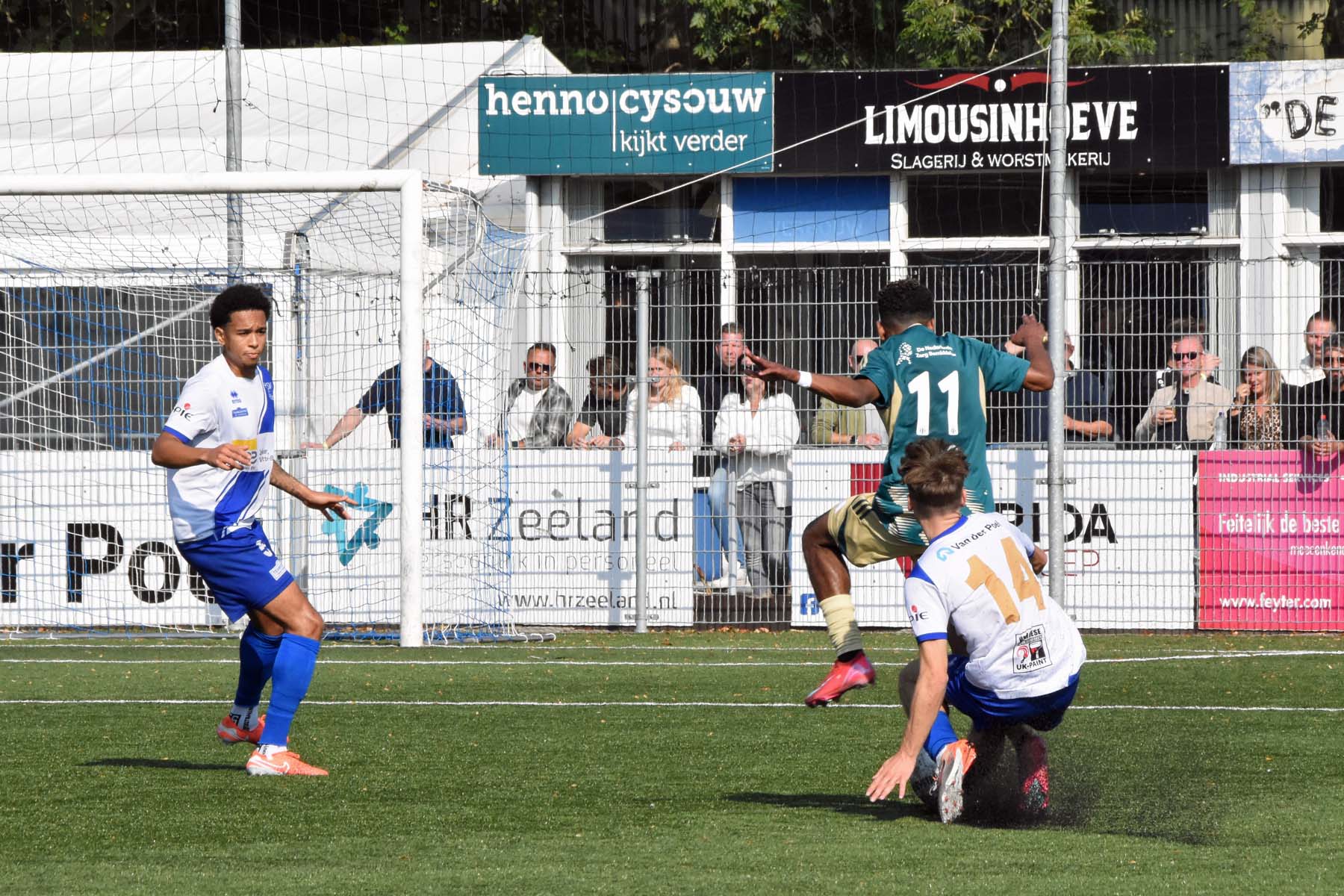 Rousseau de Poorter onderbreekt de aanval van Excelsior Maassluis.
