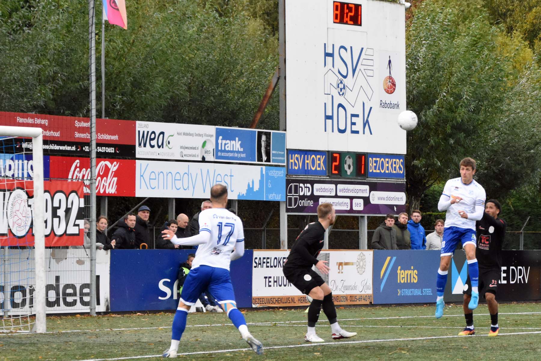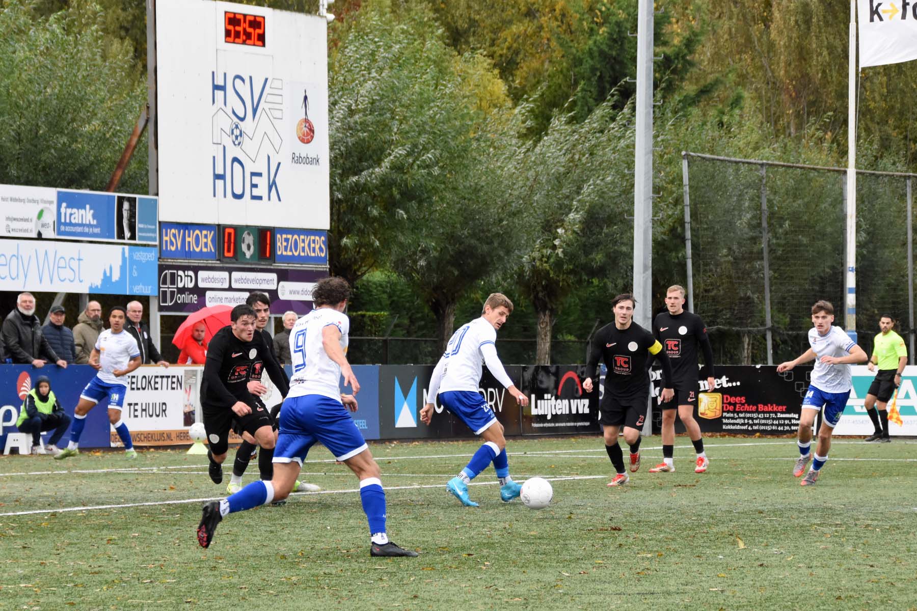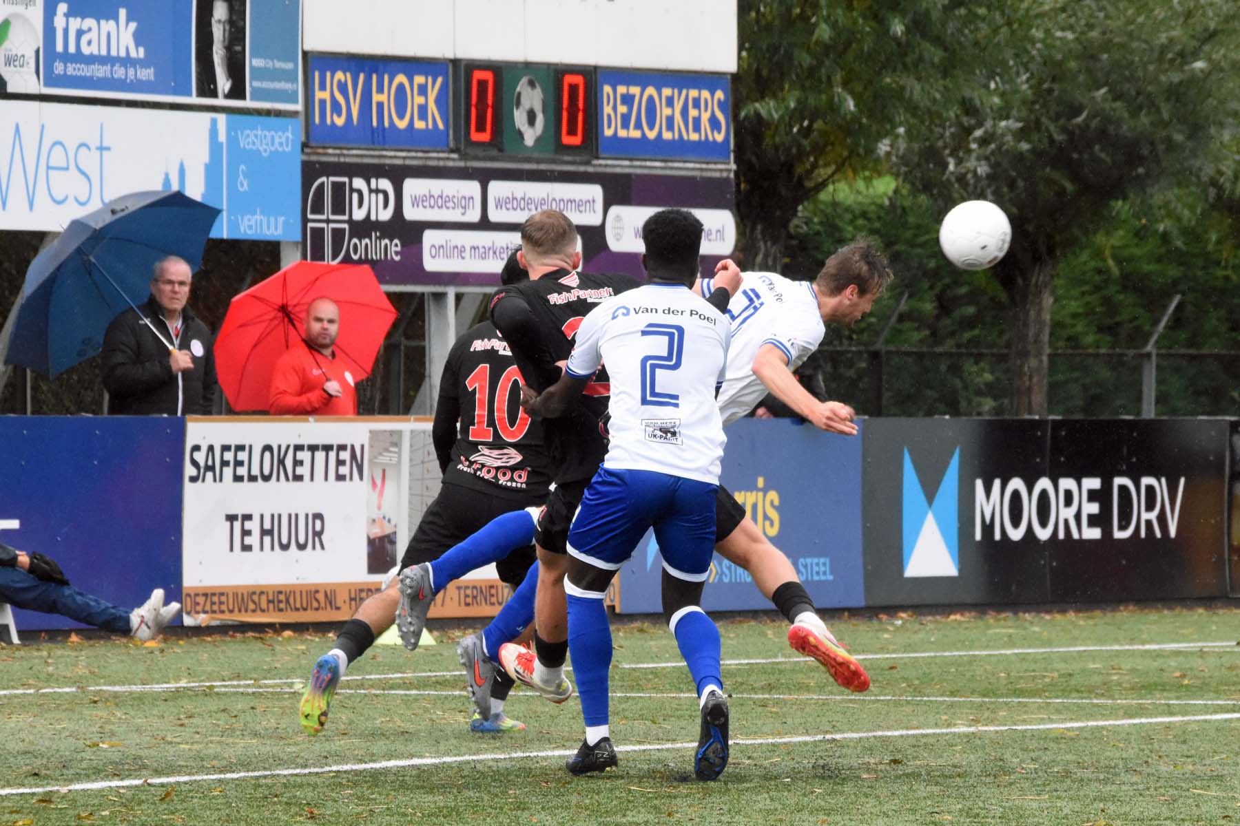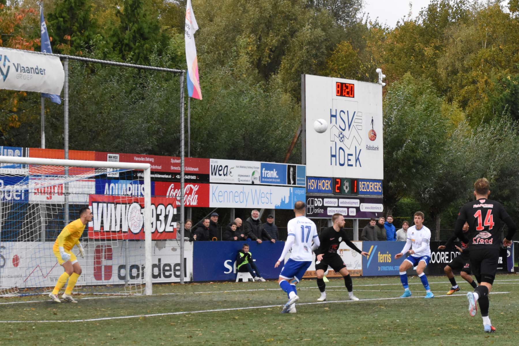 Op een winderig en nat sportpark Denoek boekte Hoek zaterdag een zwaarbevochten, maar verdiende 2-1 overwinning op IJsselmeervogels. Trainer Gérard de Nooijer had gekozen voor een onorthodox strijdplan zonder spits, met captain Steve Schalkwijk en de van een blessure teruggekeerde Din Sula op de bank. De Zeeuws-Vlamingen begonnen met Sylvio Hage en Noah Aelterman op de flanken, met de hoop dat het middenveld kon profiteren van de ruimte voorin. Hoewel Hoek het betere van het spel had en geregeld doorkwam via de zijkanten, leidde het gebrek aan bezetting in de zestien voor rust nauwelijks tot grote kansen. IJsselmeervogels loerde op fouten en sloeg halverwege de eerste helft toe: Max van Hees kopte vallend binnen na slordig verdedigen. Met een 0-1 achterstand ging Hoek rusten, gefrustreerd maar niet verslagen.