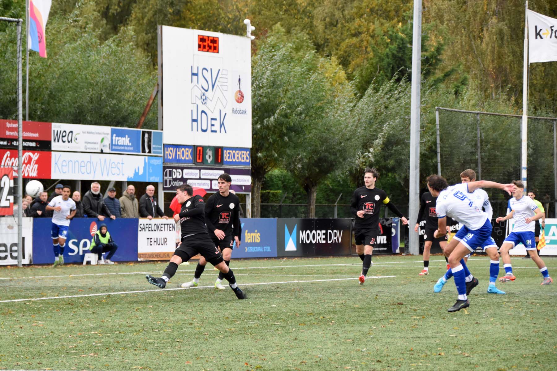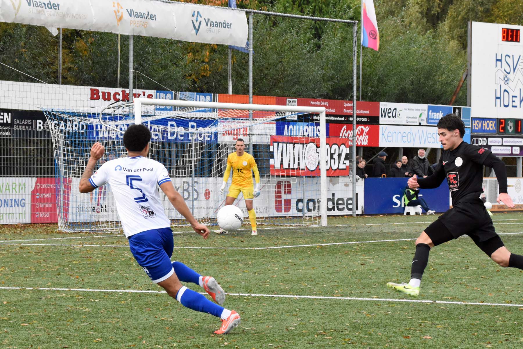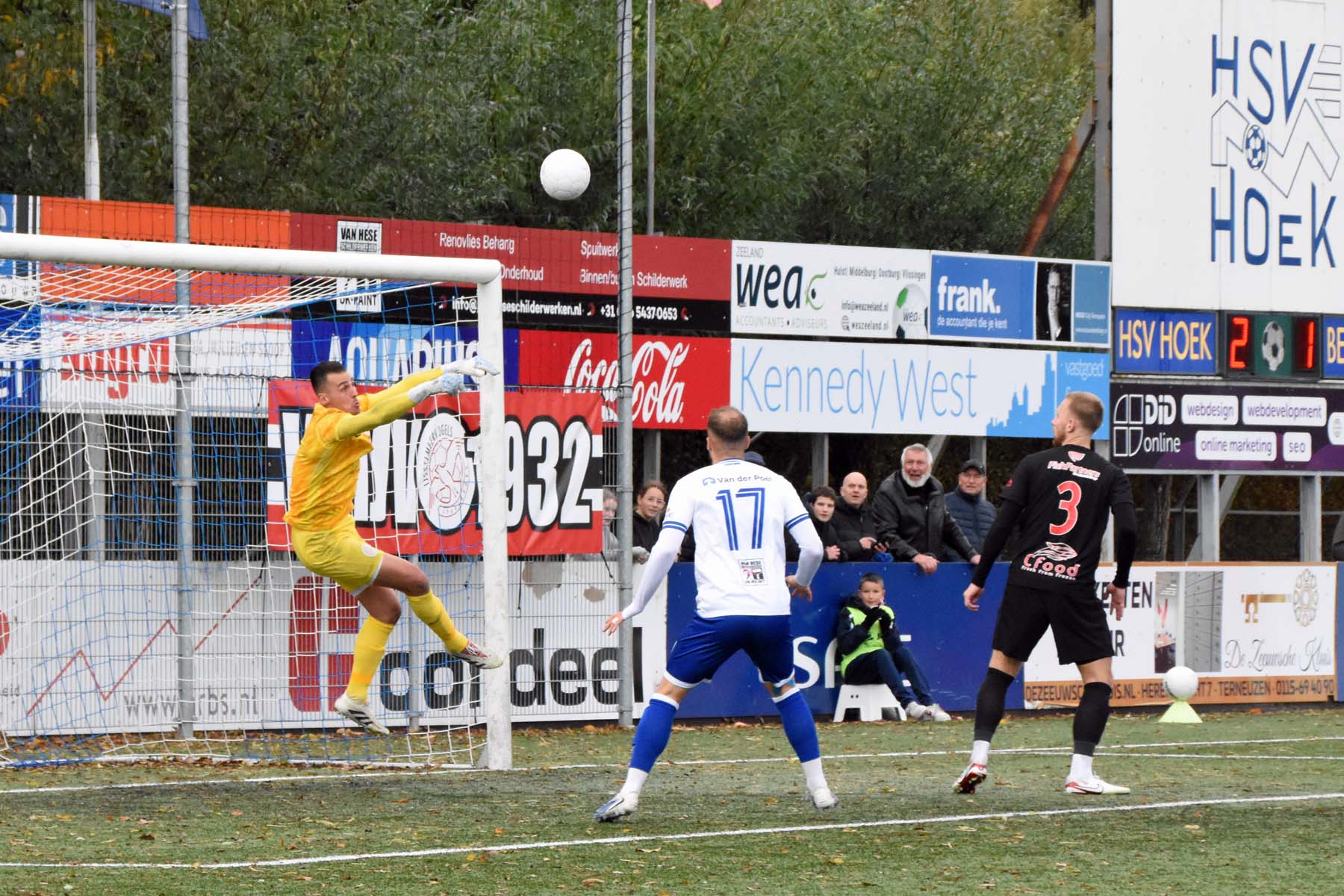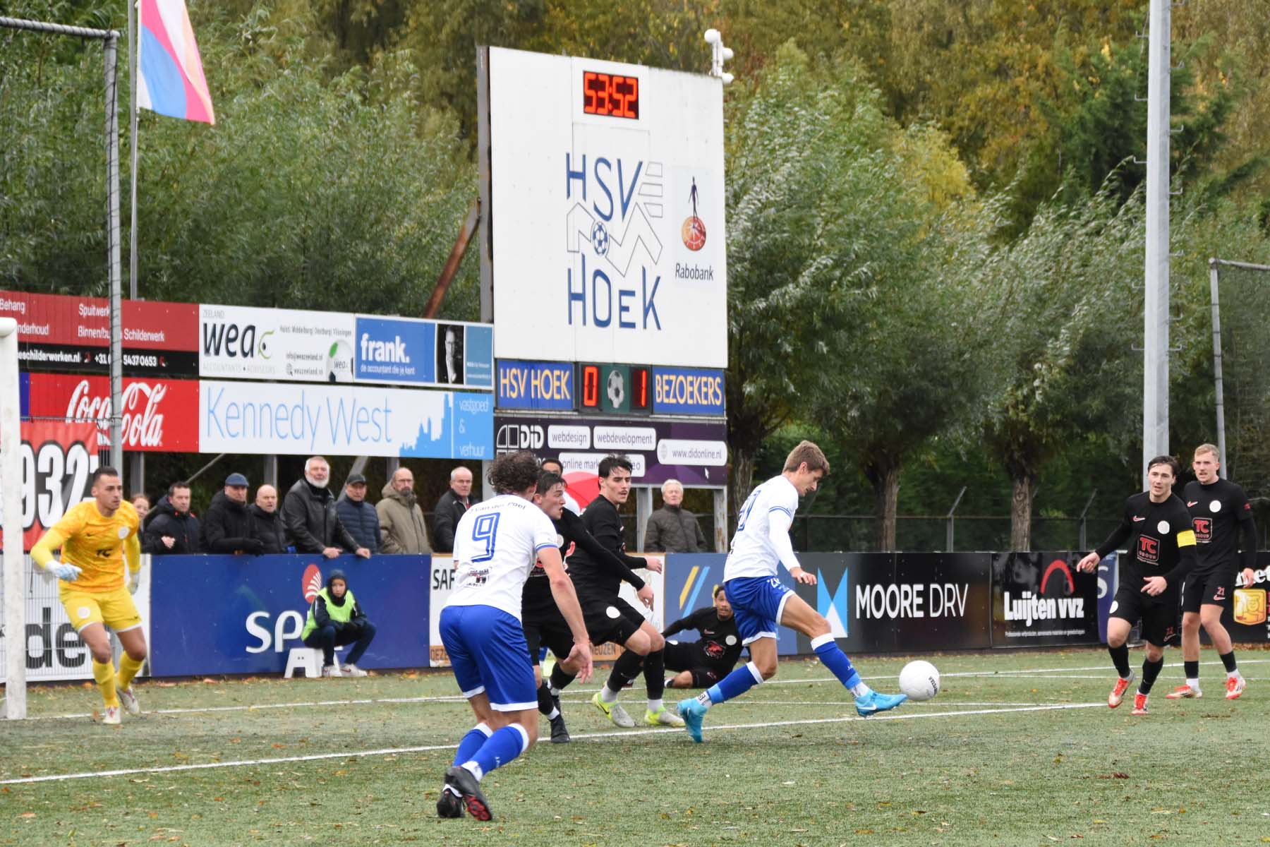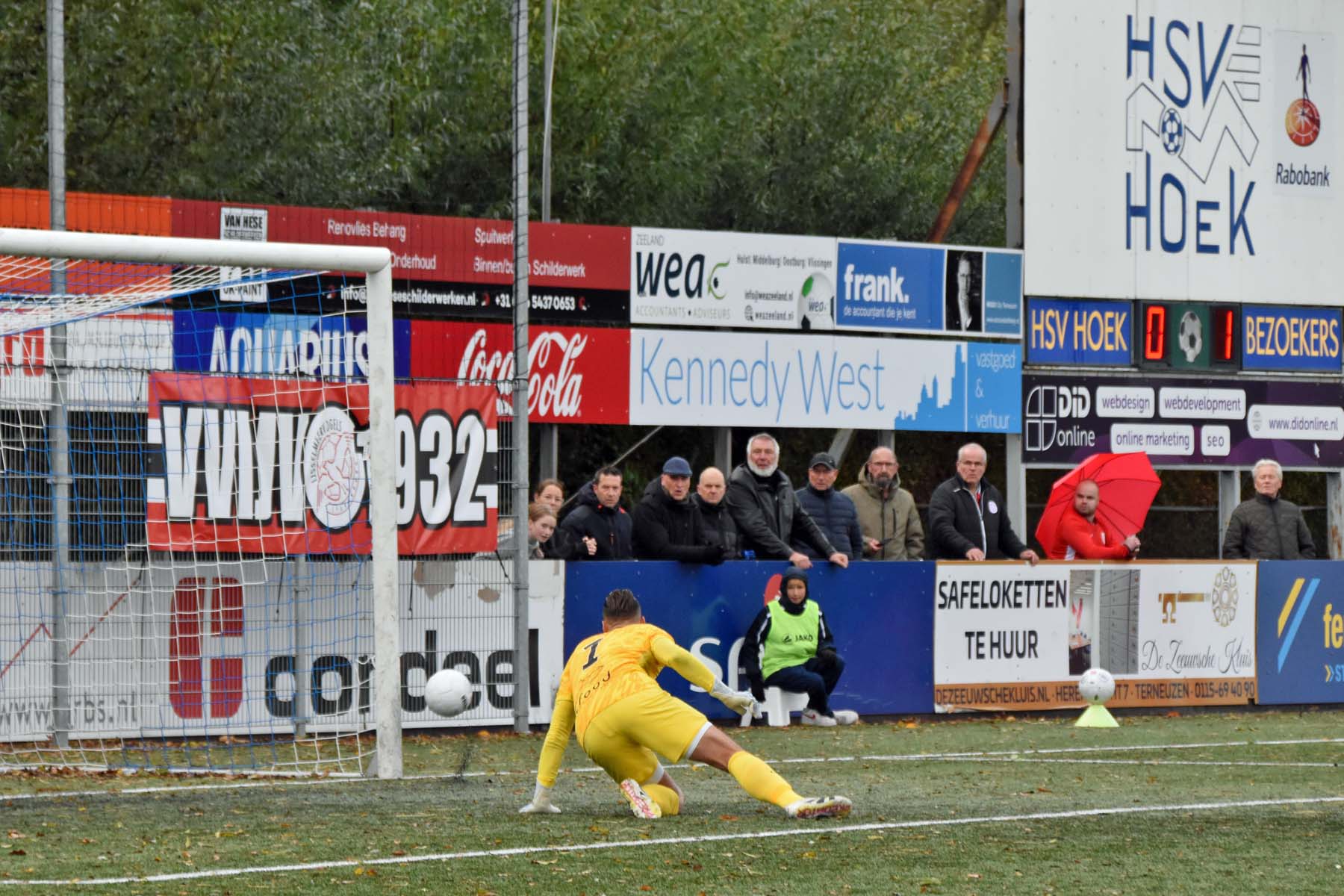 Op een winderig en nat sportpark Denoek boekte Hoek zaterdag een zwaarbevochten, maar verdiende 2-1 overwinning op IJsselmeervogels. Trainer Gérard de Nooijer had gekozen voor een onorthodox strijdplan zonder spits, met captain Steve Schalkwijk en de van een blessure teruggekeerde Din Sula op de bank. De Zeeuws-Vlamingen begonnen met Sylvio Hage en Noah Aelterman op de flanken, met de hoop dat het middenveld kon profiteren van de ruimte voorin. Hoewel Hoek het betere van het spel had en geregeld doorkwam via de zijkanten, leidde het gebrek aan bezetting in de zestien voor rust nauwelijks tot grote kansen. IJsselmeervogels loerde op fouten en sloeg halverwege de eerste helft toe: Max van Hees kopte vallend binnen na slordig verdedigen. Met een 0-1 achterstand ging Hoek rusten, gefrustreerd maar niet verslagen.