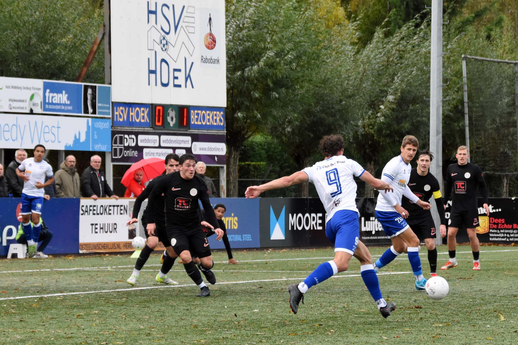 Hoek versloeg IJsselmeervogels met 2-1 dankzij twee treffers van uitblinker Sylvio Hage. Door het verlies van HHC Hardenberg en Quick Boys kan Hoek volgende week bij winst op ACV de koppositie in de Tweede Divisie grijpen.
